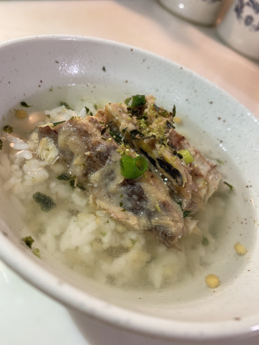 なにかアレンジを…と思い、超簡単な方法でも食べてみました。鯖茶漬けです!!!