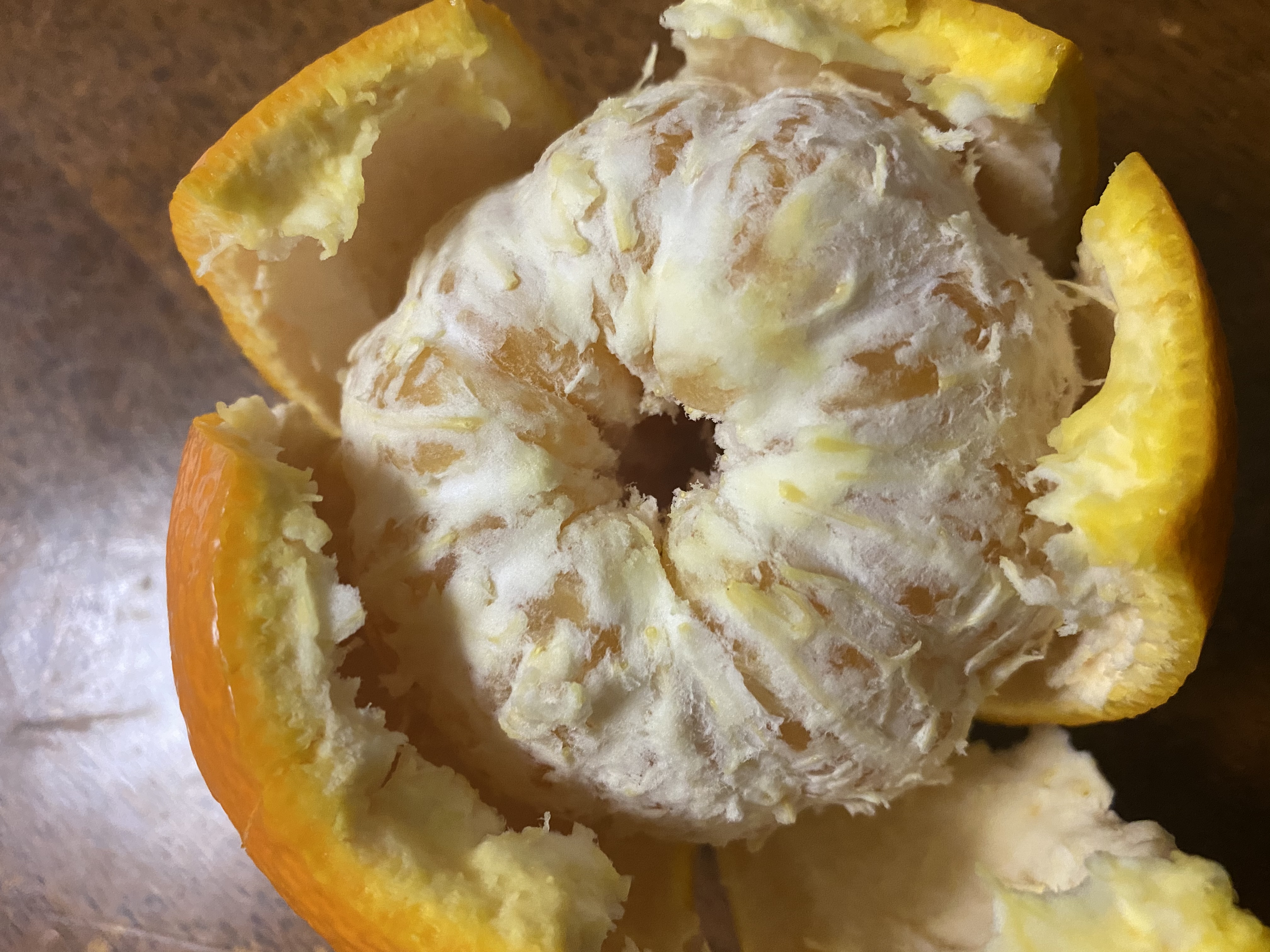 皮が分厚いいよかん。皮を刻んでサラダとあえると、いつものサラダも一味違った料理になります。