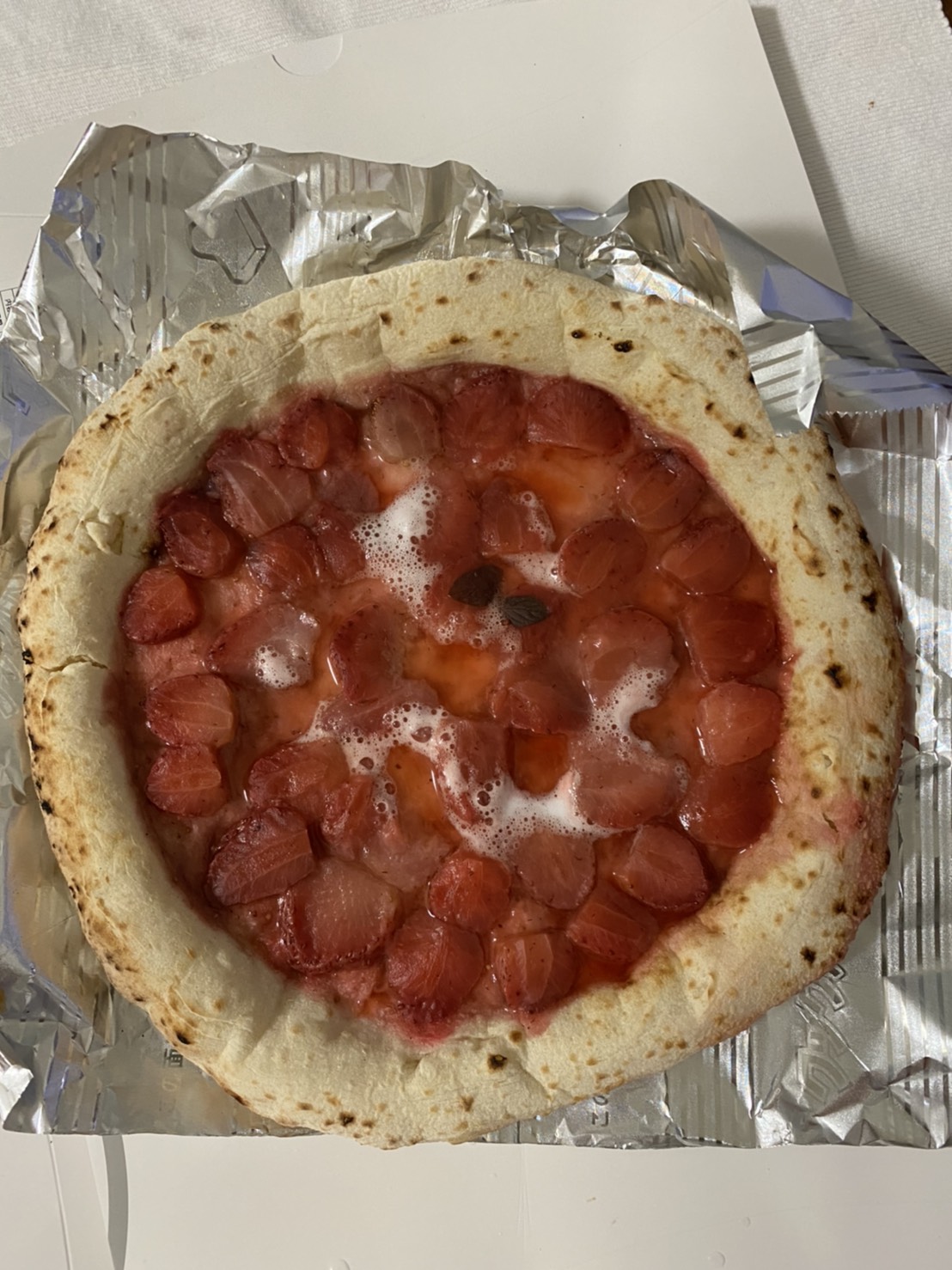 また、冷凍したとはおもえないくらいフレッシュな感じがちゃんとありました!おそらく塗ってあるいちごのソースとマシュマロがいい仕事をしているのではないかなと思いました。はじめてのデザートピザでしたがこれなら大人も甘すぎると感じることなく食べられてとても美味しかったです。