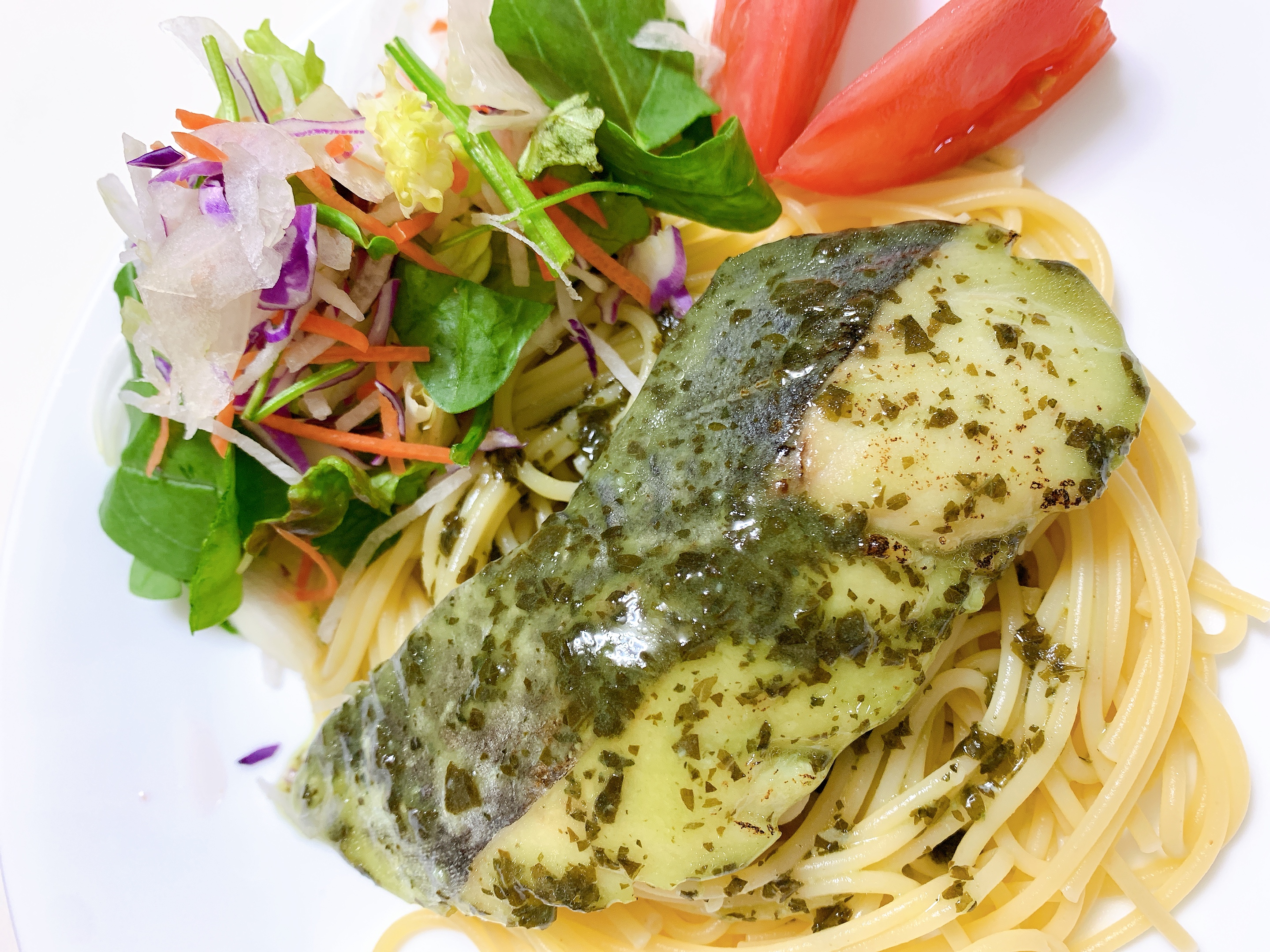 ふっくらと焼き上げられたさわらにジェノヴェーゼソースがたっぷりとかかっていました。