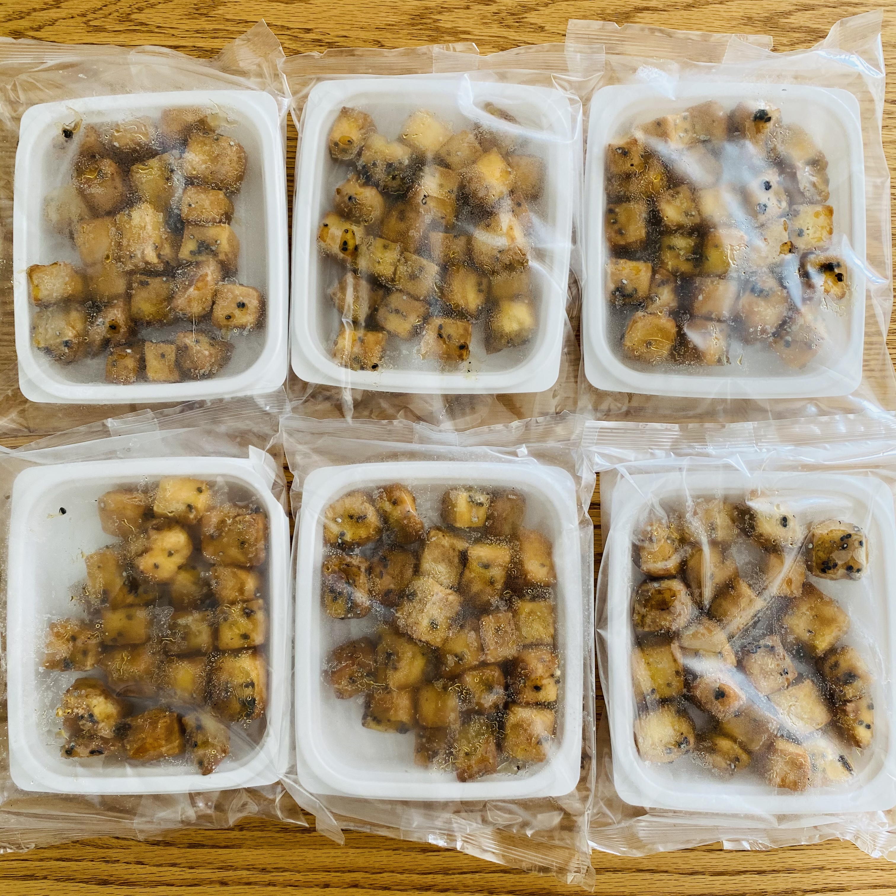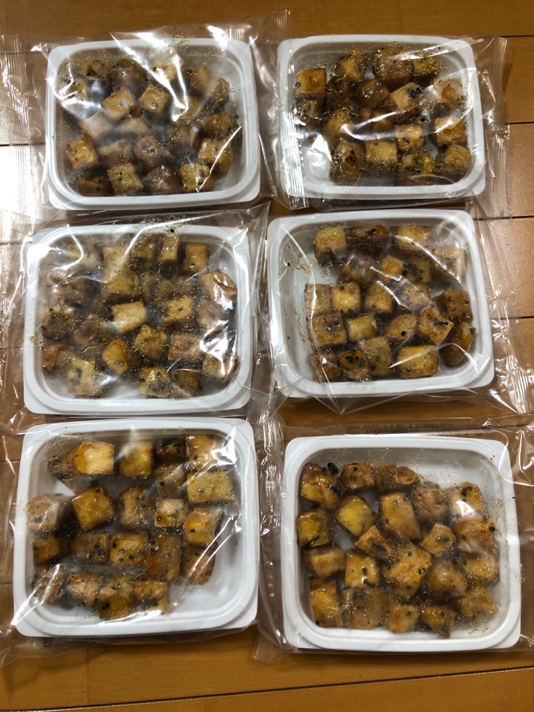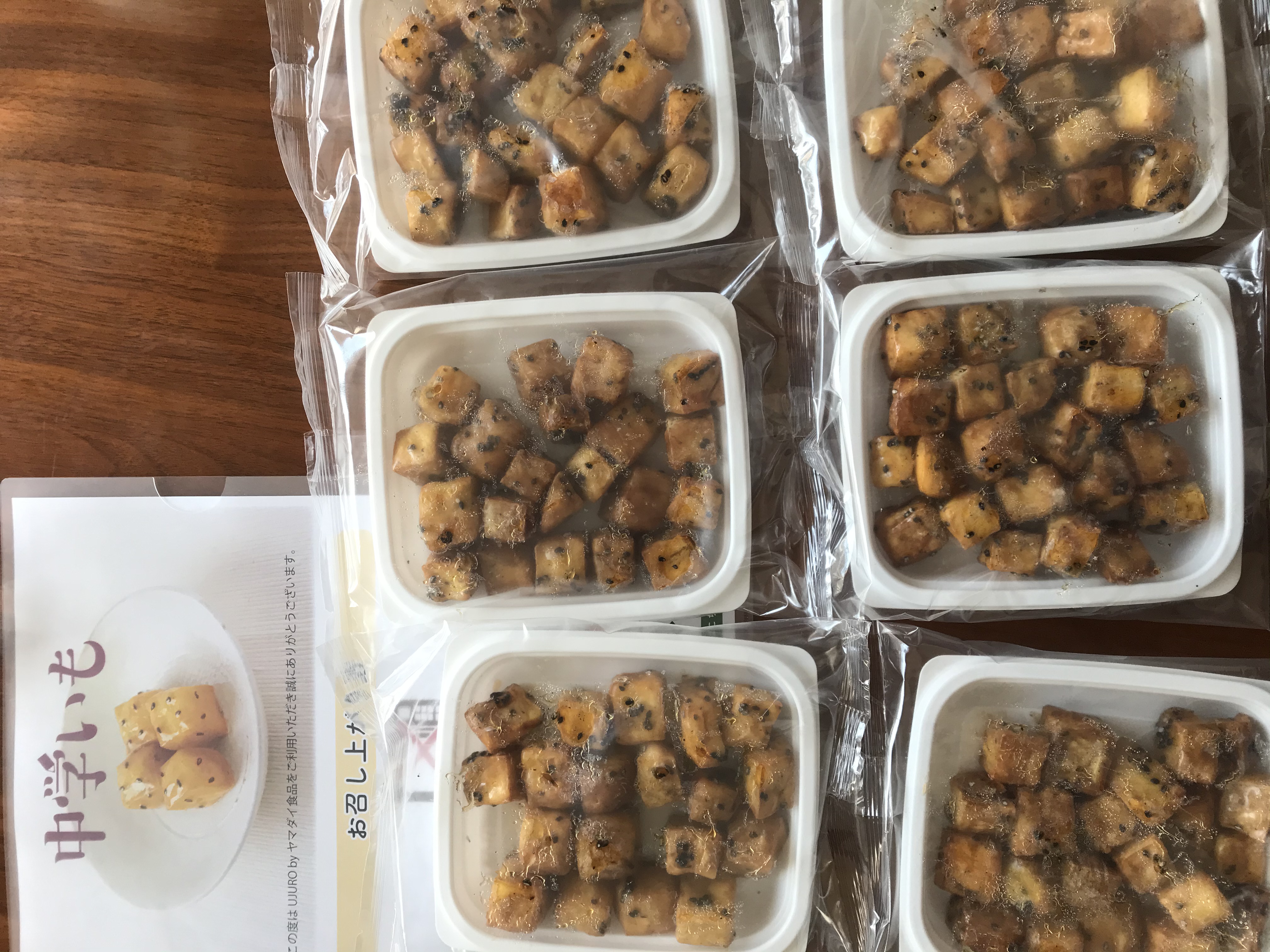 しっとりとしたサツマイモをカリカリの飴で包んだ「一口サイズの大学いも」です。「中学いも」というネーミングもさることながら、ダイス型の形状もユニーク。女子受けしそうな、味と形です。お皿に乗せて解凍するとカリッと感がアップ!そのまま食べるだけでなく、アイスクリームやトーストのトッピングとしてもおすすめです。食べきりサイズの小分け包装なので、食べたい分だけ解凍できて便利です。