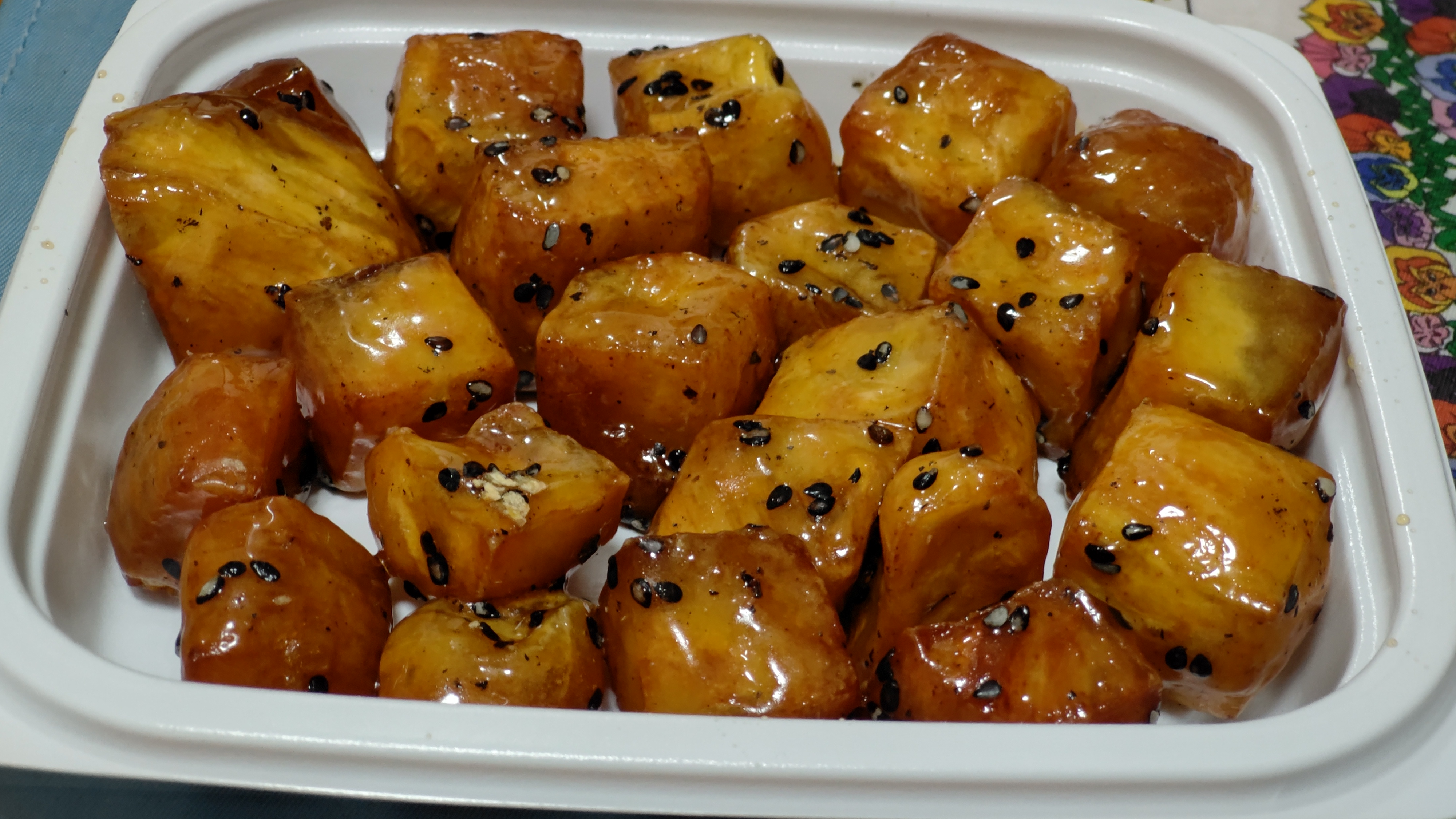 大学芋のようにはちみつでコーティングしてあるので、カリっとした食感がたまらないです♪