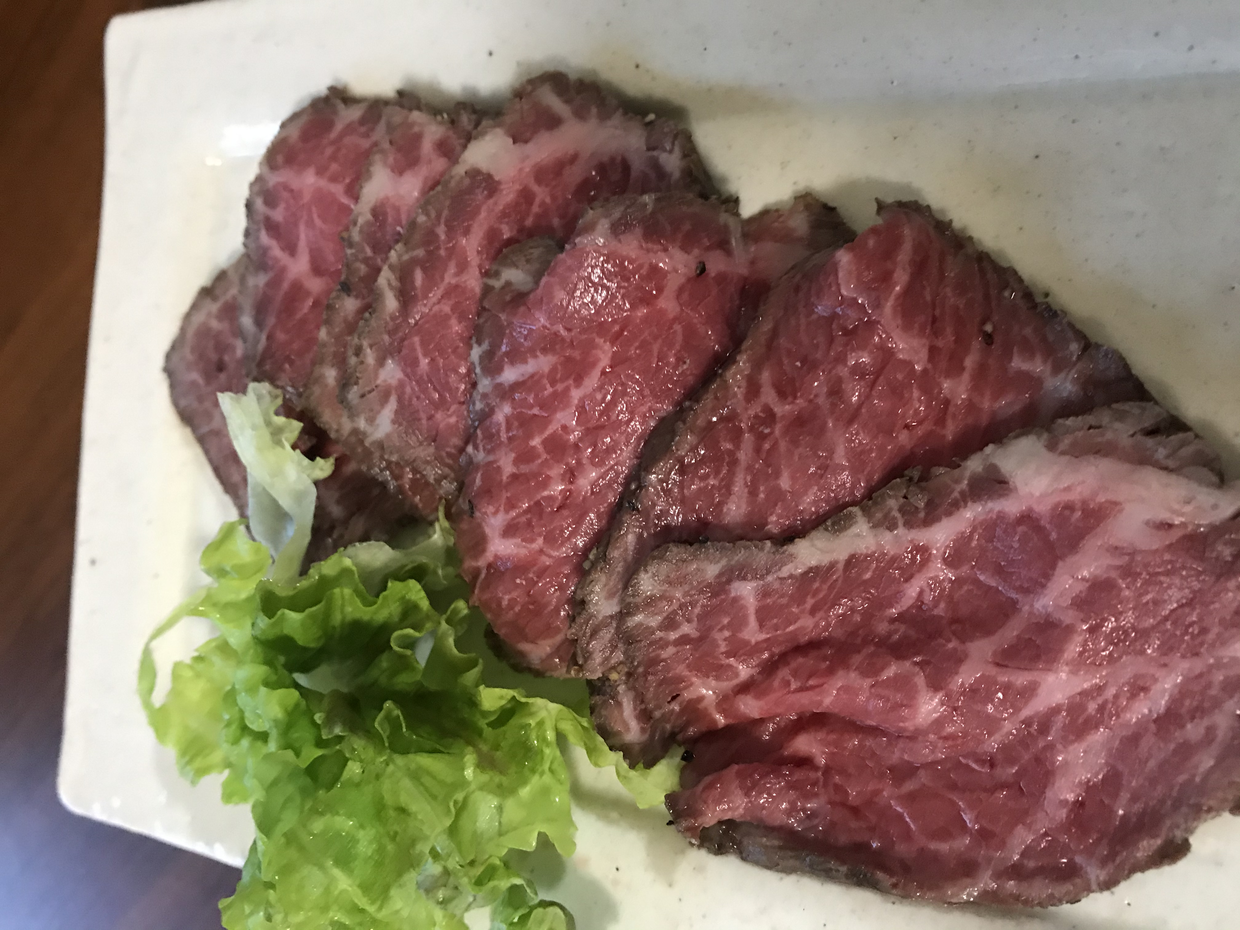 国内最上級のブランド牛松阪牛の見た目の美しさは、今まで食べたローストビーフの中で一番でした。写真よりも美しいことに驚きました。