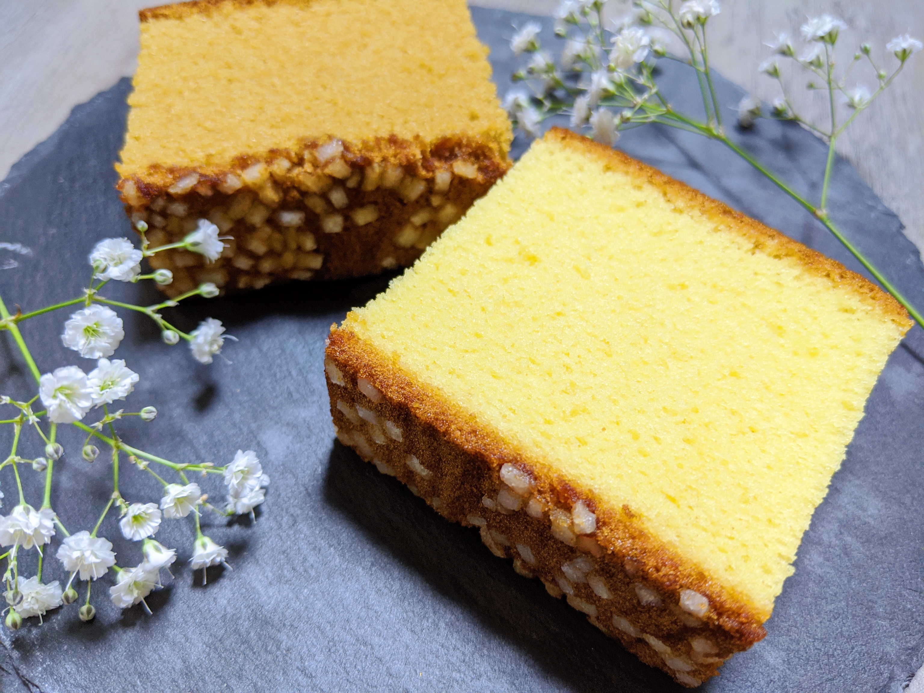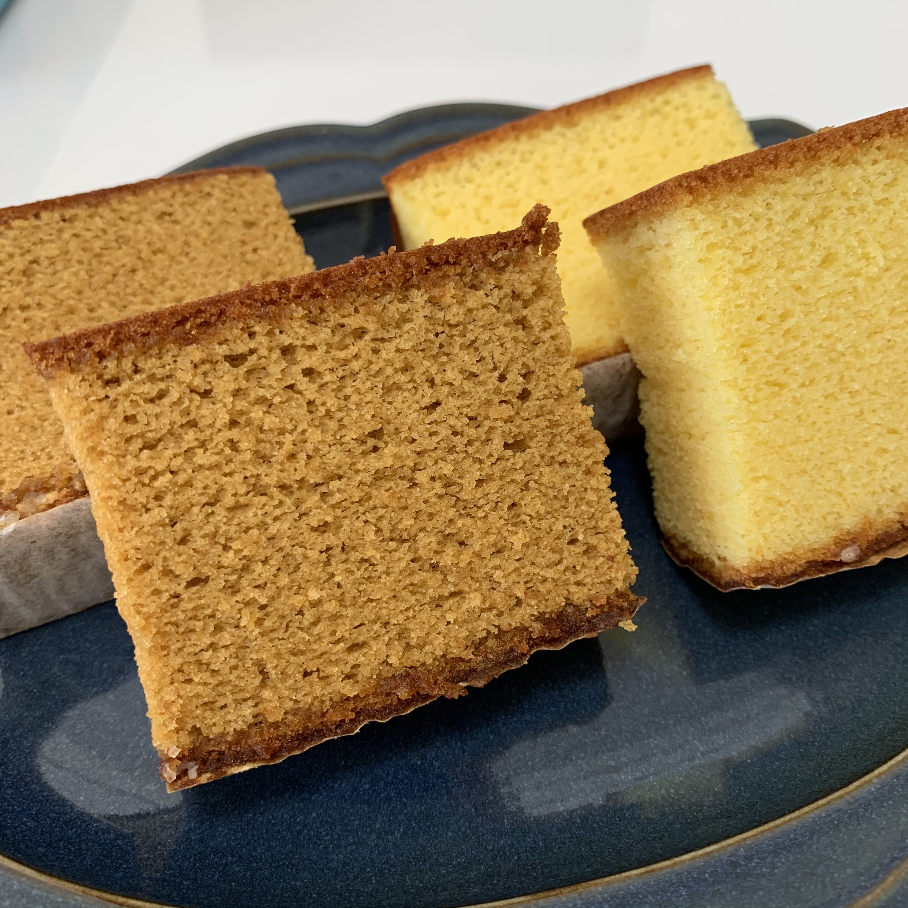 二種類それぞれ、全く違う味わいが楽しめました。普段食べているふわっとしたカステラとは違い米粉を使っているため、もちもちでしっとりとした食感です。そのもちっとした感じと、底に付いたざらめのカリカリとした食感の違いも楽しいです。