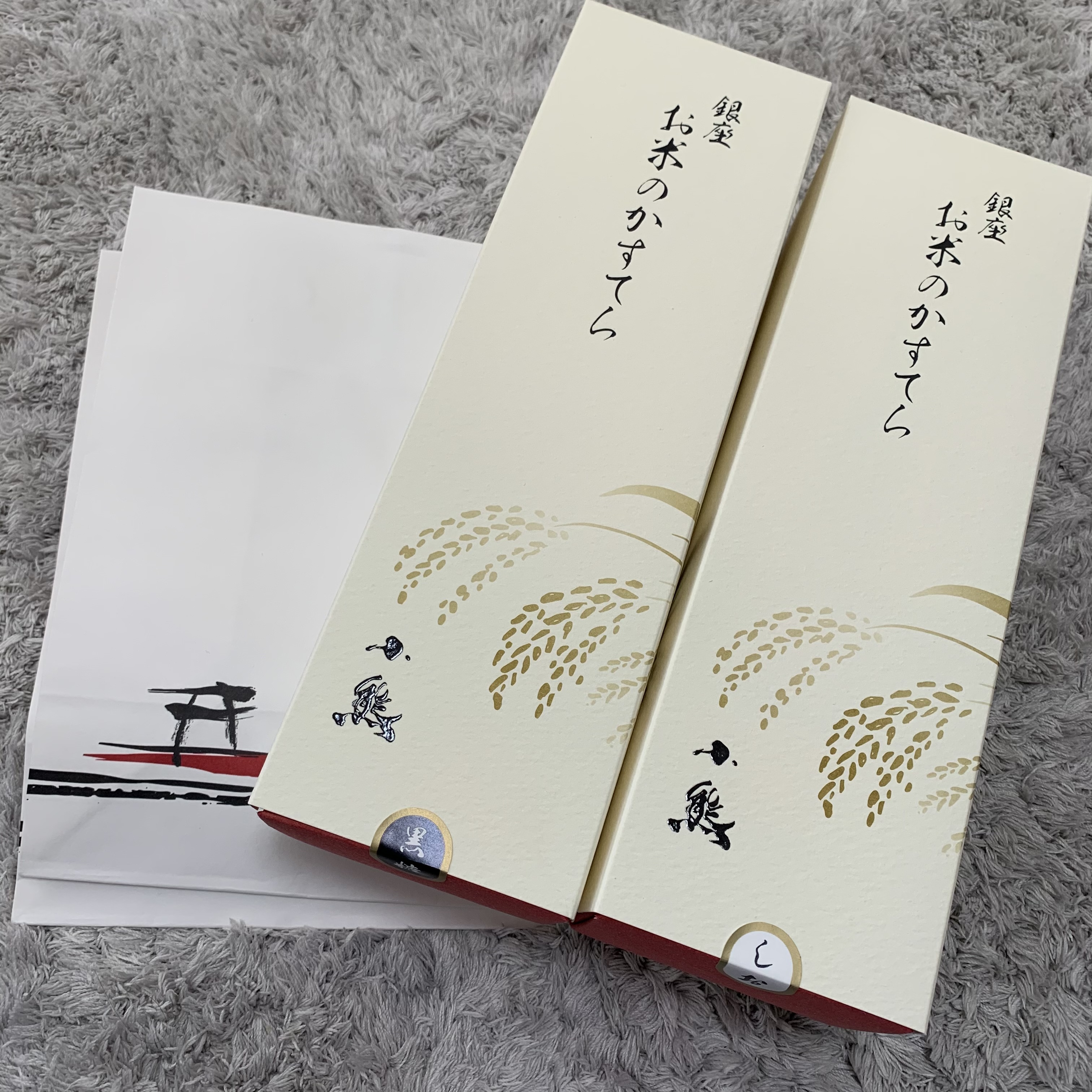 和を感じる白と赤の化粧箱は、シンプルながらも高級感がありとても上品に感じます。きちんとした紙袋も付いており、贈り物にも最適です。