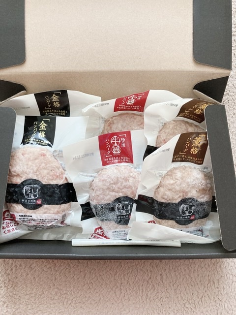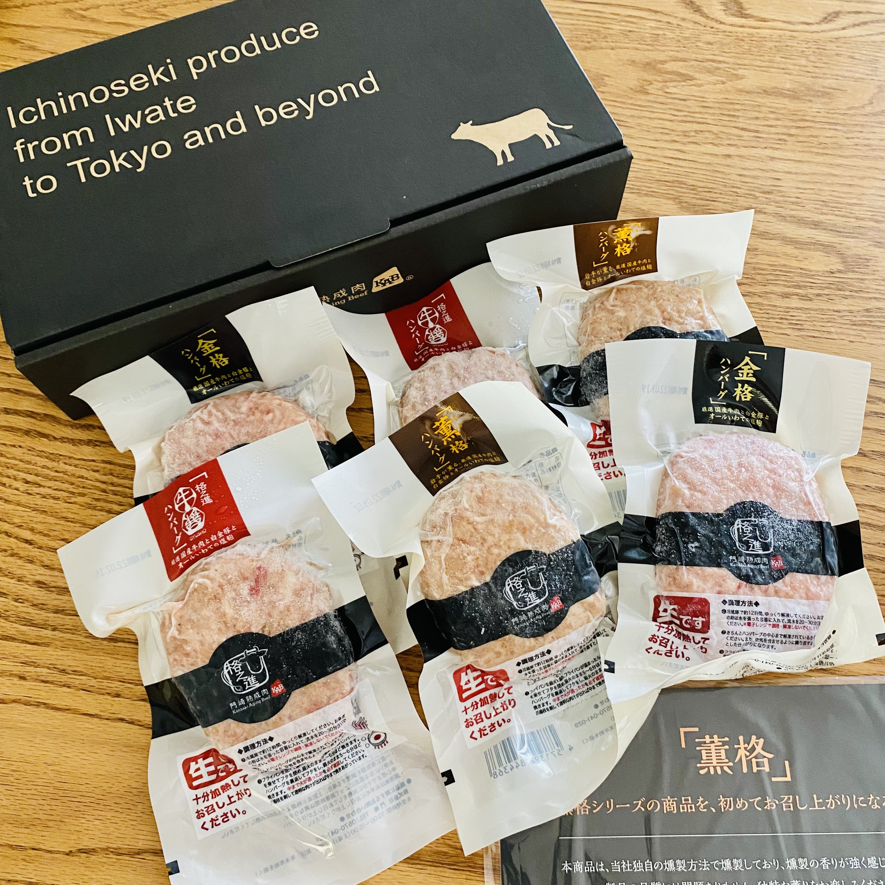 岩手県産の国産牛とブランド豚でプラチナポークとも呼ばれる「白金豚」を使用した3種の「合い挽きハンバーグ」セットです。ショップの黄金ブレンドによって生まれた上品で甘味のある奥深い味わいが特徴の「金格ハンバーグ」、岩手のチップで冷凍燻製を掛けた薫り深い「薫格ハンバーグ」、黒毛和牛から創り出した調味料“牛醤”を練り込んだ「牛醤ハンバーグ」の3種ハンバーグを詰め合わせです。どのハンバーグも、溢れ出る肉汁は一度食したら忘れられないほどの旨味があり、リピーター続出の逸品です。牛のイラストが印象的でスタイルな箱に入って届くので、贈り物にもおすすめです。
