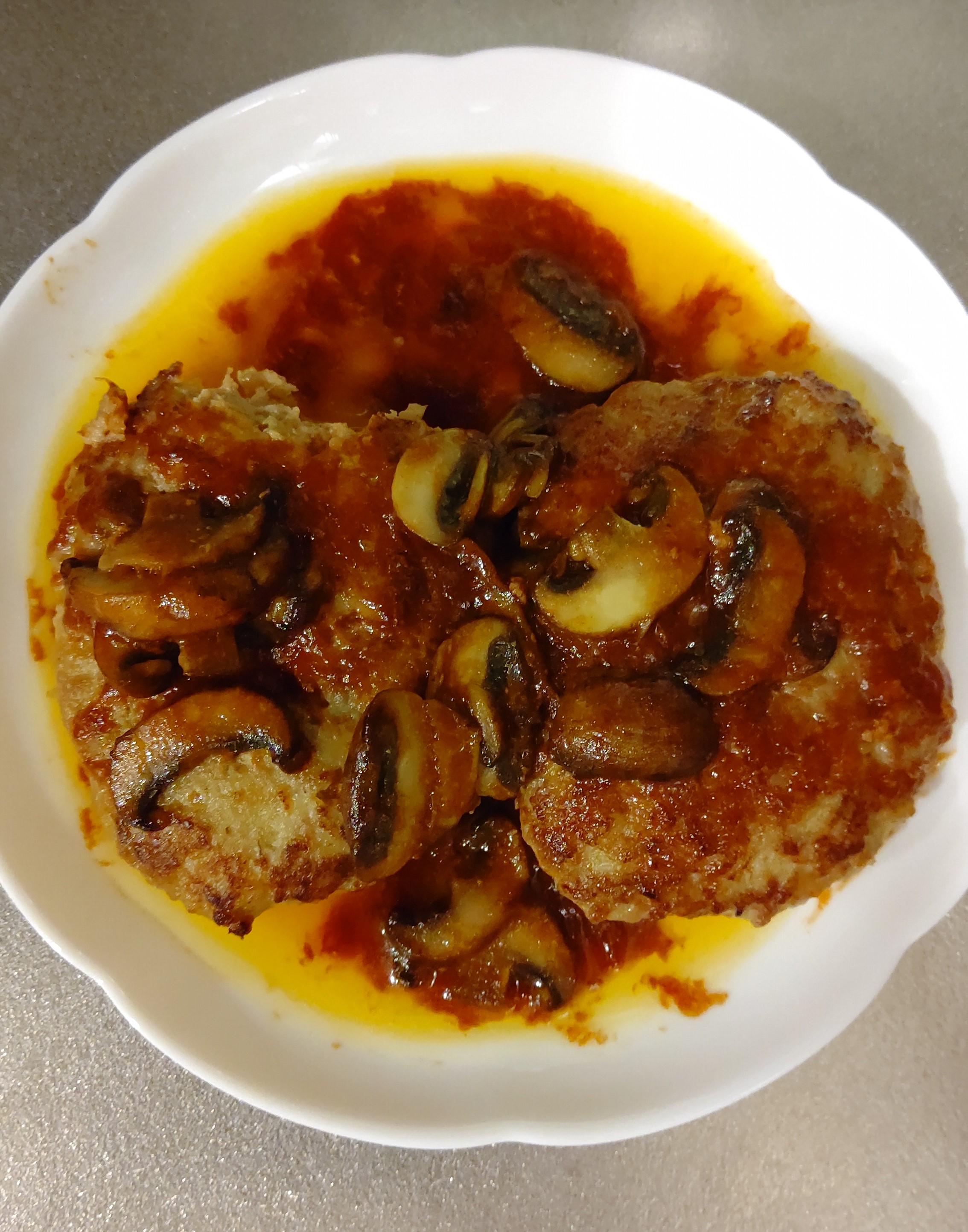 3日目は「薫」を煮込みハンバーグにしましたが、燻製の薫りが苦手でした。普通のハンバーグでいいかなという感じ・・・。