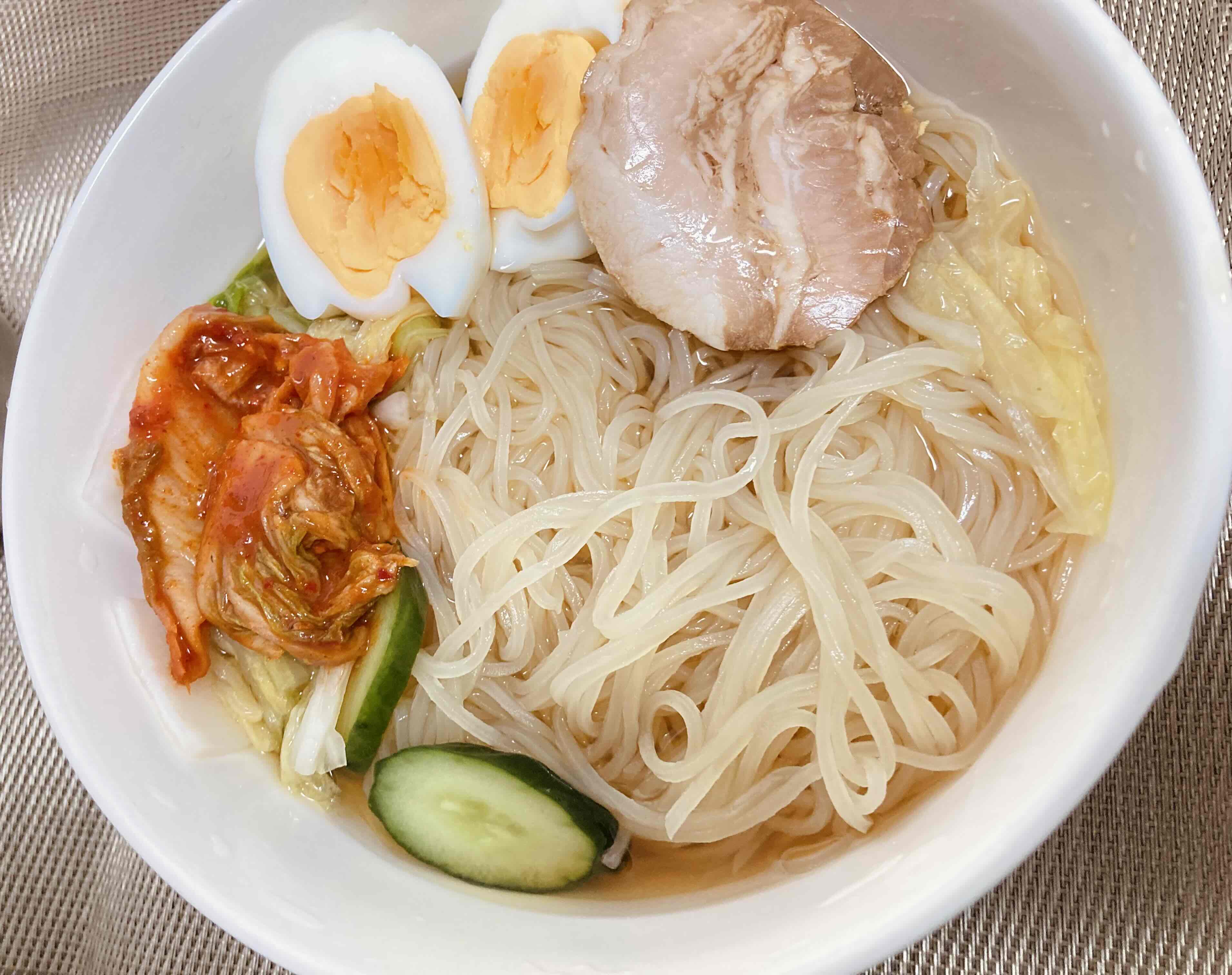 食べ方はセット商品の水キムチと混ぜたり、冷麺のタレも付属しているのでタレをかけてオリジナルのトッピングをしたりと色々なアレンジが可能です。