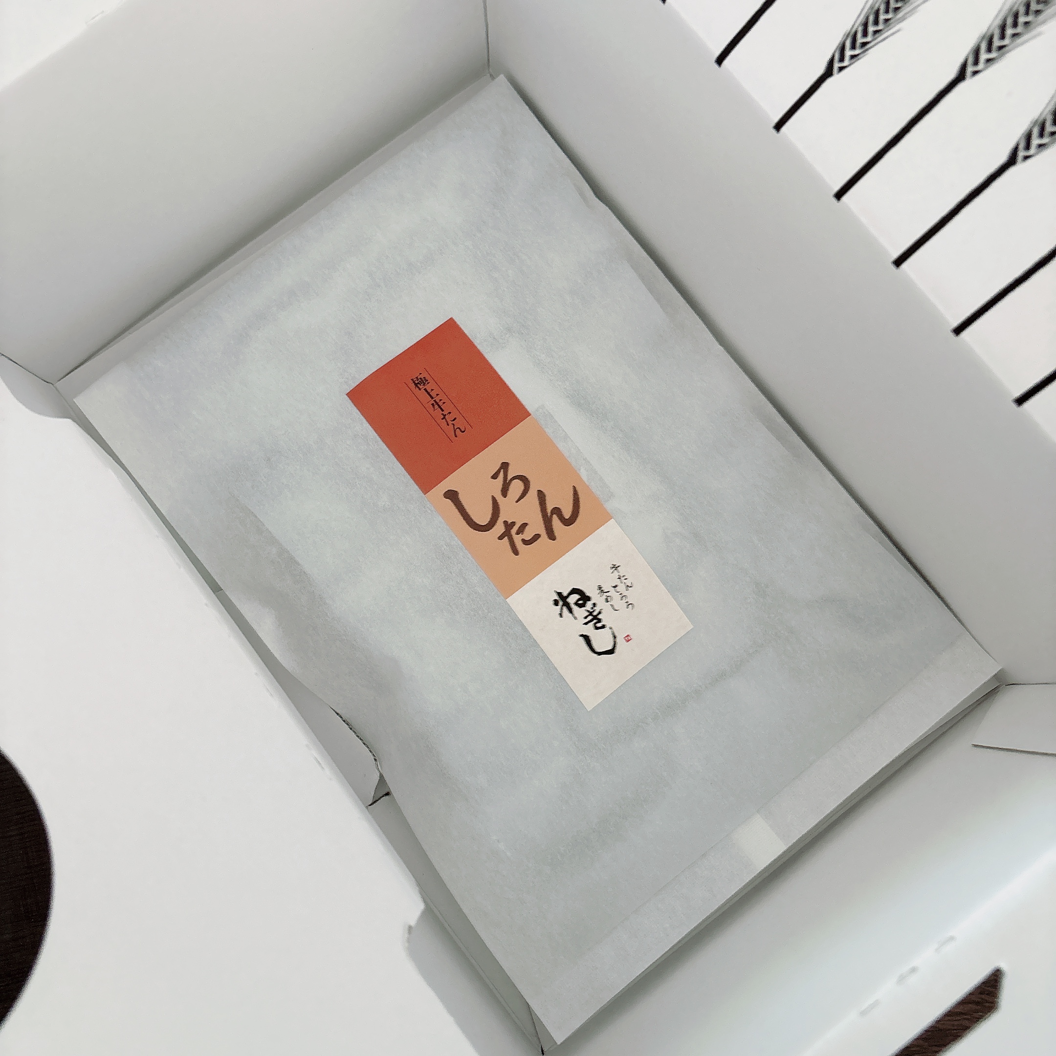 極上厚切り牛たん しろたんの外袋は和紙を模した高級感ある白い包装姿です。