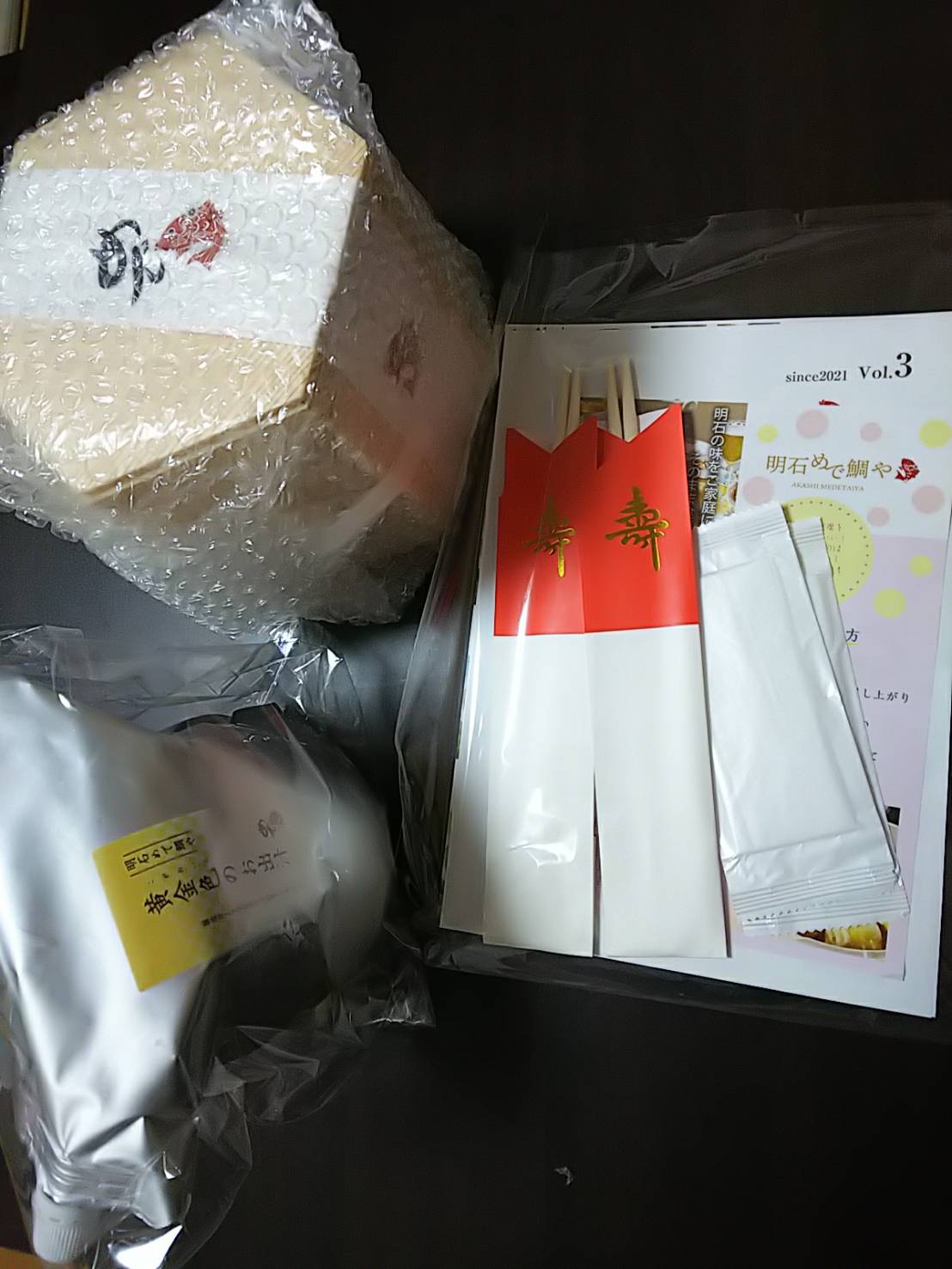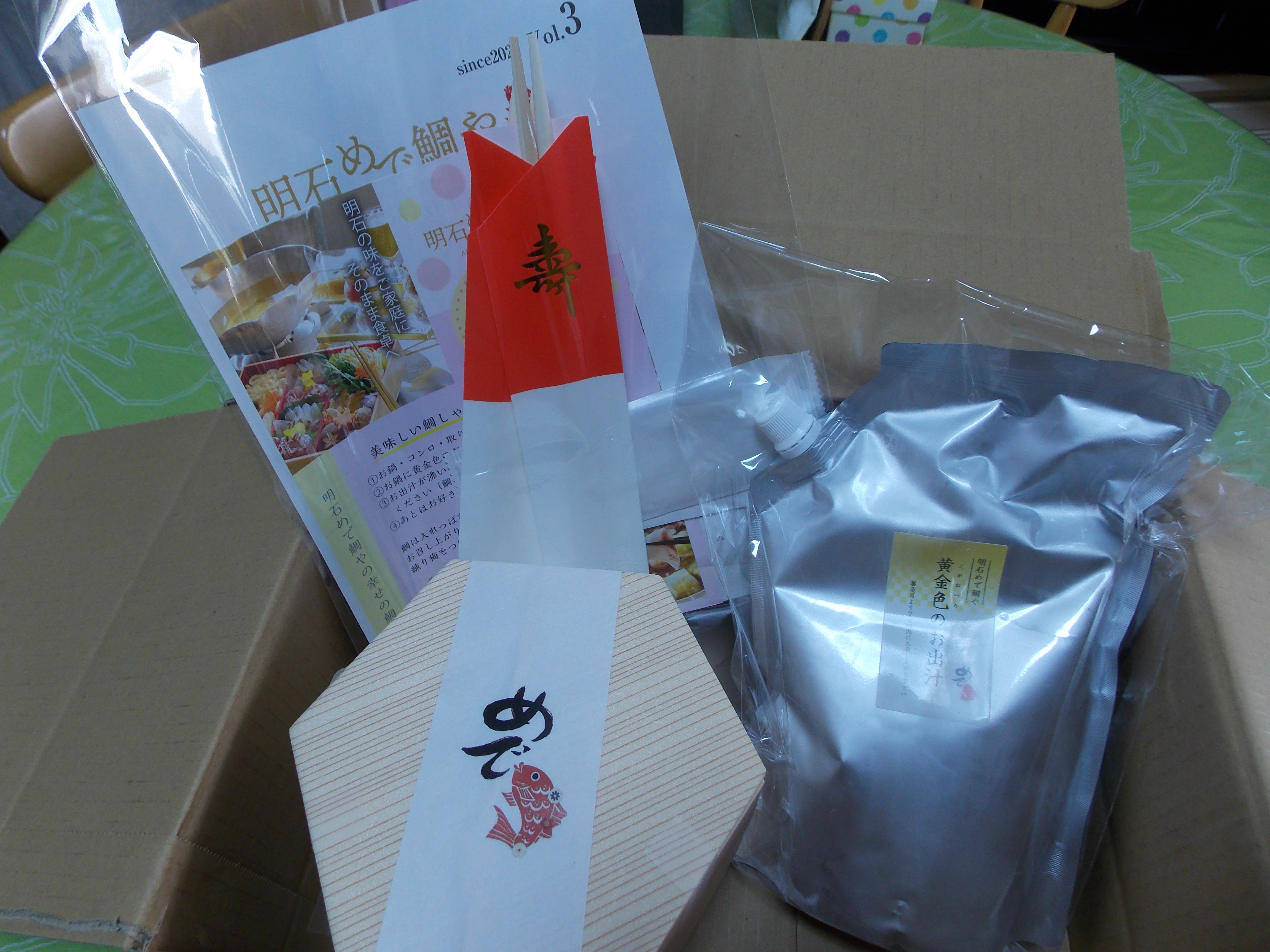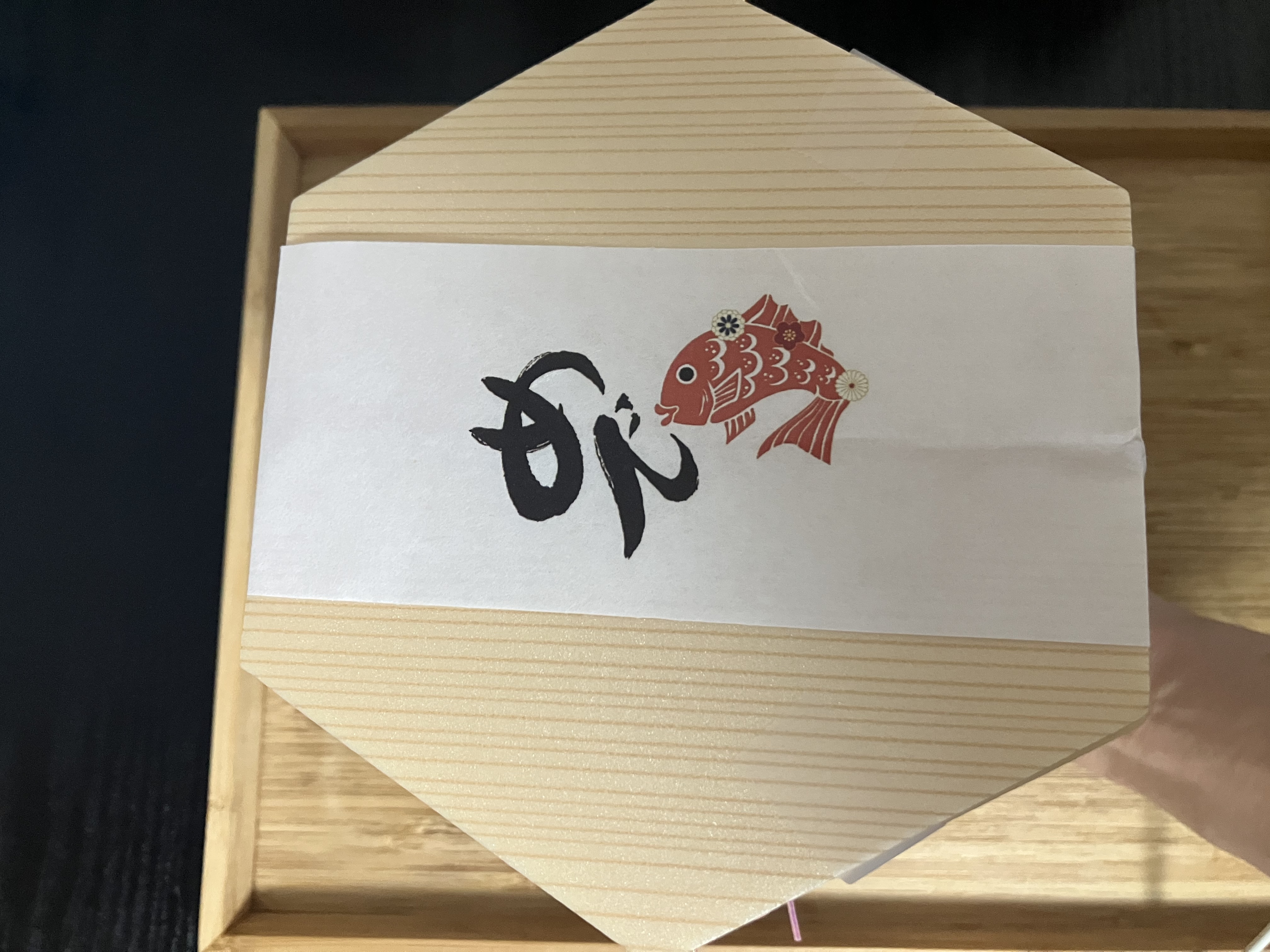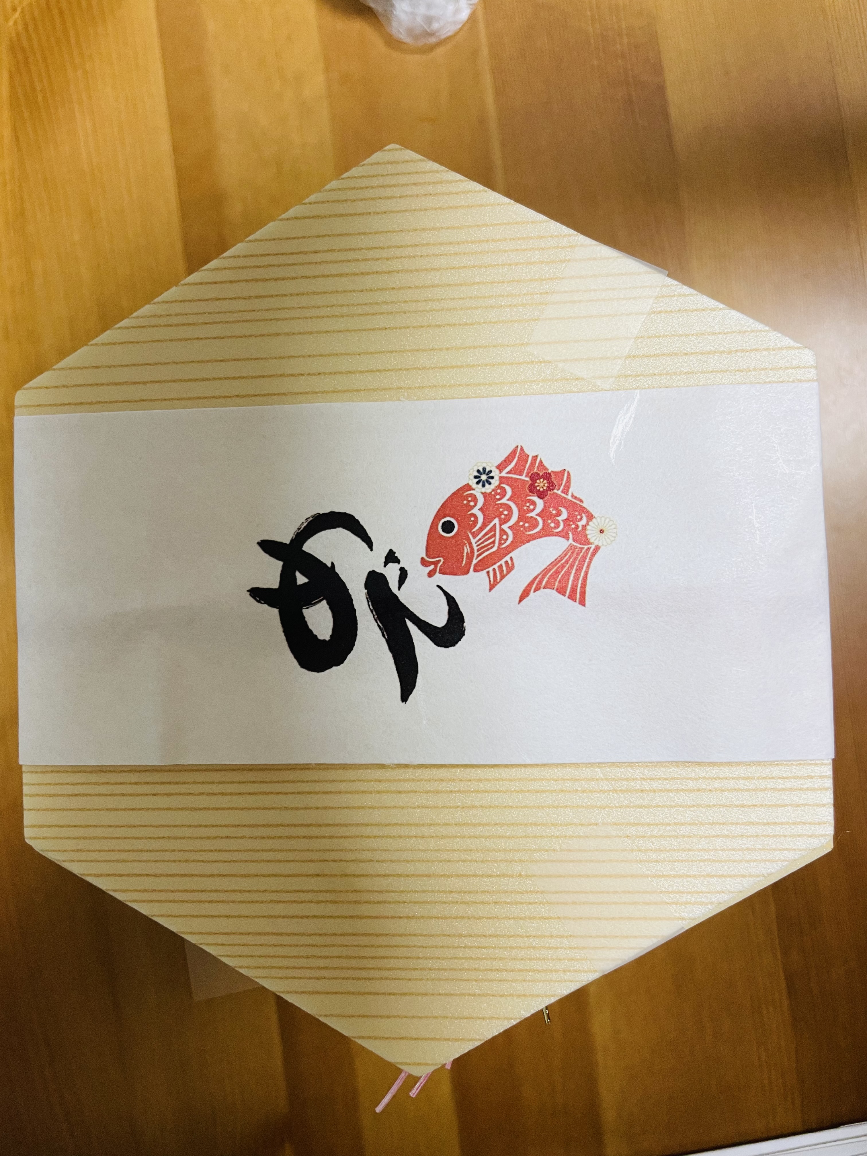 開けてみるとめで鯛のロゴののしがあり、ワクワクしました!