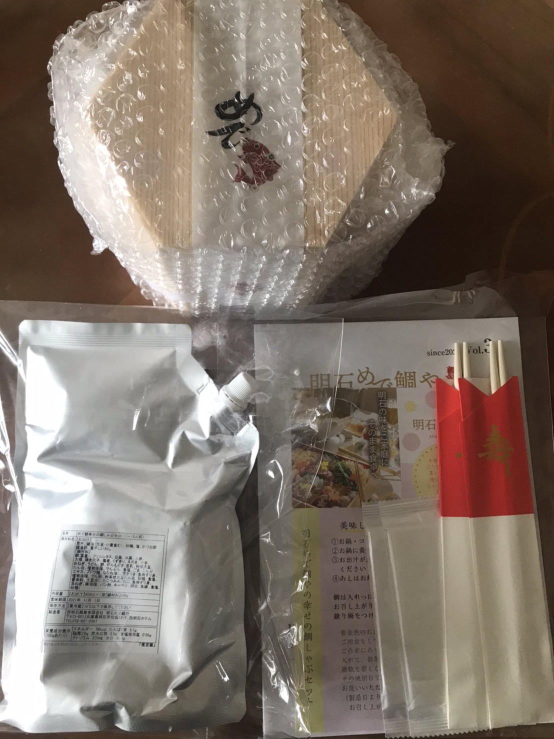 お母さんのために開発された 明石めで鯛やの「めで鯛幸せの鯛しゃぶセット」。