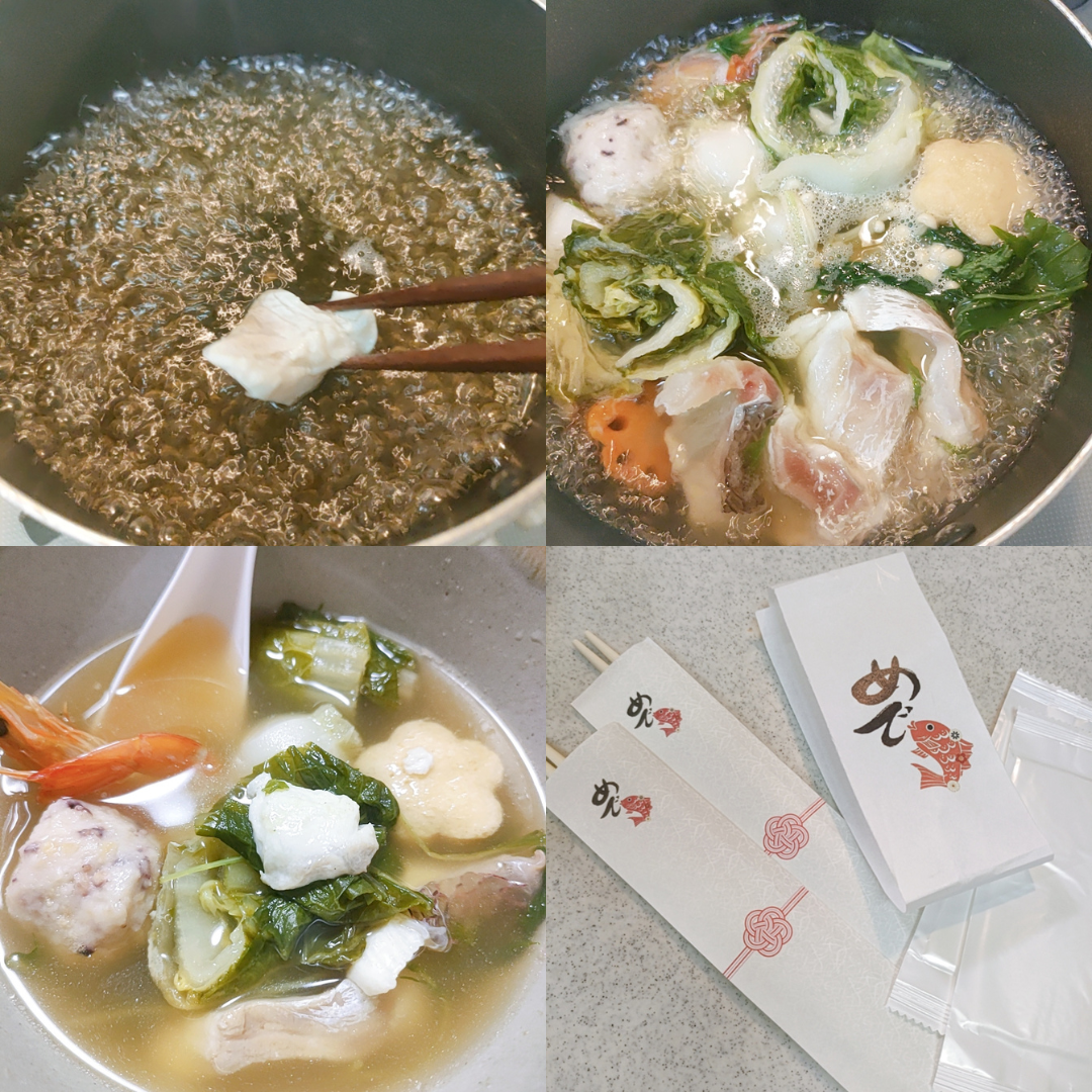 しいたけ、がんも、かぶ、ネギ、つみれとそれぞれの野菜も出汁の旨みが染み込み、野菜やセットのクオリティがすごいです!!