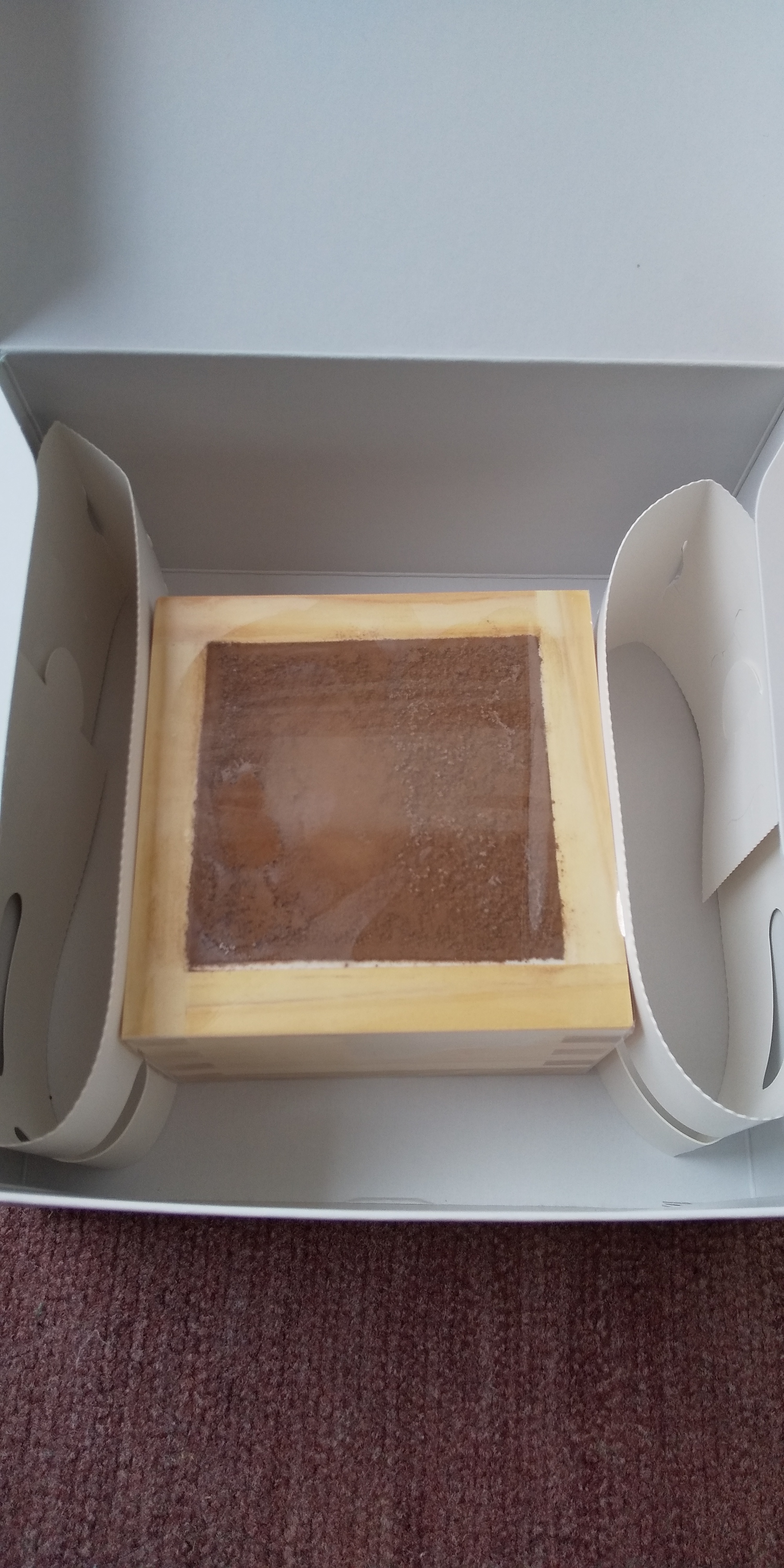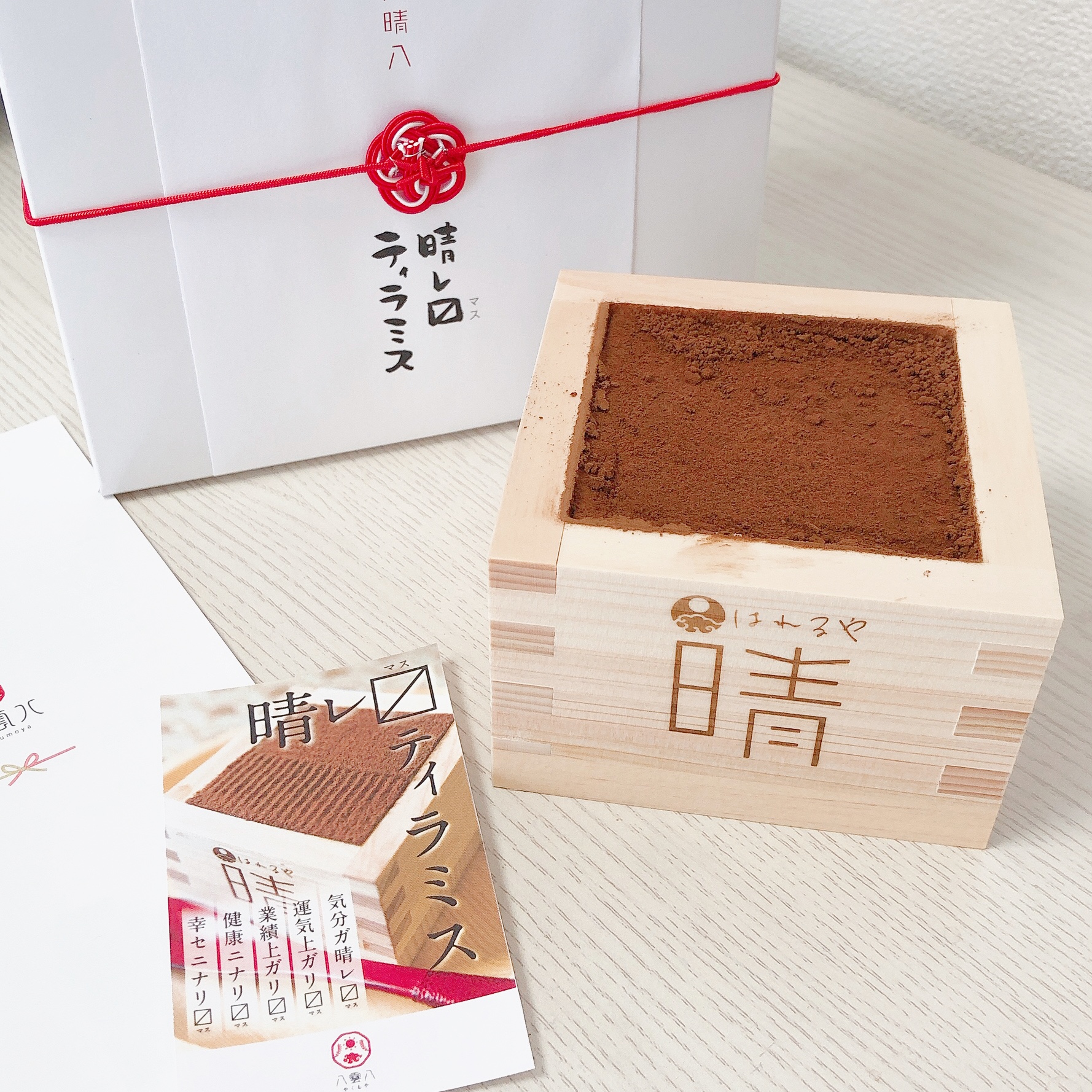 商品ですが、ティラミスという洋風なデザートですが、枡に入っているので和と洋が合わさり晴れの日にも合う高級感のあるデザートになっていると思います。