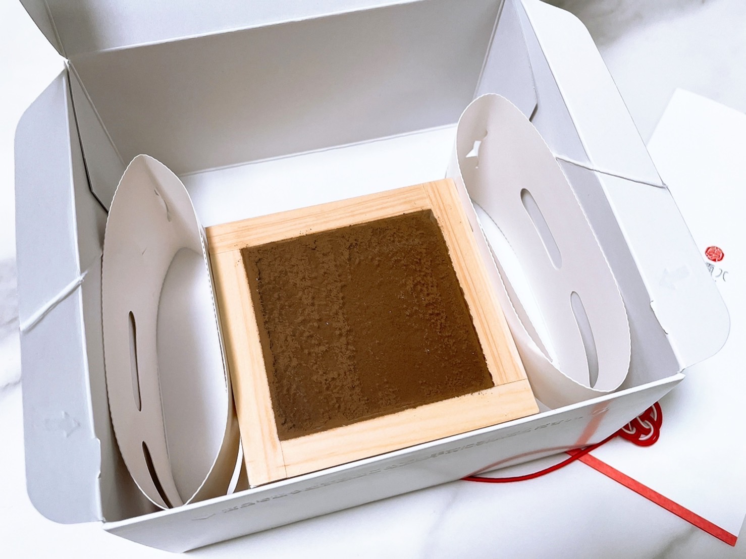 ティラミスの器に枡を使用した縁起の良い「ティラミス」です。ティラミスは、北海道産のマスカルポーネと生クリームを使用し、濃厚で風味豊かな味わいに仕上げました。器には日本一の「木枡」の産地 大垣市の枡を使用。北イタリア生まれのデザートのティラミスが、和の器「枡」に入った和洋折衷でおめでたい商品。枡は「福が増す」「益々繁盛する」などの良い意味として使われるため、結婚式や還暦祝いなど、色々なお祝いごとでの贈り物として喜ばれます。