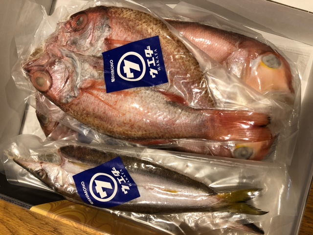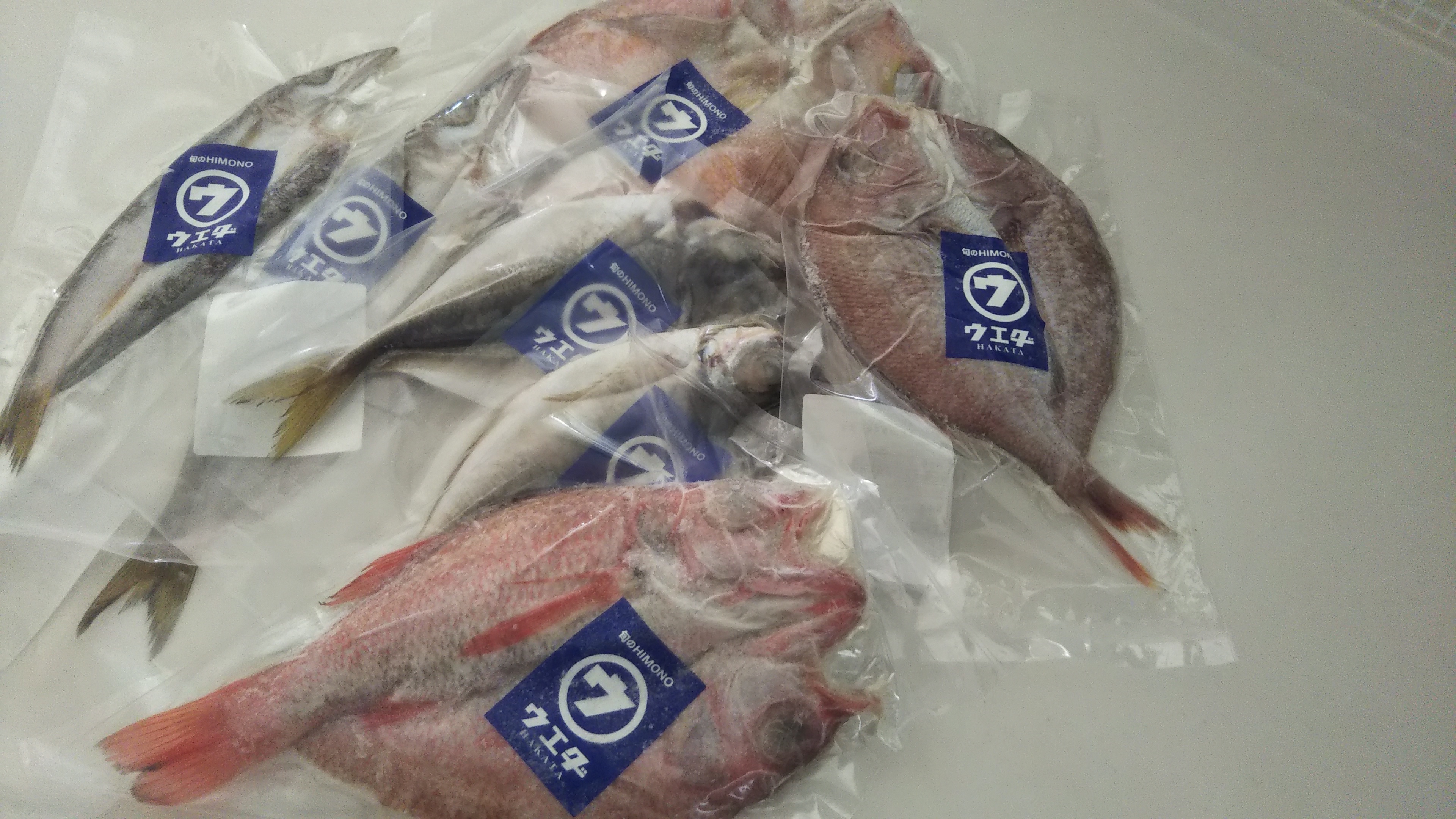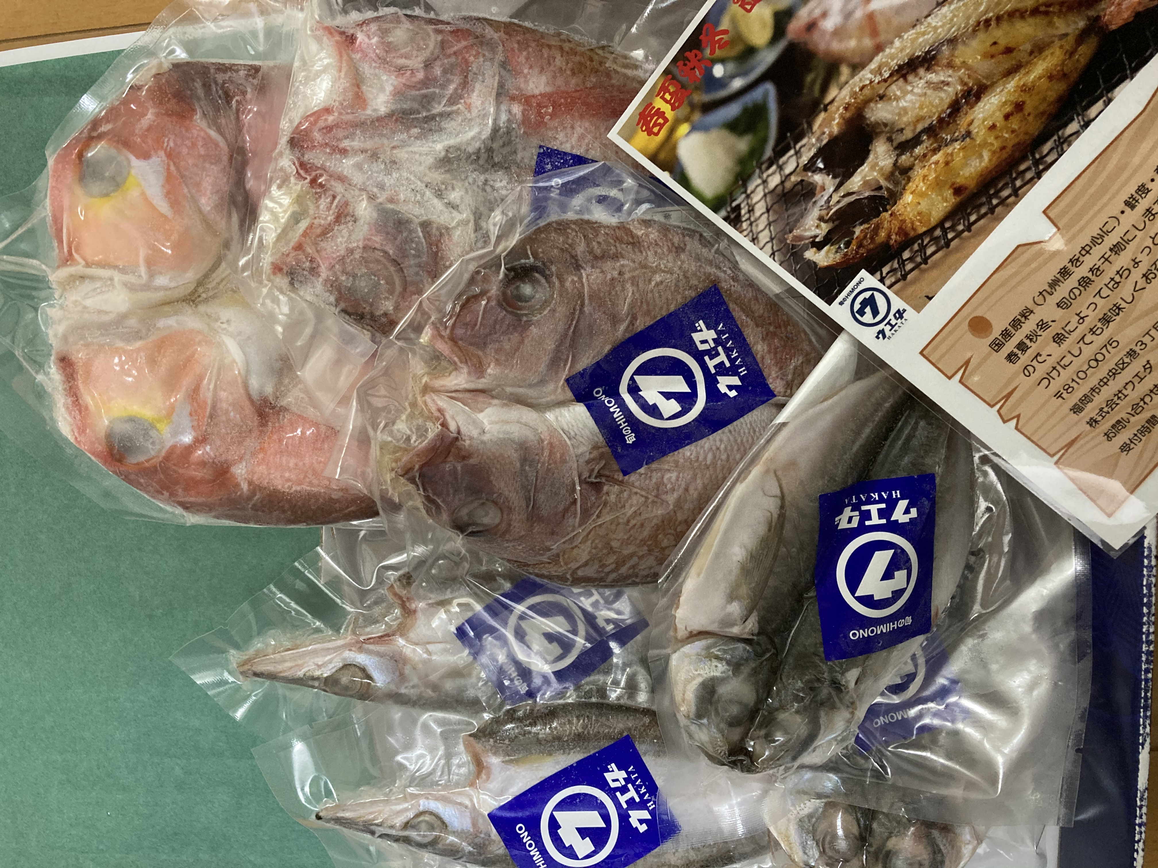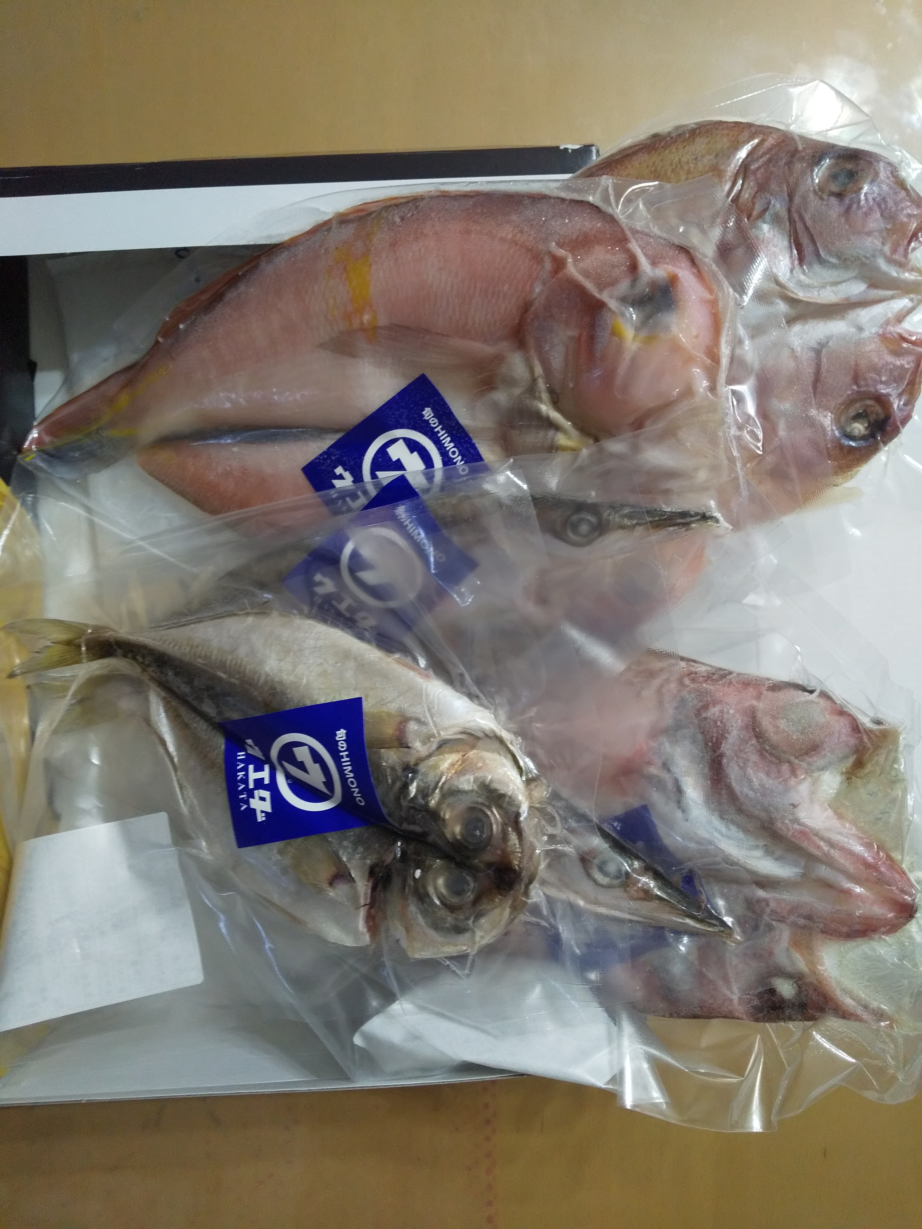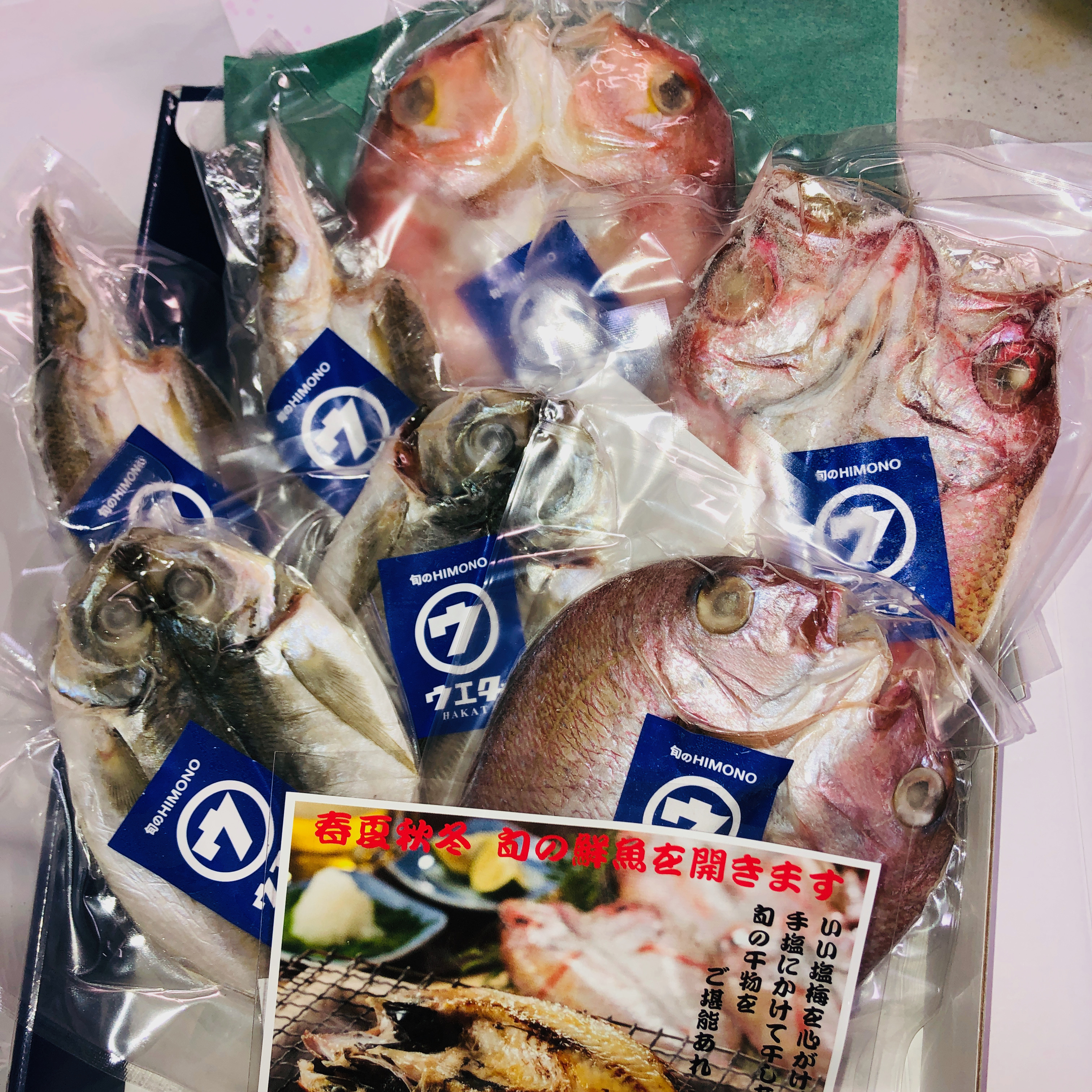 福岡の干物専門店の「干物セット」です。刺身で食べられる程の鮮度の良い鮮魚を手早く開き、ひと塩をして味付け、低温熟成の乾燥法で1枚1枚丁寧に干し上げています。余分な水分と臭みだけを取り除き、瑞々しく仕上げたこだわりの干物です。肉厚で脂ののった、赤むつ(のどぐろ)や上品な白身のあま鯛、真鯛、定番の真鯵やかますの5種類を詰合せた特選セット。食塩だけで味付けし、素材の味を最大限に活かして造る安心な無添加干物。しっとりとした仕上りで焼くとふんわりとした食感とともに魚の旨みを存分に味わえます。