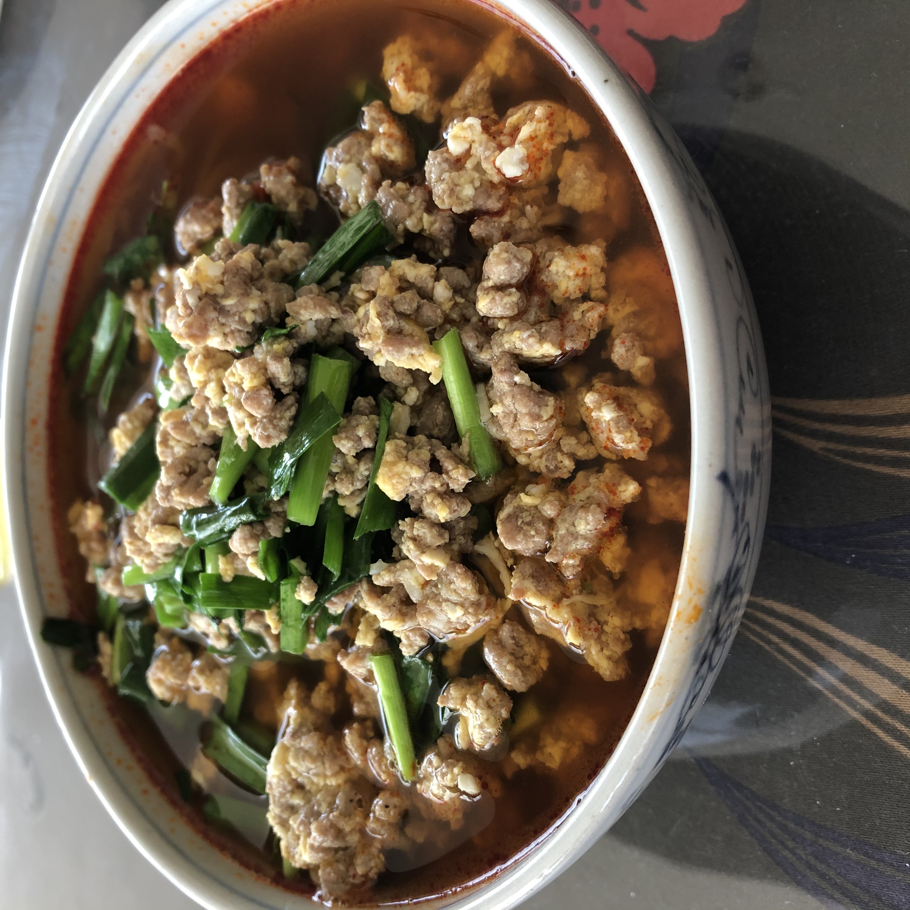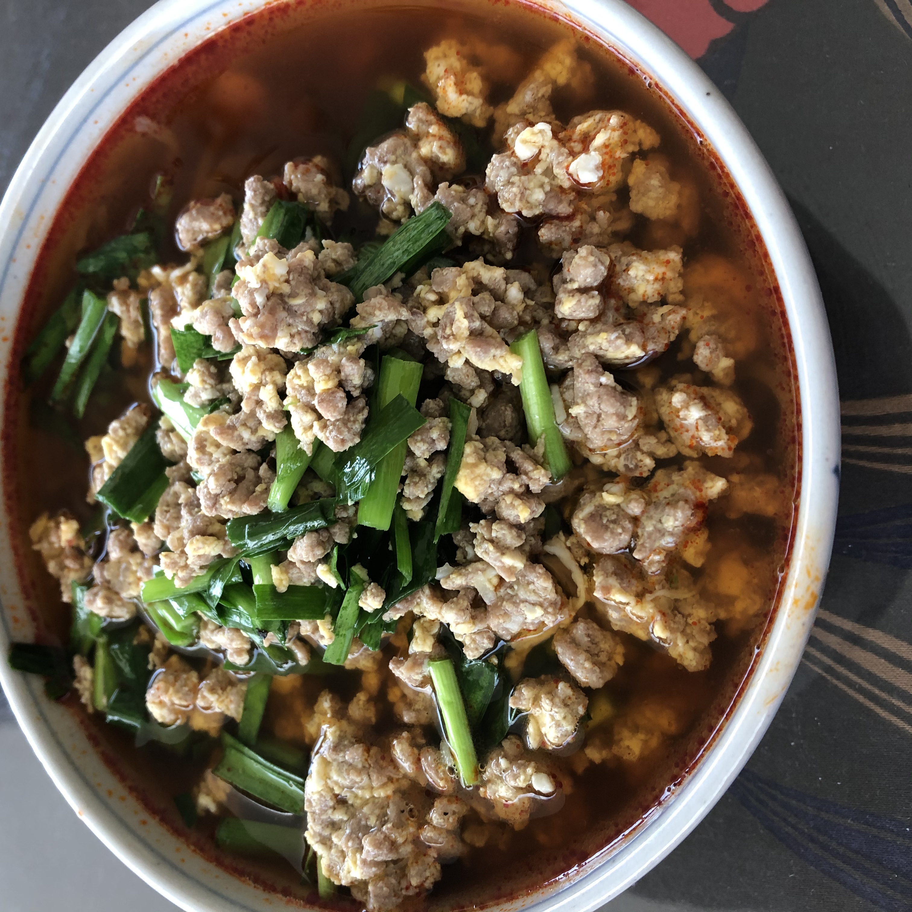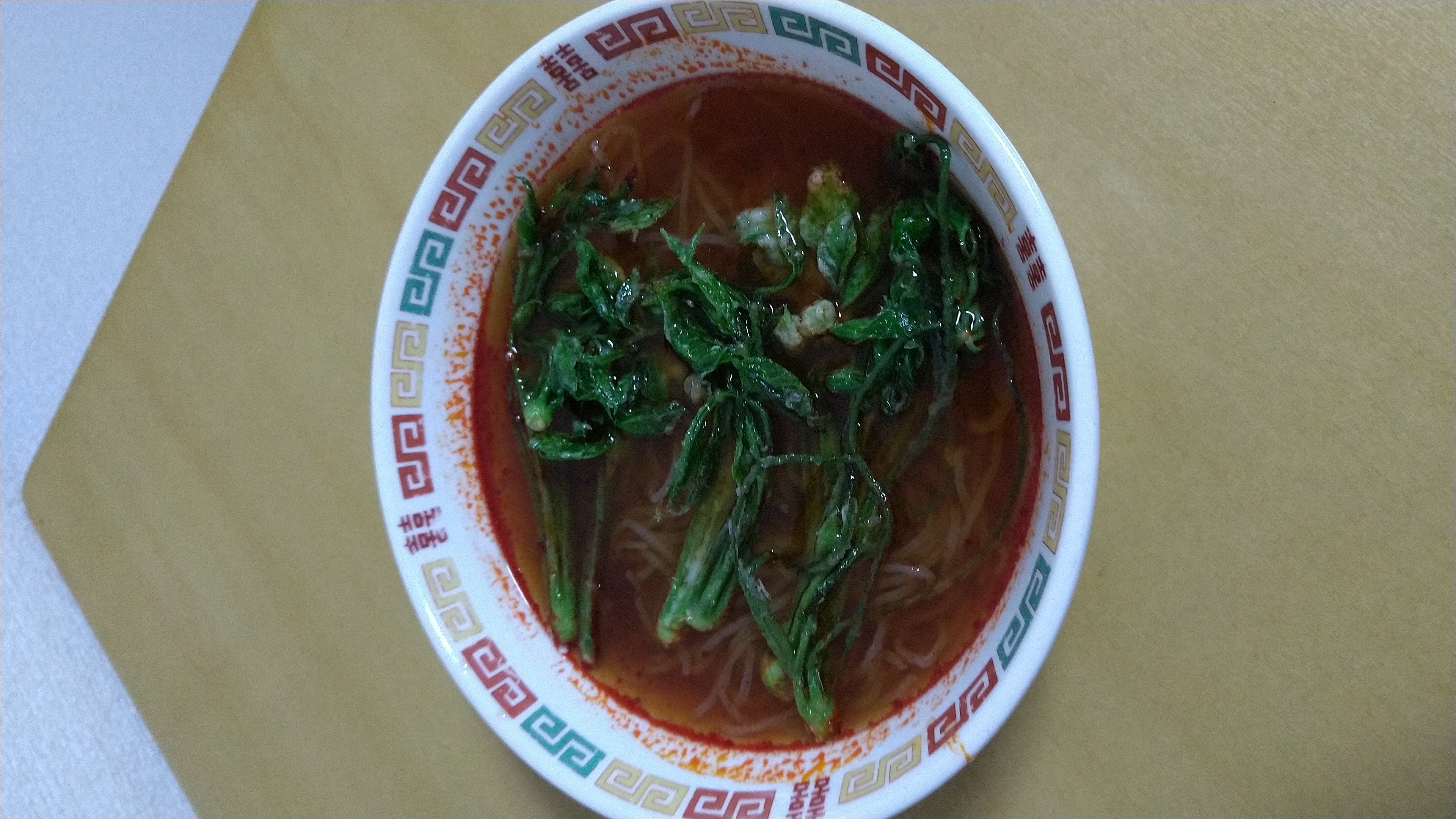 ショップのHPに「お好みであらかじめ炒めたひき肉、ニラ、いり卵を加えるとより一層美味しく召し上がれます。」とありましたが、いり卵でまろやかになるかもしれませんね。