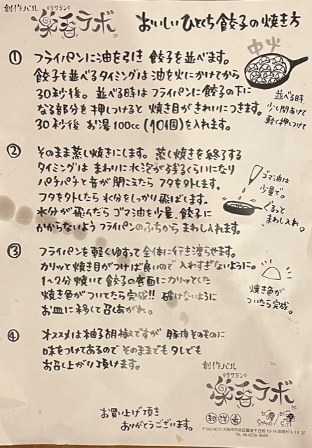 味の方はなにも付けなくてもしっかりとついており、塩コショウがその中でも強かったように思います。あと、おそらくにらが一口餃子に対して多めに入っているのかな?と言うほどニンニクがはいっていないのに入っているような気がする(ニラのにんにくっぽい感じ?)がします。私は好みでした!
