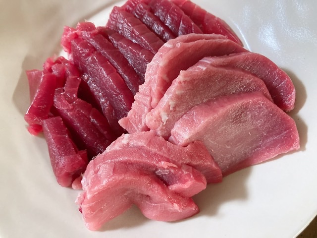 赤身は綺麗な色をしており、初めは何もつけずに食べましたが、マグロ本来の旨味が凝縮されており美味しかったです。スジもなく食べやすかったです。