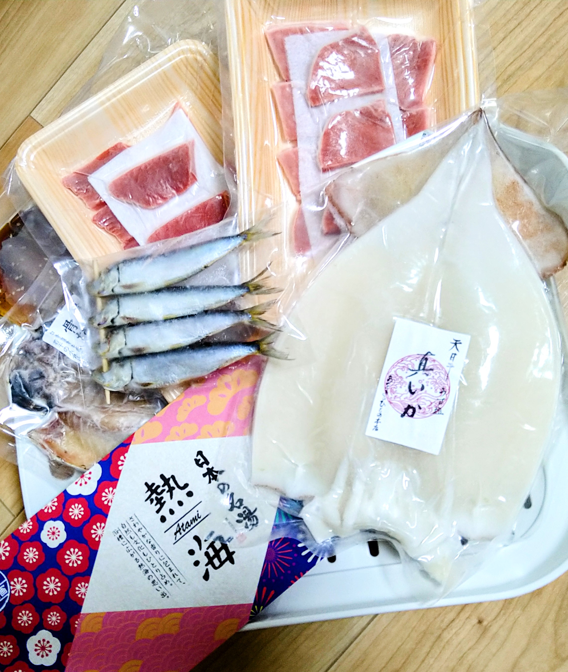 熱海のショップが厳選した海鮮(マグロ切り身・干物など)・菓子(チーズケーキ・ロールケーキなど)・名物(揚げワンタン・食パン・焼き菓子など)を、金額・回数などを選んで取り寄せできるセットです。海鮮のスタンダードコースの「熱海の海鮮づくし大満足セット」は、海鮮丼にピッタリな「マグロ中トロ」や「バチマグロ」、とにかく食べやすい「骨なしあじ」、身からゲソまで楽しめる「いかLサイズ」などバリエーション豊富なセット。熱海温泉の素付きなので、自宅にいながら熱海を旅する気分を楽しめます。