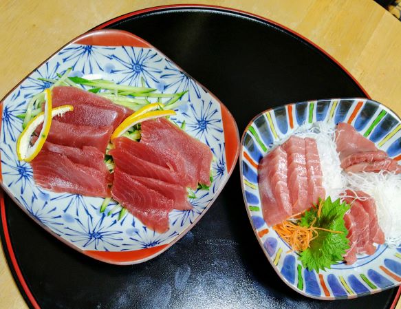 八ポースチロールのトレーにカットしたお刺身が入っていたので、事前にショップサイトで確認していたもののちょっと心配でしたが、いやいや、これがとても良かったと思います。真空パックなので清潔ですし、説明どおりに解凍したらドロップもほとんどなく上手に解凍でき、盛り付けやすい。お味はもちろんとっても美味しい~。中トロは程よい脂で本当にトロッと。バチマグロもしっかりした味で大満足。ボリューム的にはそれぞれ2人前くらいだと思います。