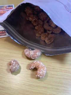 粒が大きいので手づかみで食べやすく、また甘いのでティータイムやおやつ、小腹が空いた時などにいいなと思いました!カシューナッツとメープルの相性抜群です!ついつい手が出る止まらないお味でした!