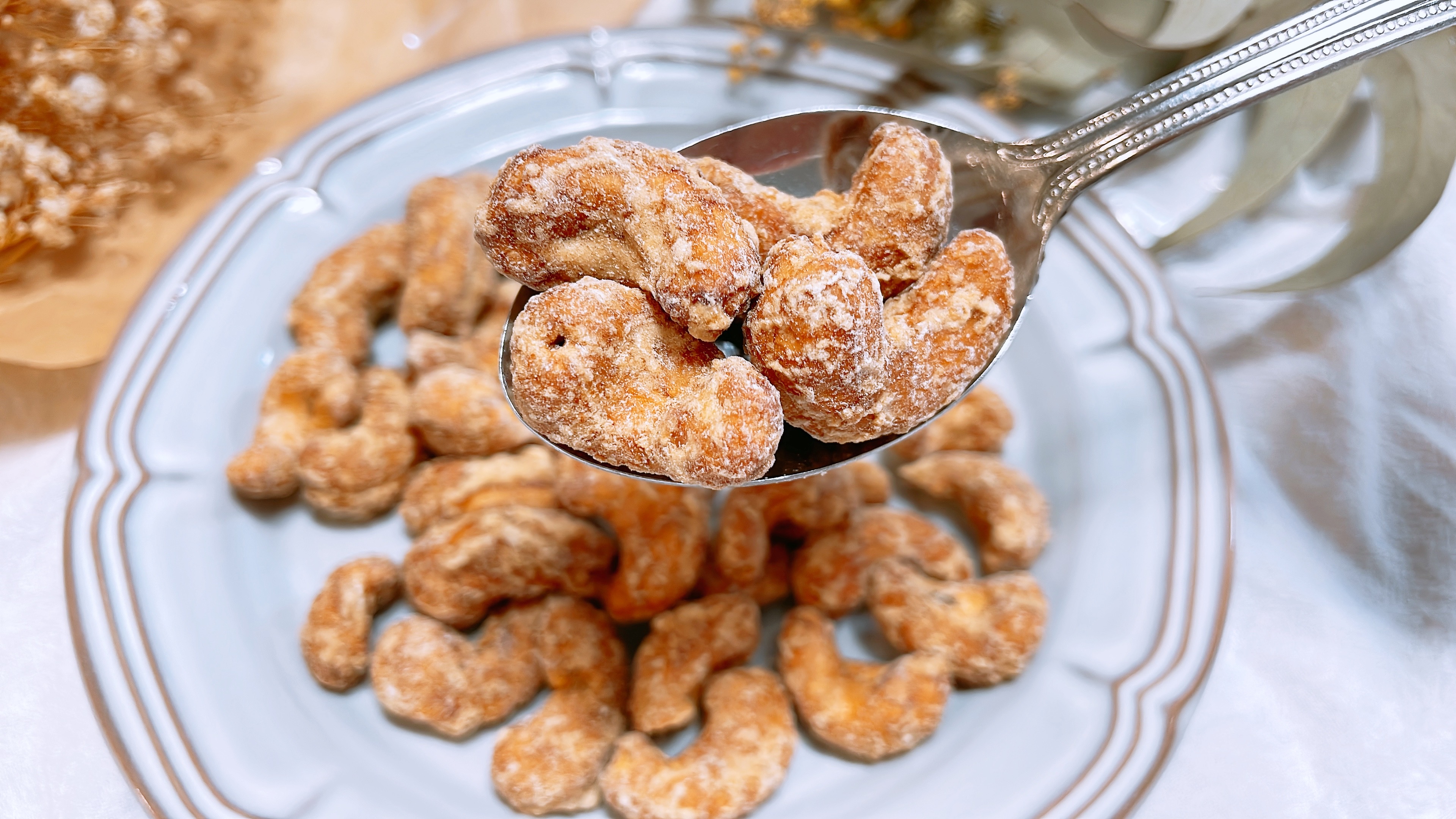 カシューナッツの甘みとコクと食感、メープルシロップの風味が口の中で広がり満足できる味わいです。