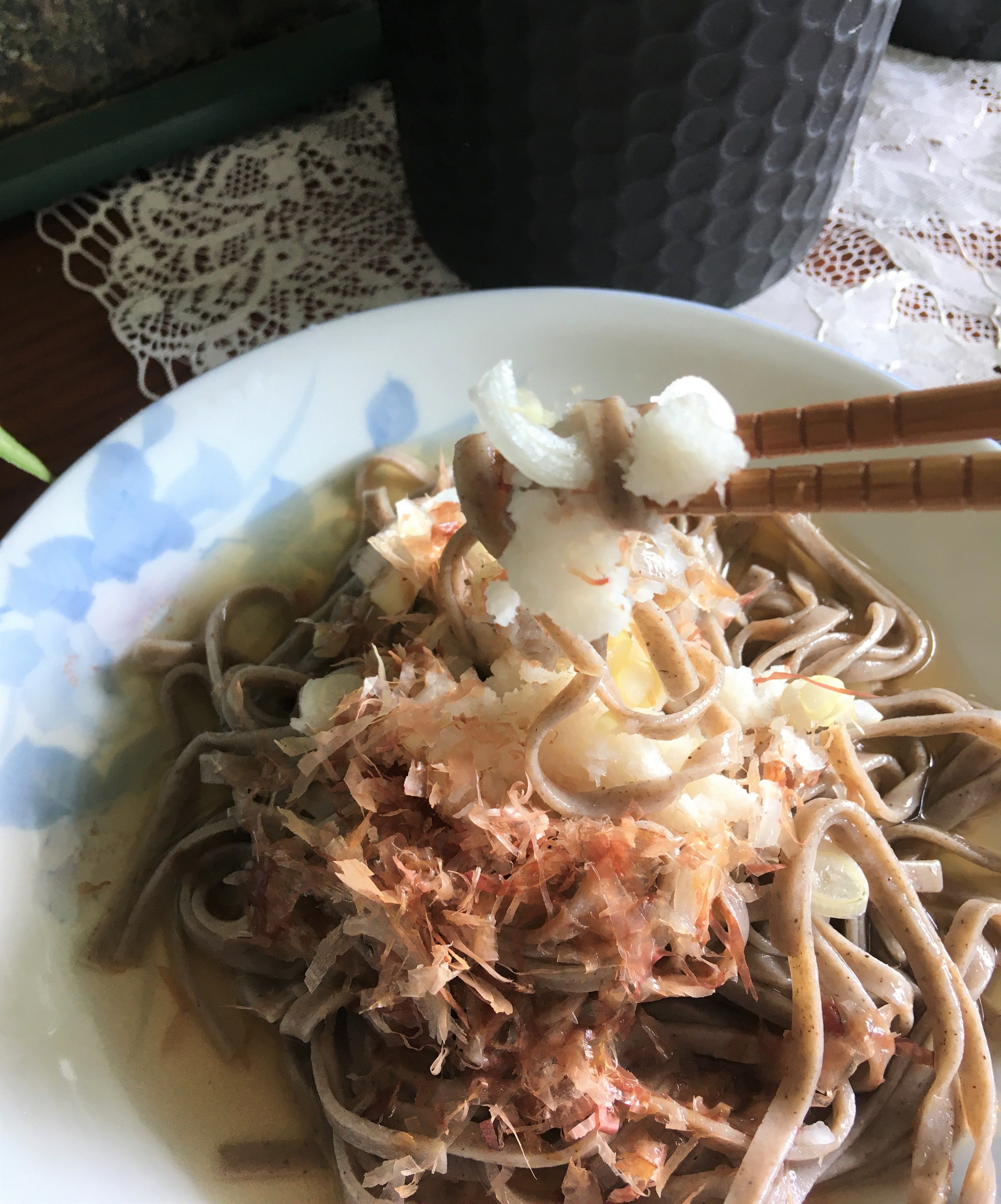 そして、薬味をのせて、そばつゆをかけた越前おろしそばを一口…