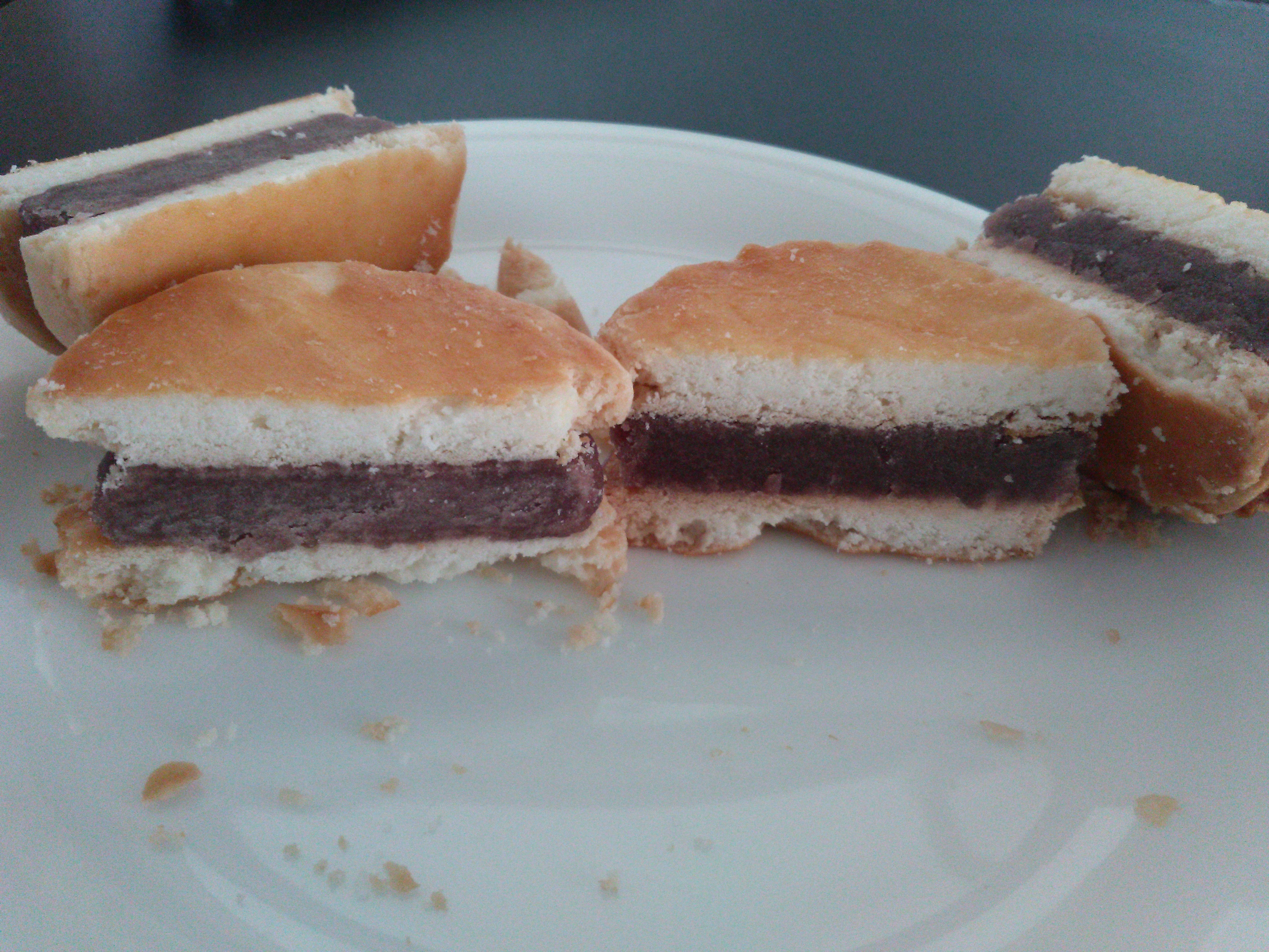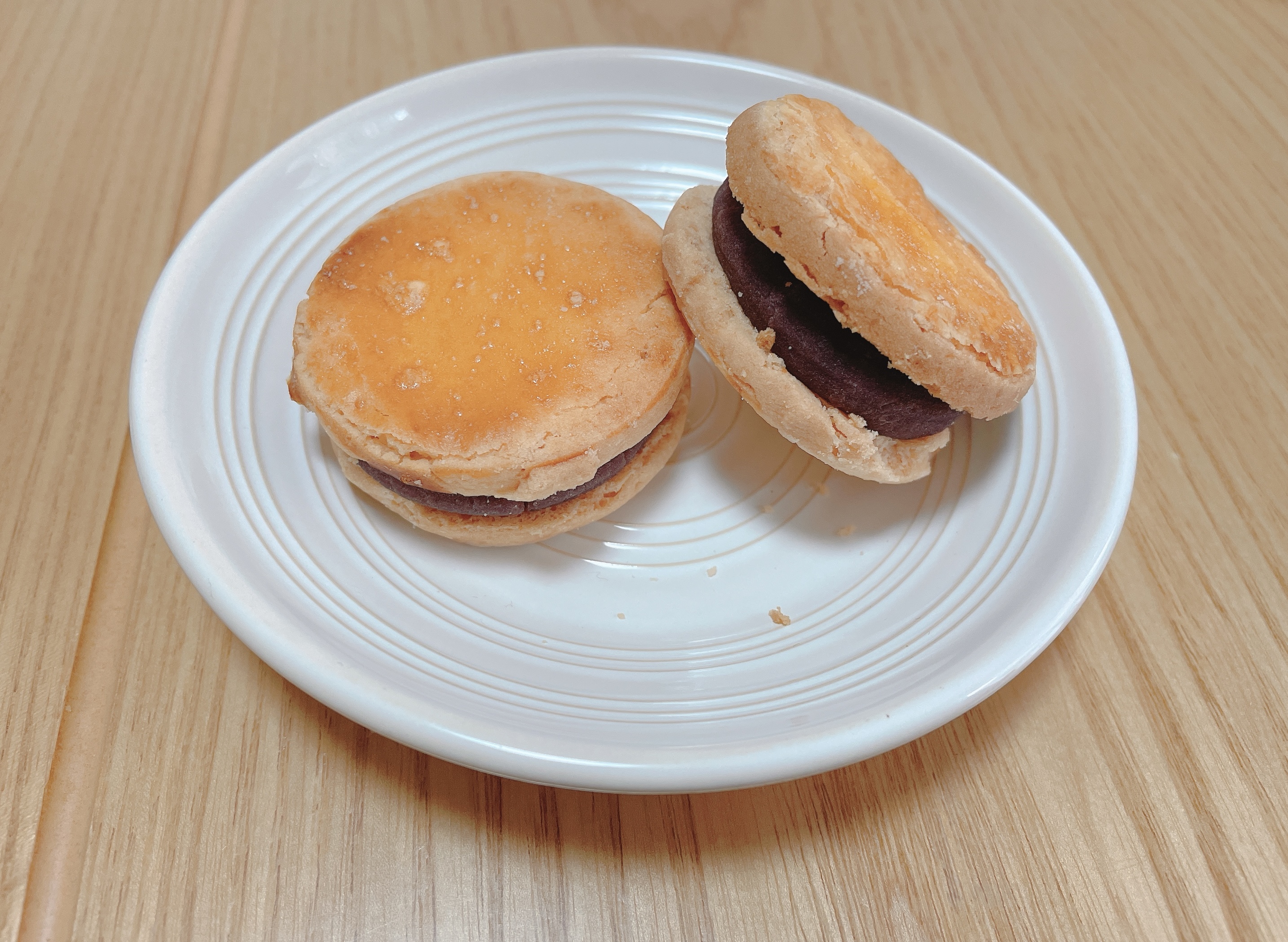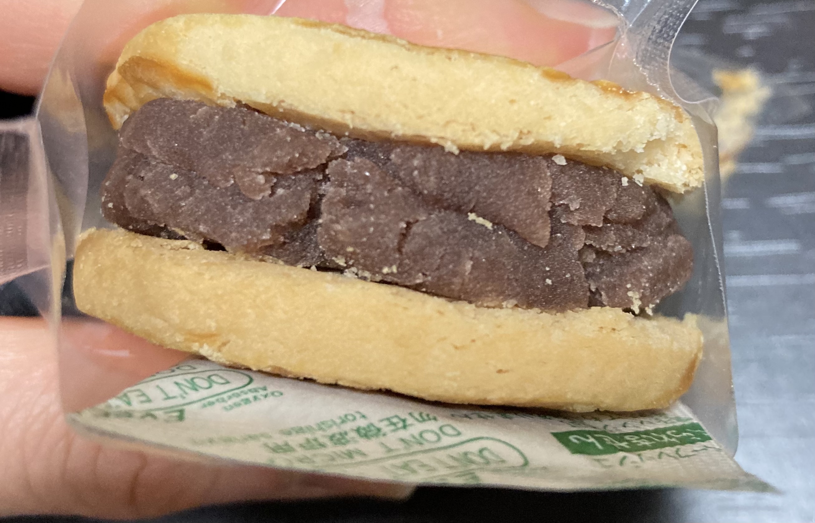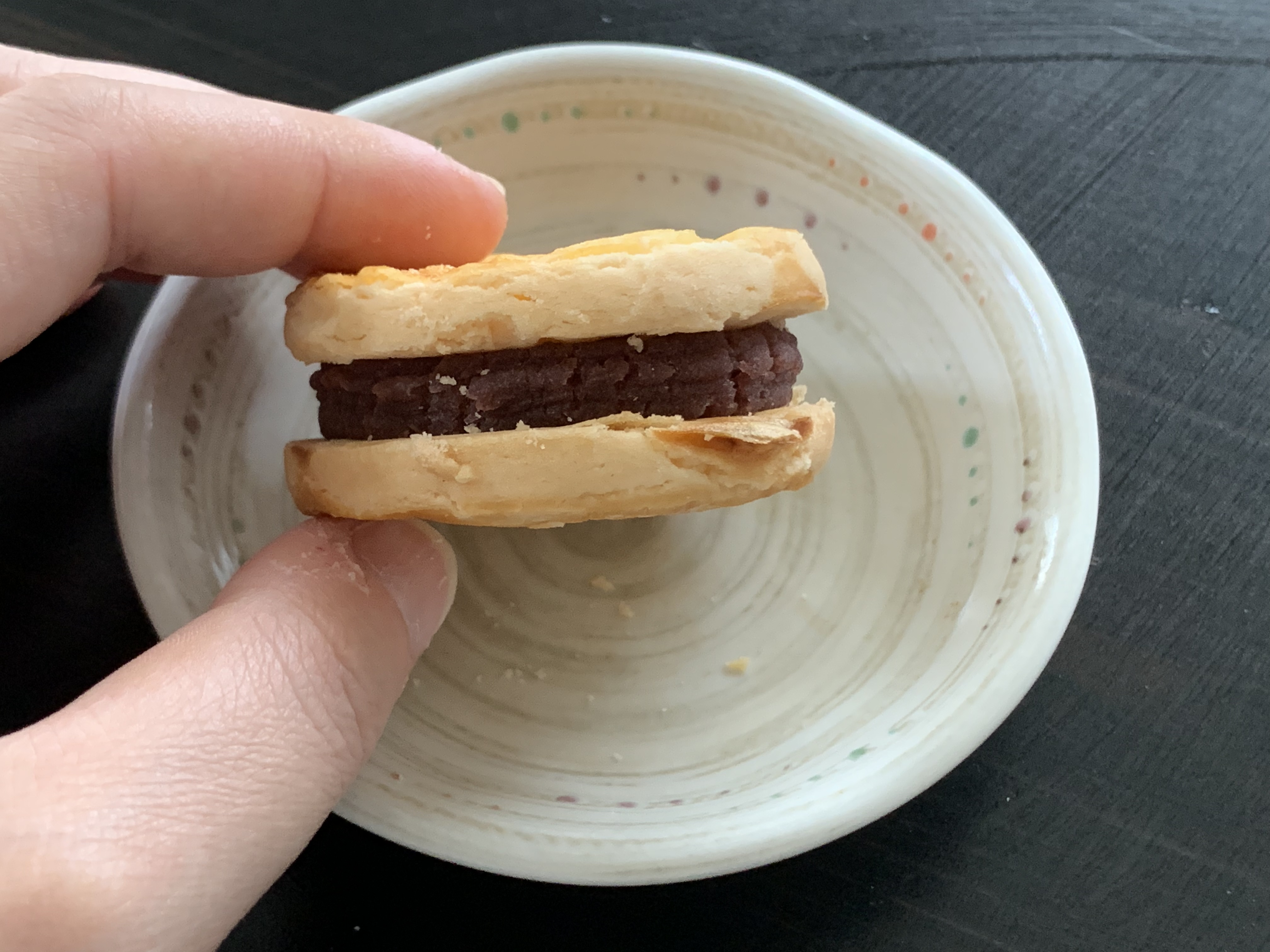 米粉クッキーとこしあんのバランス(食べたときのほどけ具合)を追求した結果、クッキー部分は崩れやすいので、こぼれないようにご注意ください。