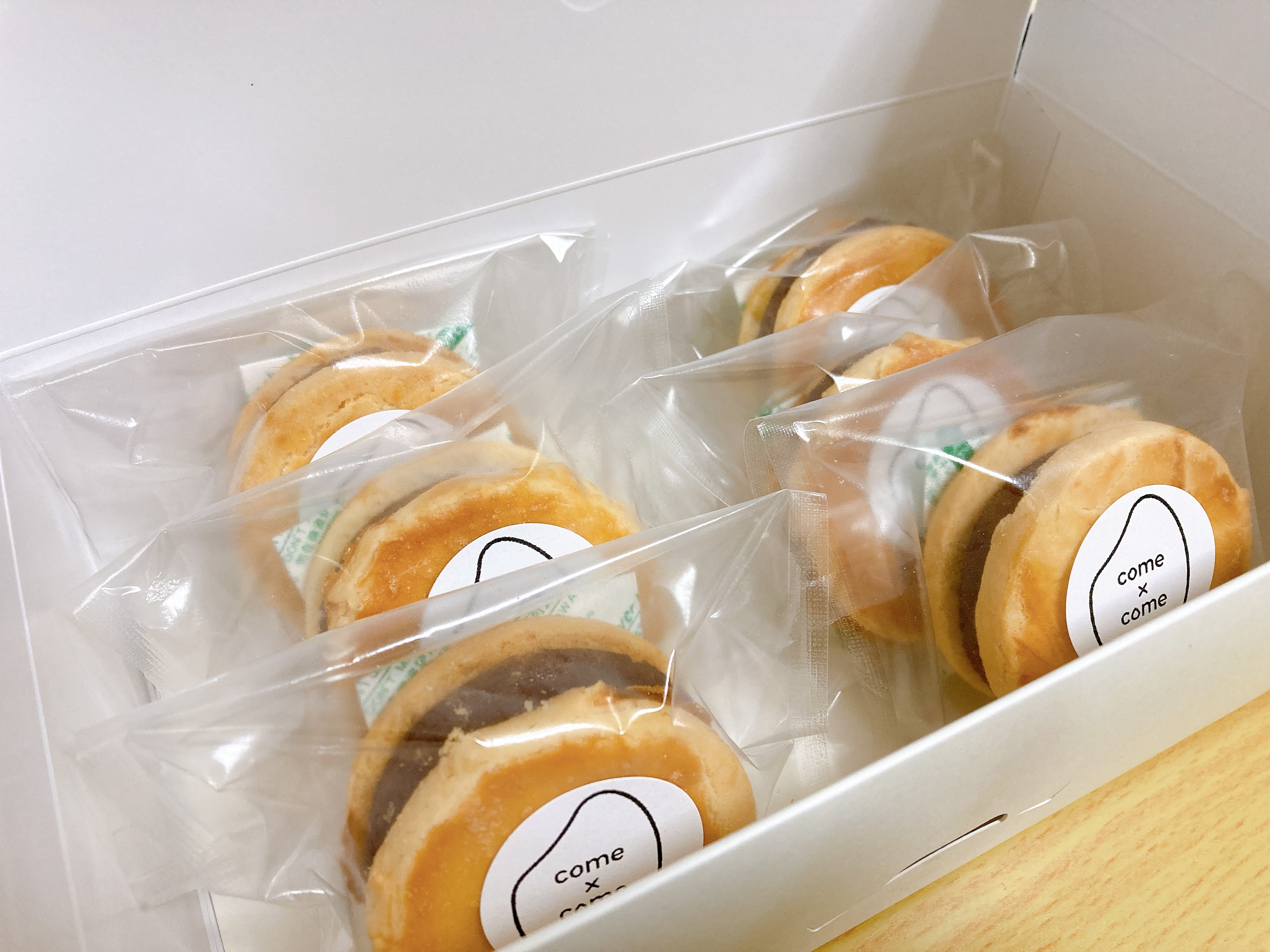 国産米粉と奈良県のブランド卵「白鳳卵」の濃厚な風味を活かしたクッキーに、「極上」という名を冠したこしあんをサンドした和スイーツです。北海道産の良質な小豆だけを厳選し、明治33年創業の老舗「きたかわ商店」が丁寧に炊いた別格のこしあんを、さっくりほどける米粉クッキーと合わせました。米粉のクッキーは口の中でほどけながら、こしあんと絶妙に混ざりあいます。通信販売限定スイーツです。一味違った手土産におすすめです。