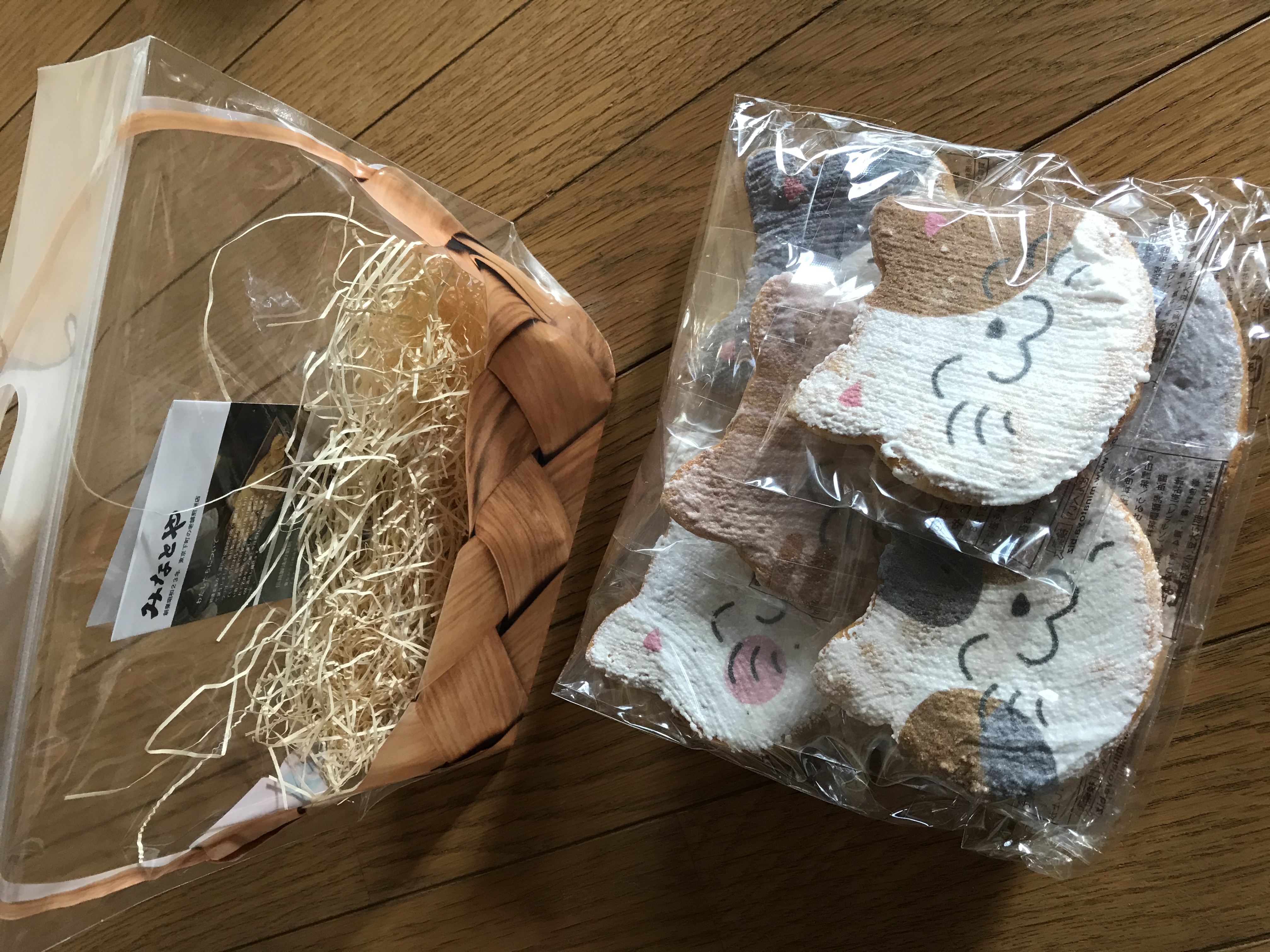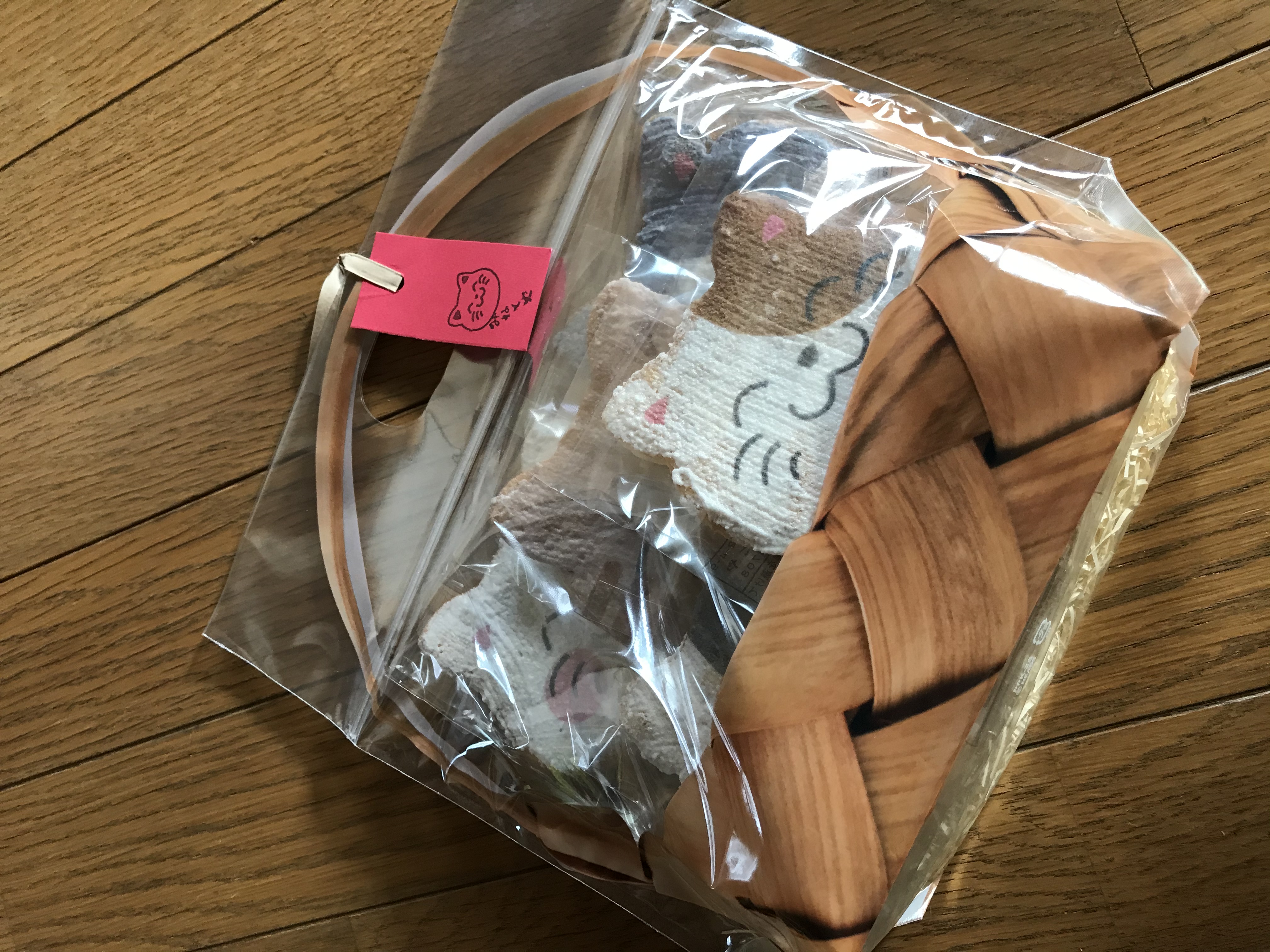 中には猫ちゃんが描かれた白い紙袋とお煎餅が入っていました。