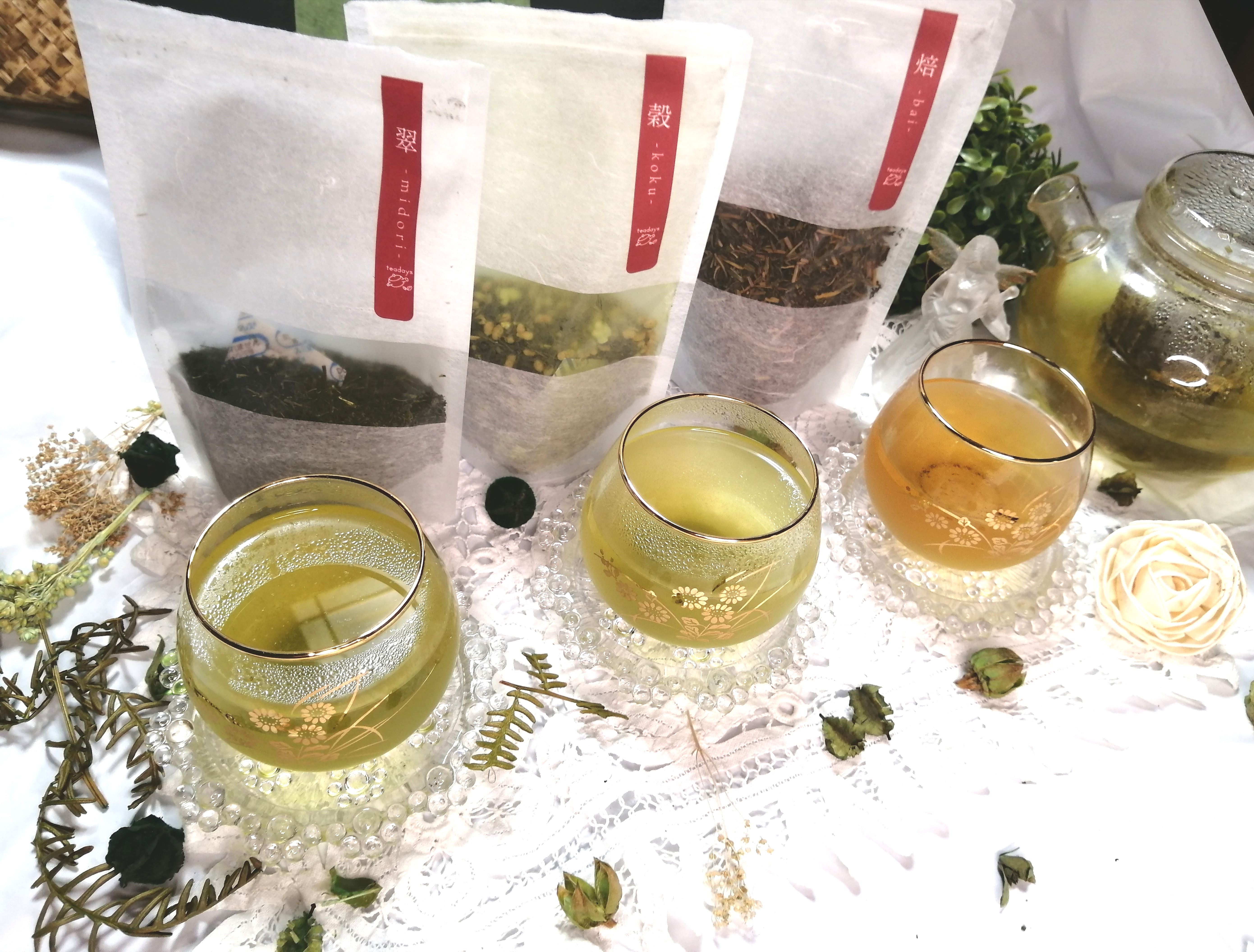 翠・薫・穀・焙、4種類のこだわりのお茶と、それらを全て味わえる詰め合わせセットを販売しております。