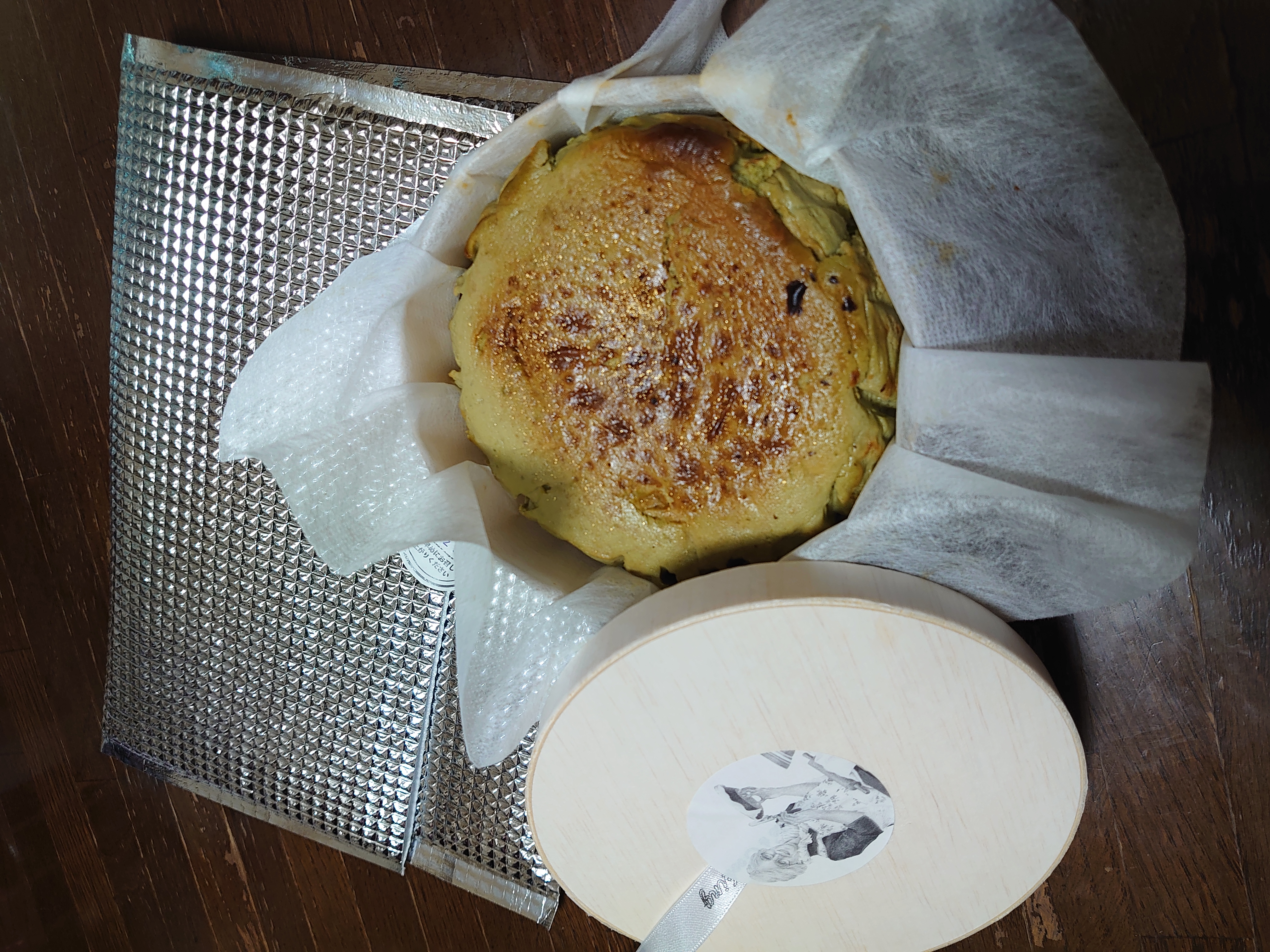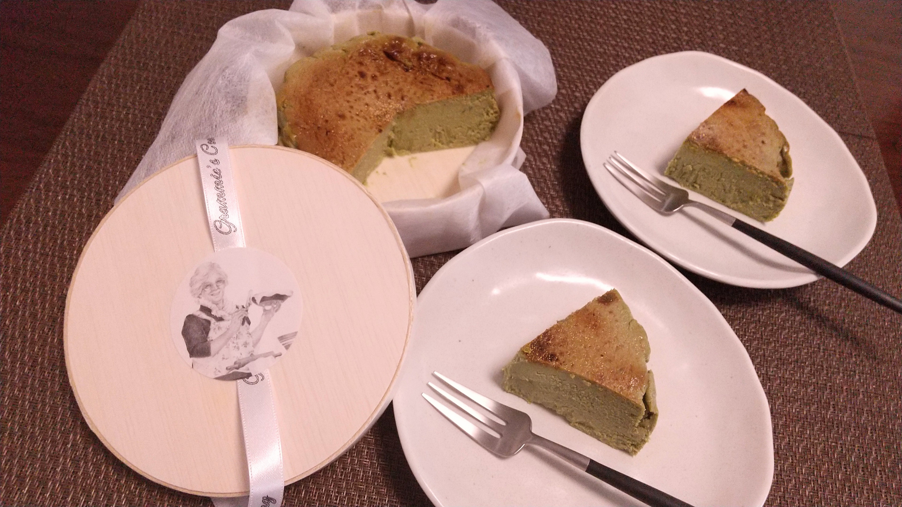 無添加のナチュラルチーズを使用した、抹茶のバスクチーズケーキです。グルテンフリーでありながら濃厚な味わいで、チーズと抹茶の奥深さを感じる新感覚スイーツ。バスクチーズケーキ特有の香ばしさも味わいの一つです。12cmの程よいサイズのホールケーキで、金沢の金箔のトッピングが印象的な「美しいバスクチーズケーキ」です。