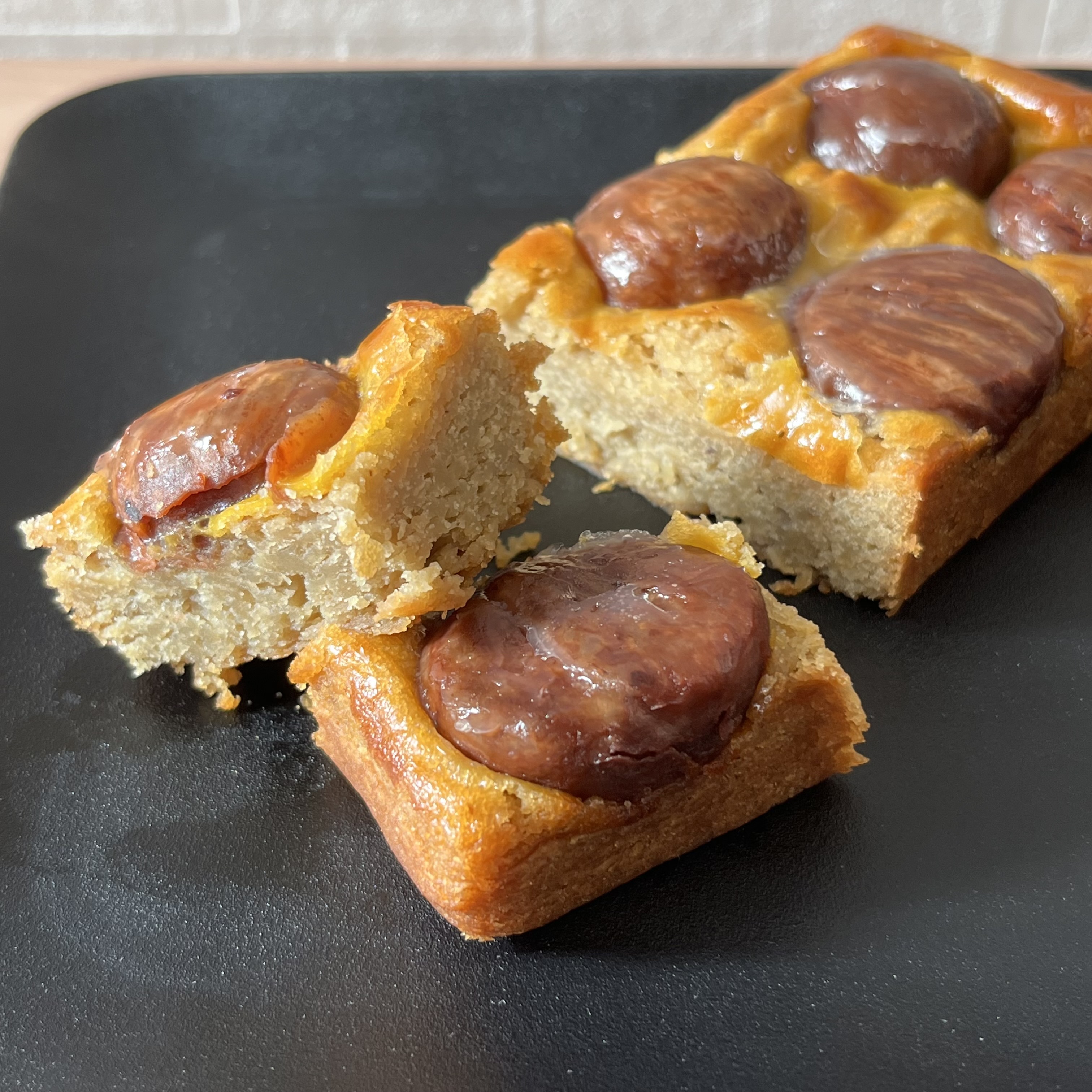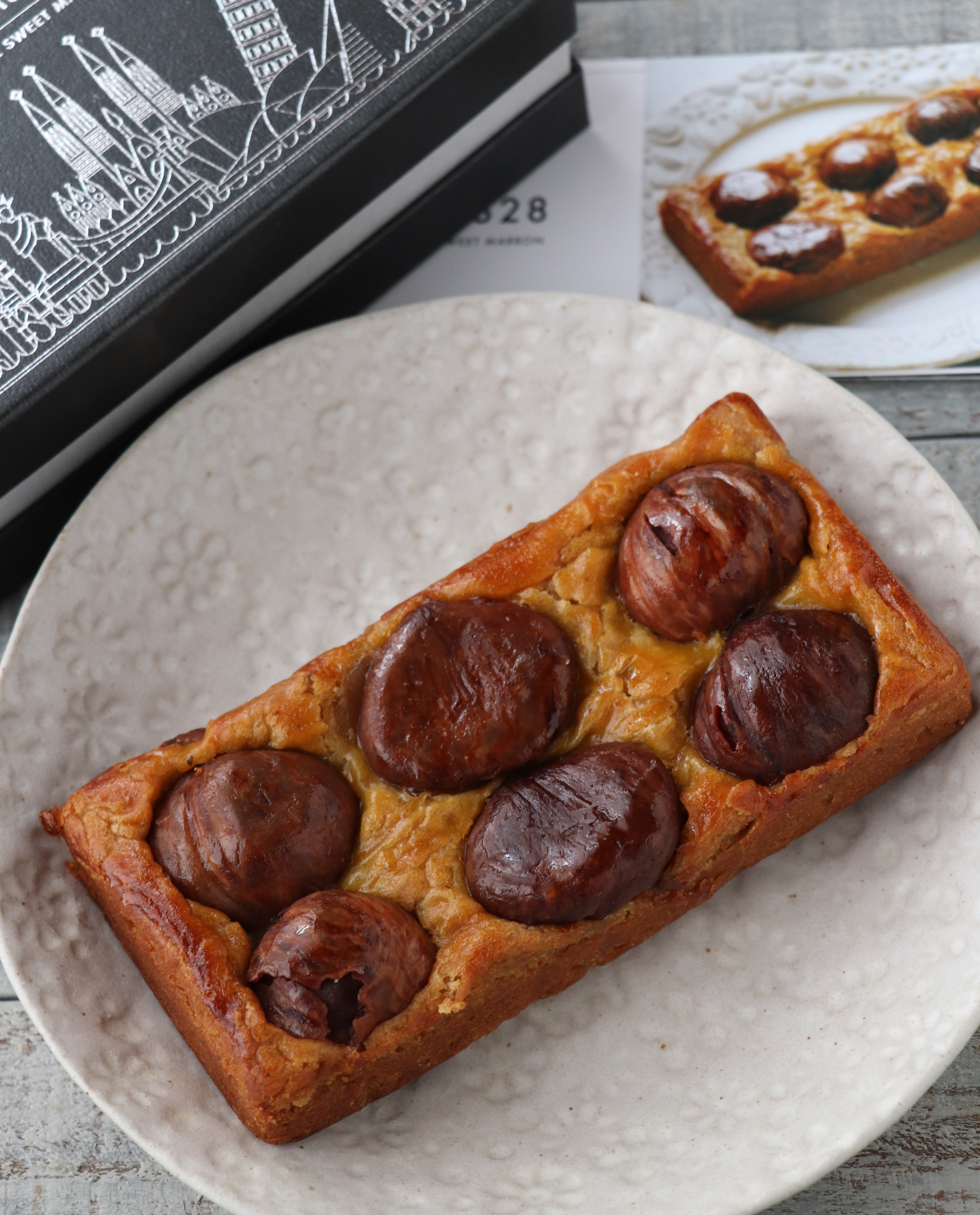 栗の旨味と香りがギュッと詰まった焼菓子であることが、断面からうかがえます。