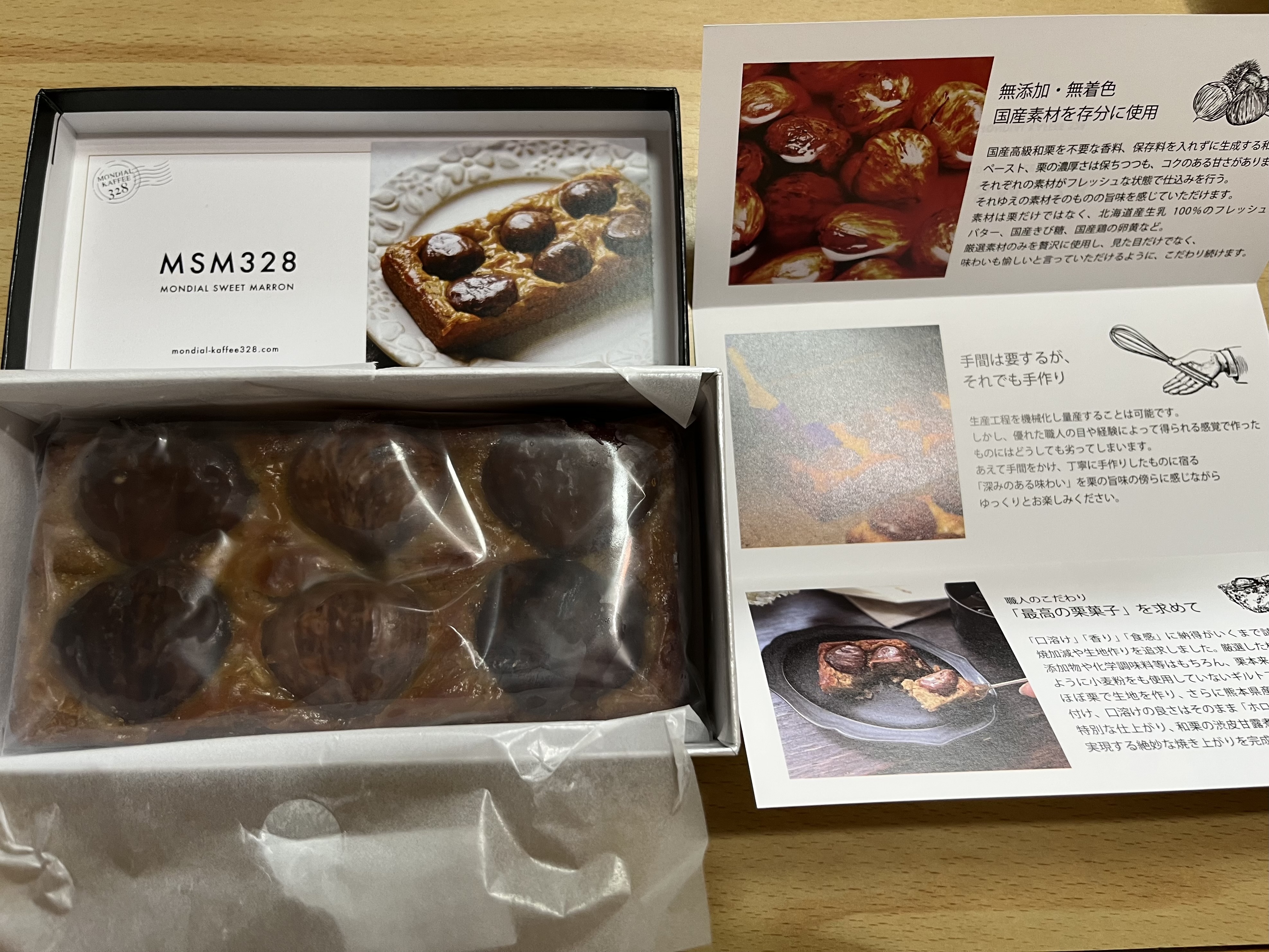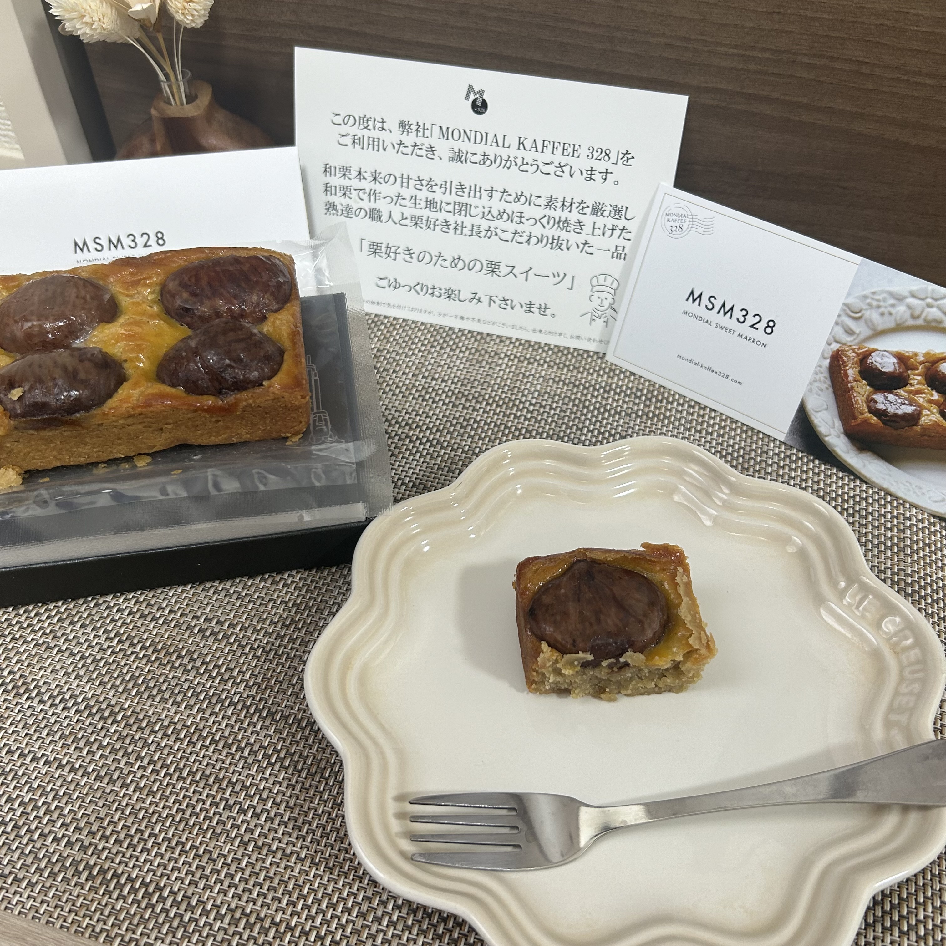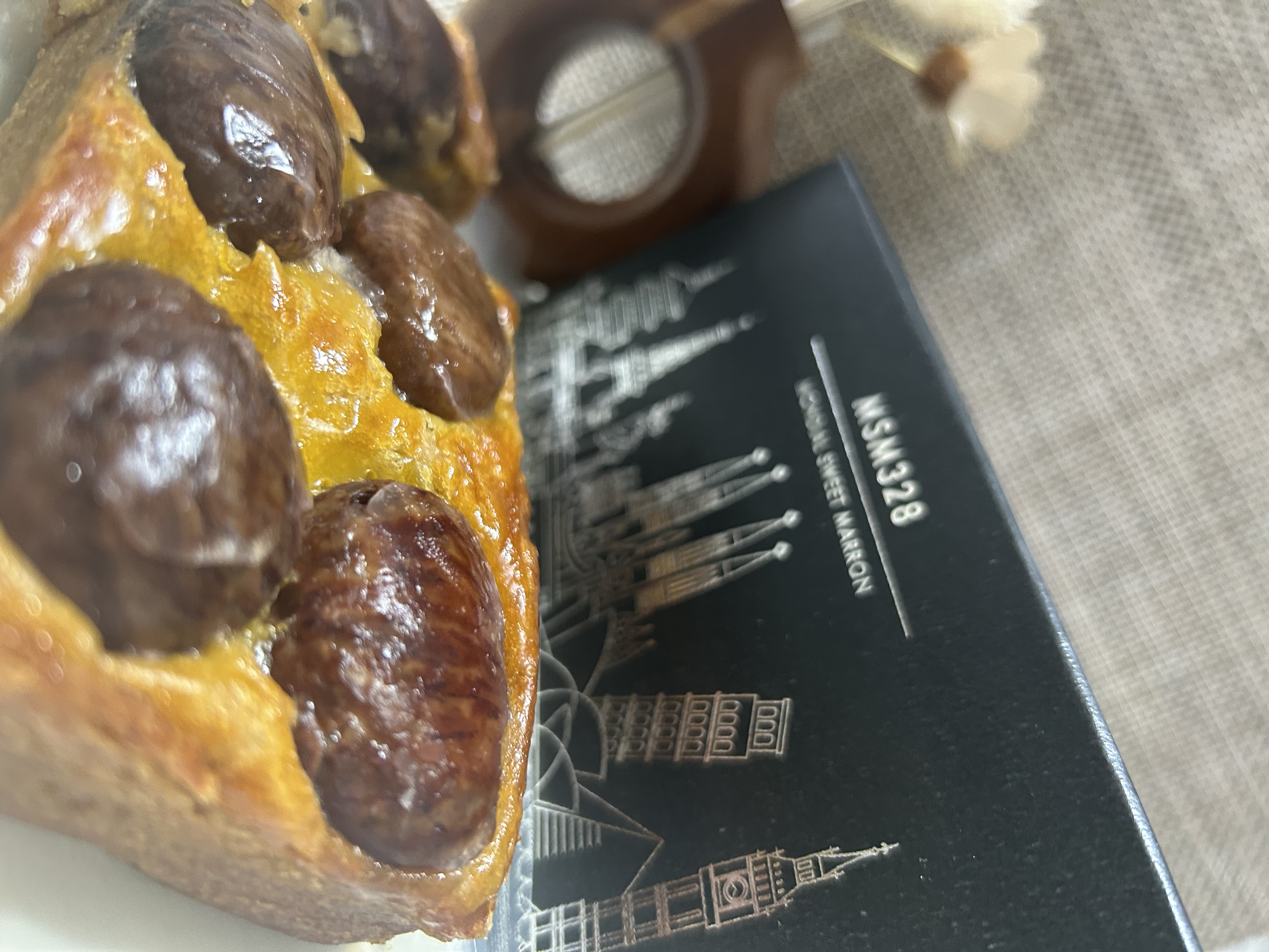 和栗の渋皮甘露煮をふんだんに使用し、生地との一体感、存在感が残るように何度も温度管理を調整、絶妙な焼き加減を目指しました。コーヒーや、紅茶との相性も抜群です。