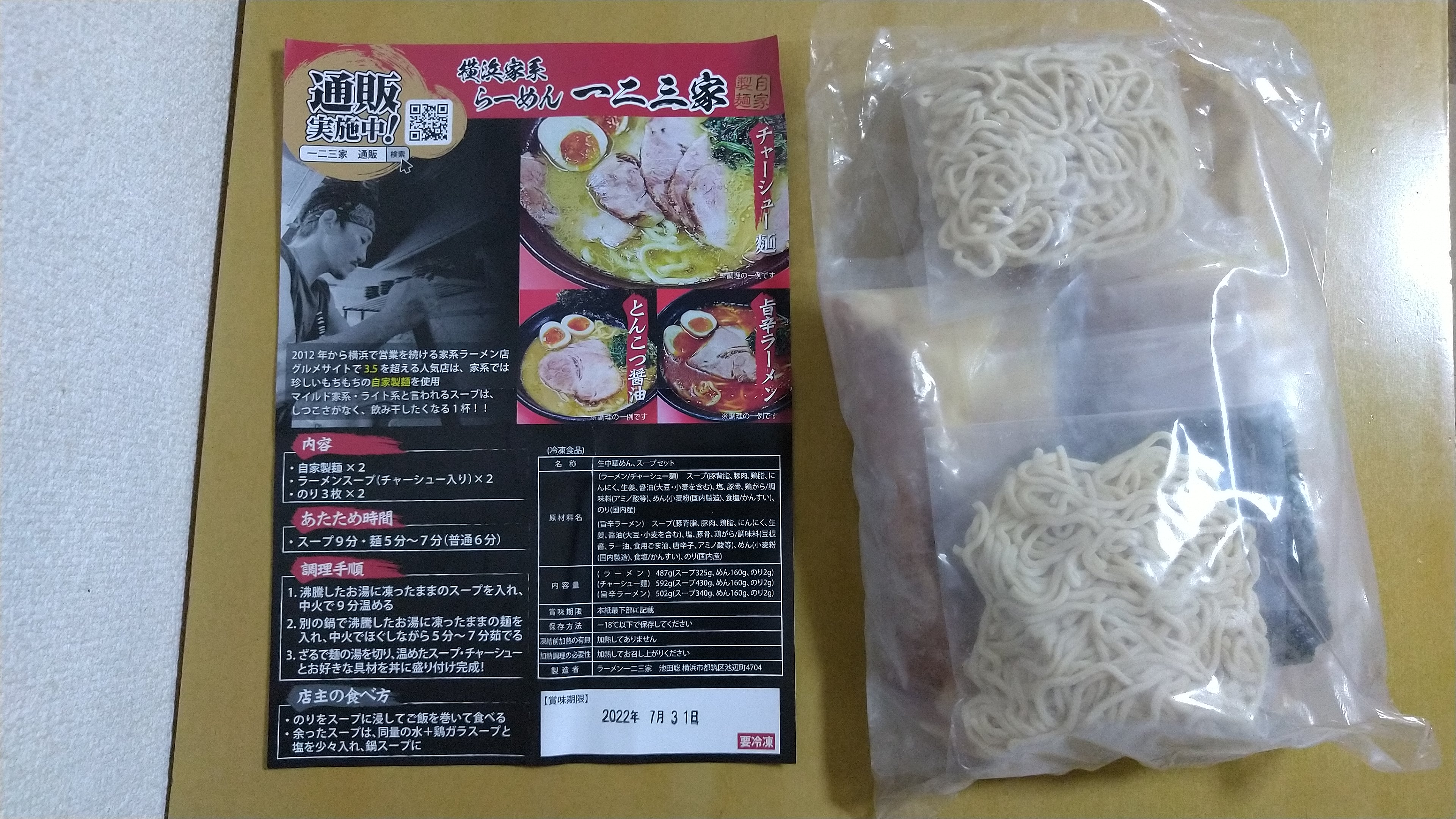 一二三家様のラーメンは予定日に時間通りに、冷凍状態で届きます。