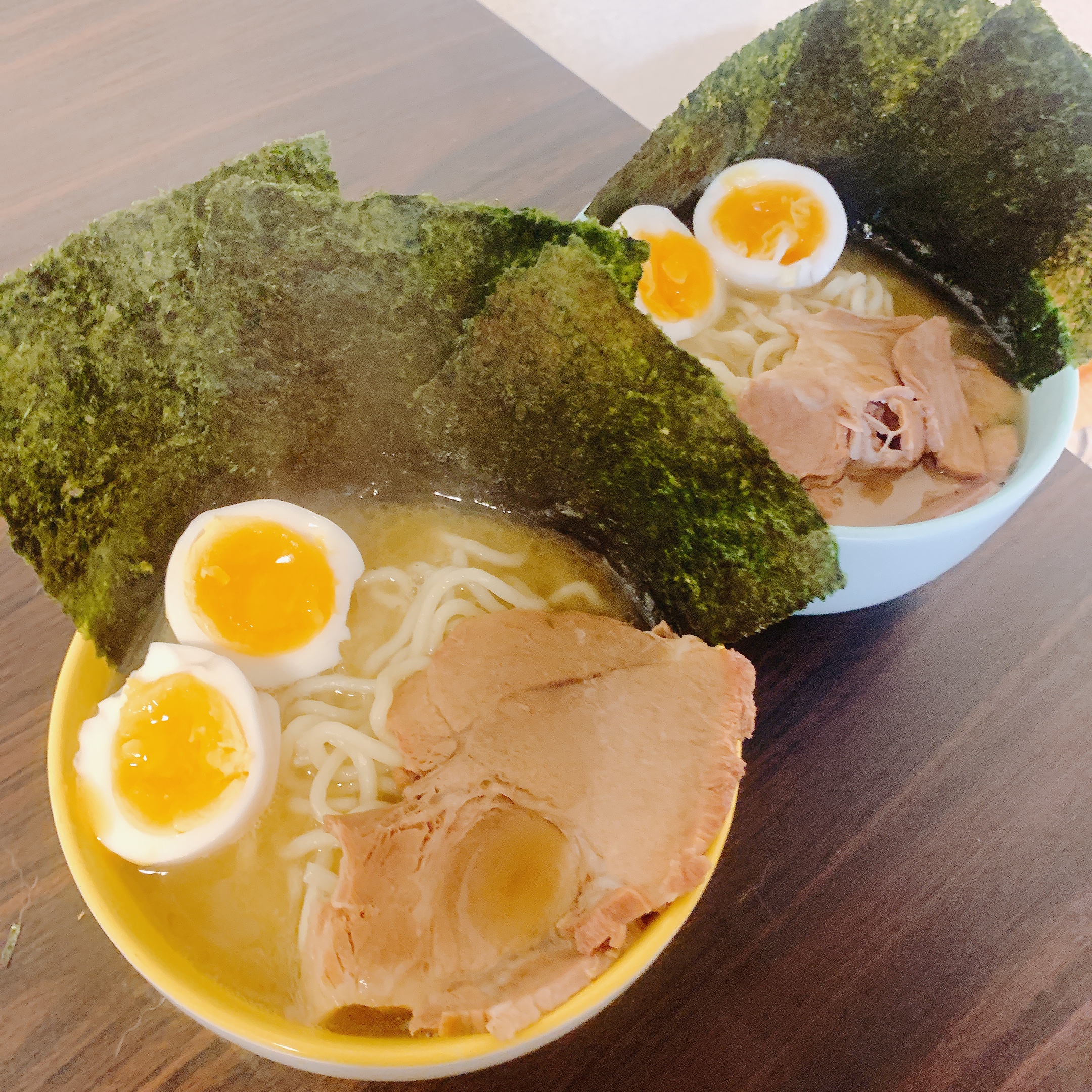 スープの中に大きなチャーシューも入っているので、追加で用意した食材は卵くらいです。
