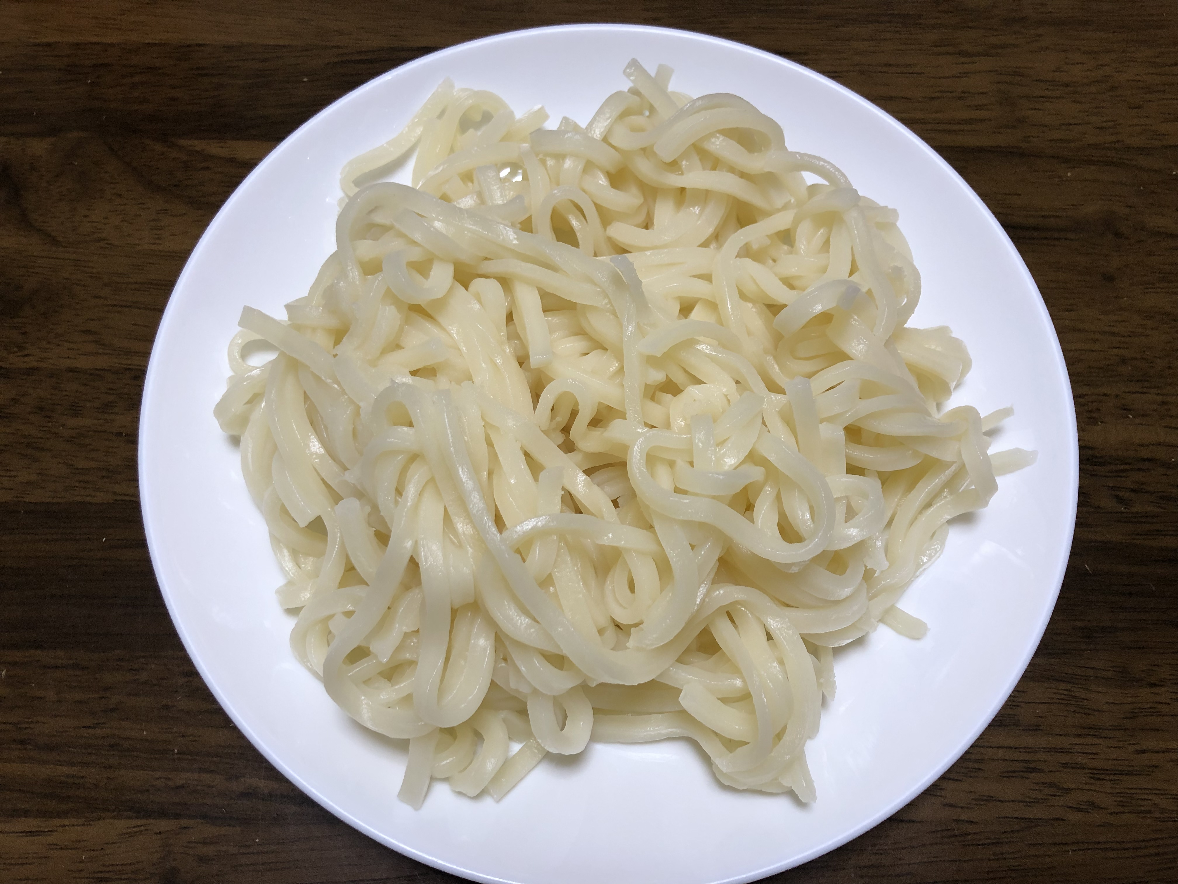 讃岐うどんで一番多く最良されているオーストラリア産小麦を天然にがりも含んだ塩水で練り、ストレスをかけ過ぎず、じっくり育むような鍛え工程を経た後、一晩熟成し、9段階の徐々に圧延する工程のあと包丁切りしたうどんです。