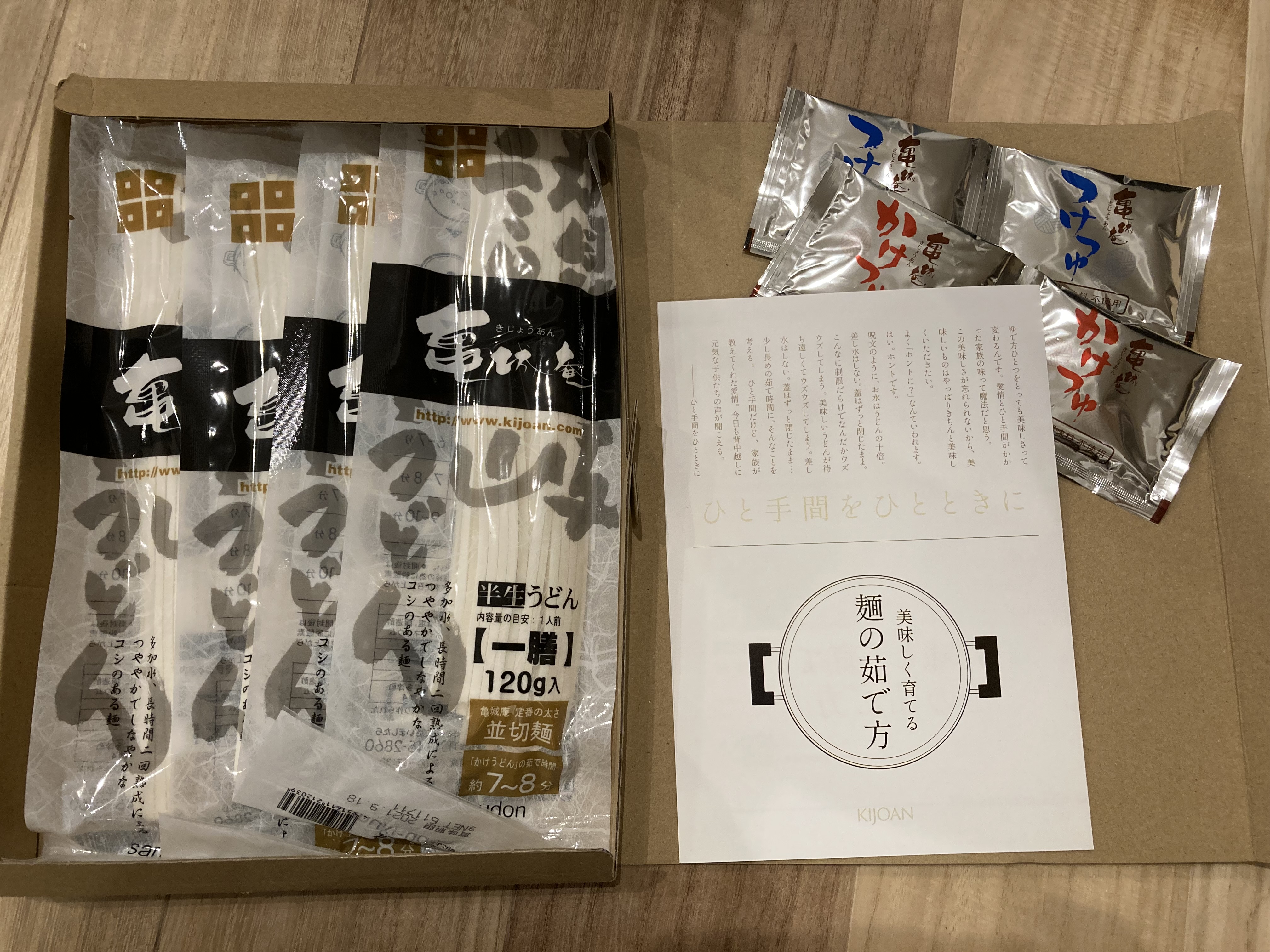 つゆ付きはかけうどん用のかけつゆとざるうどんやぶっかけうどんに最適なつけつゆの2種類が入っています。