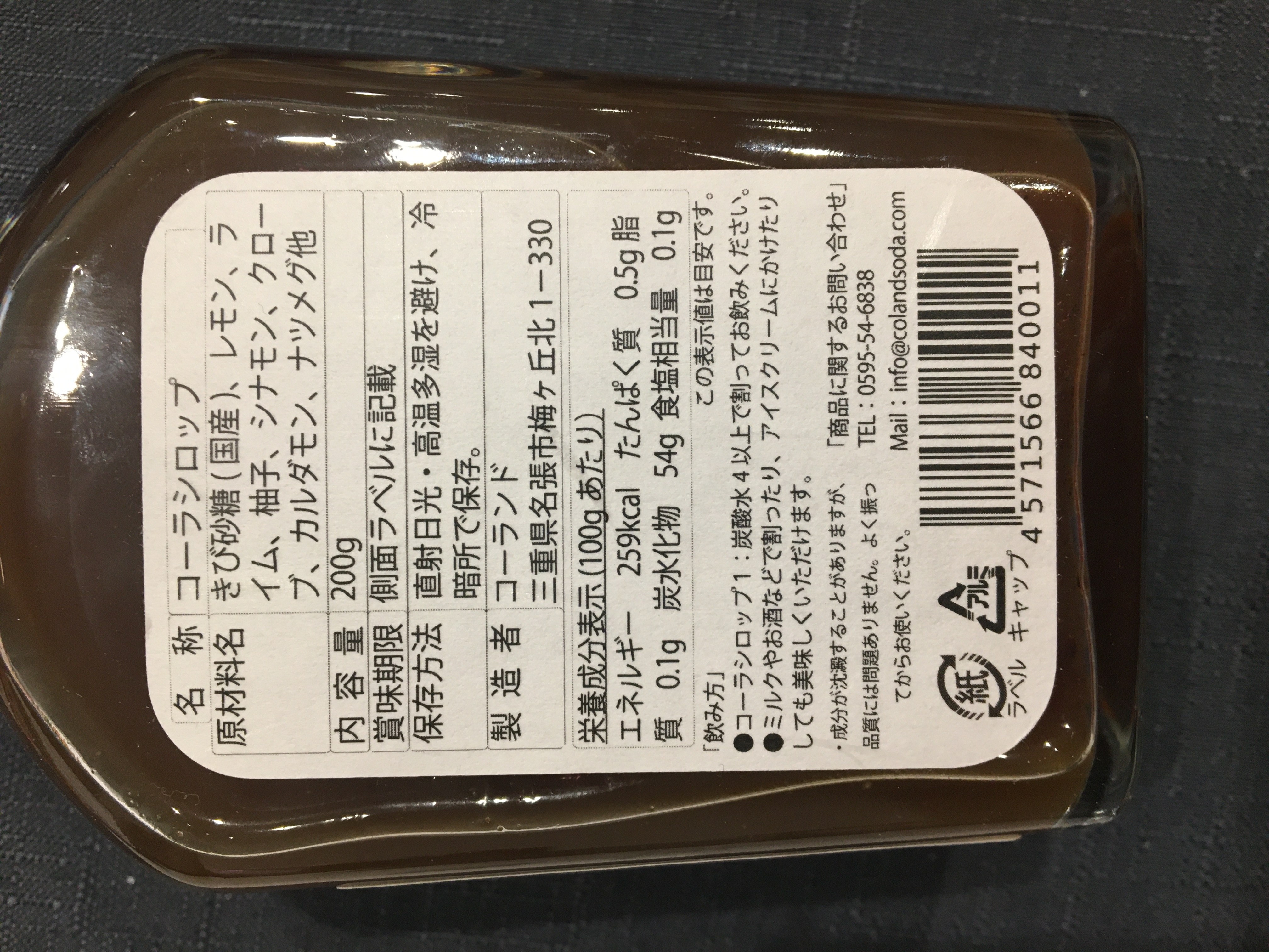 コーラシロップ:炭酸水 1:4以上で割ってお楽しみください。