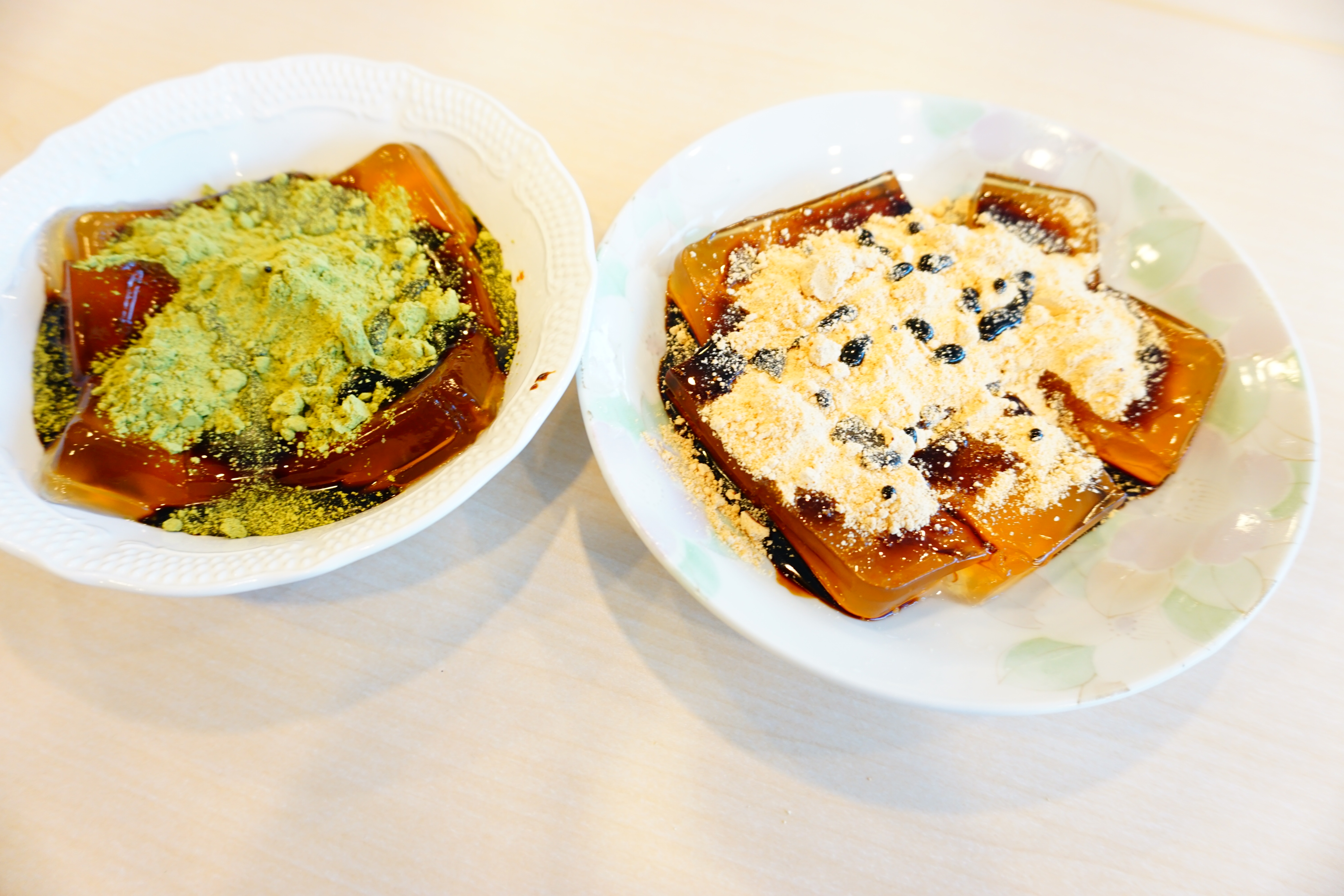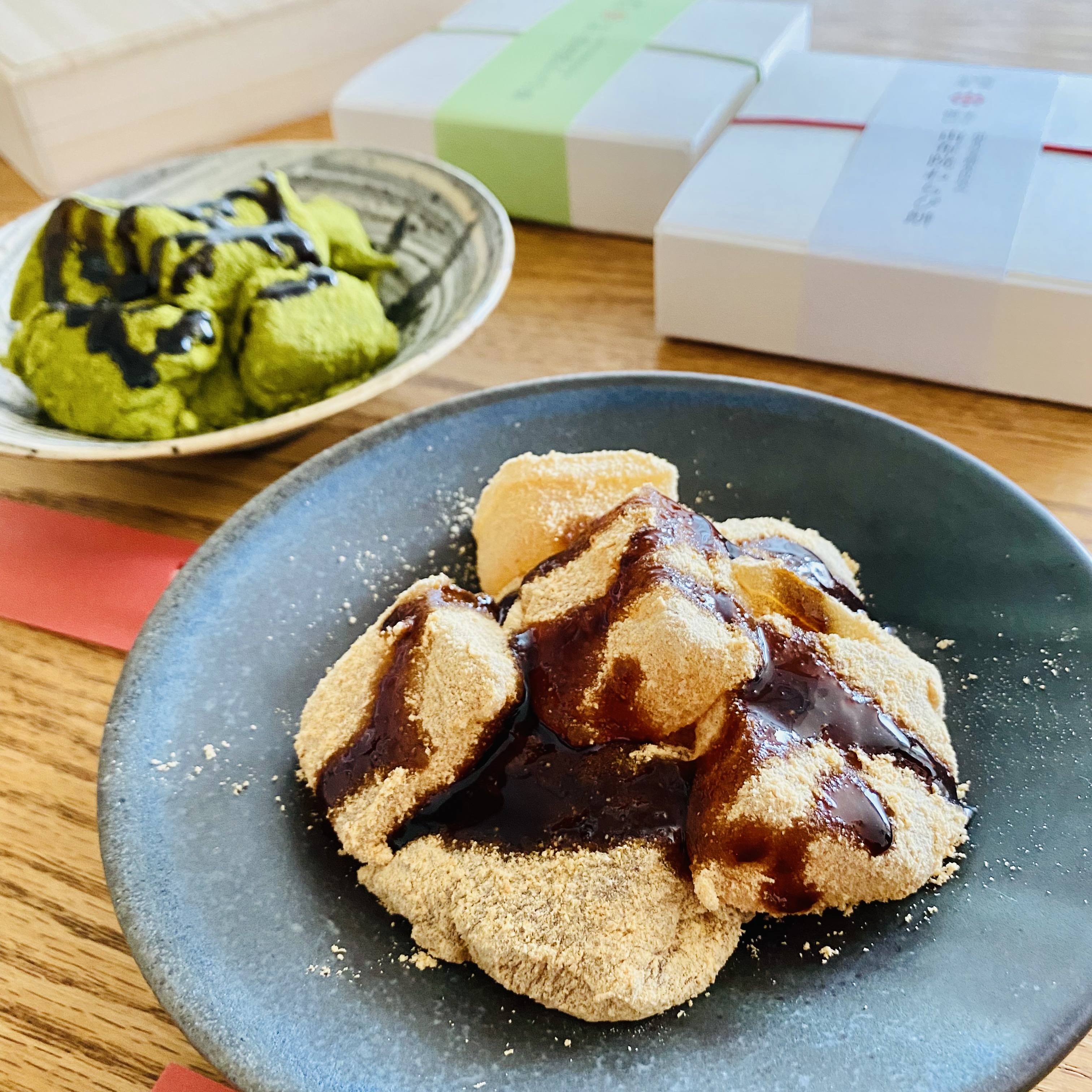 きな粉も抹茶きな粉も黒蜜に比べて多いんじゃないかって感じるくらいたっぷりです。