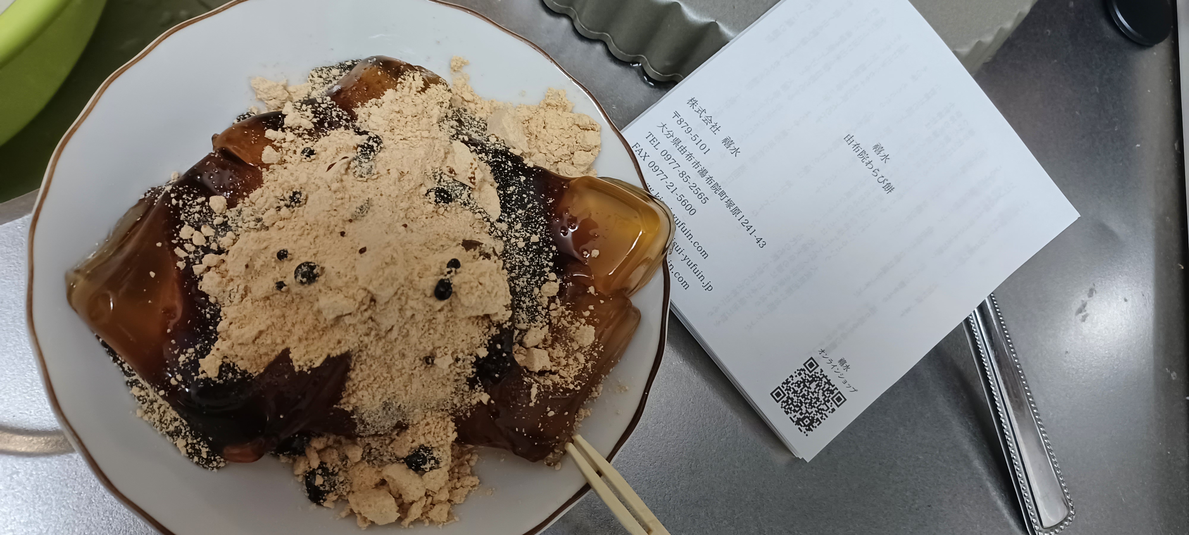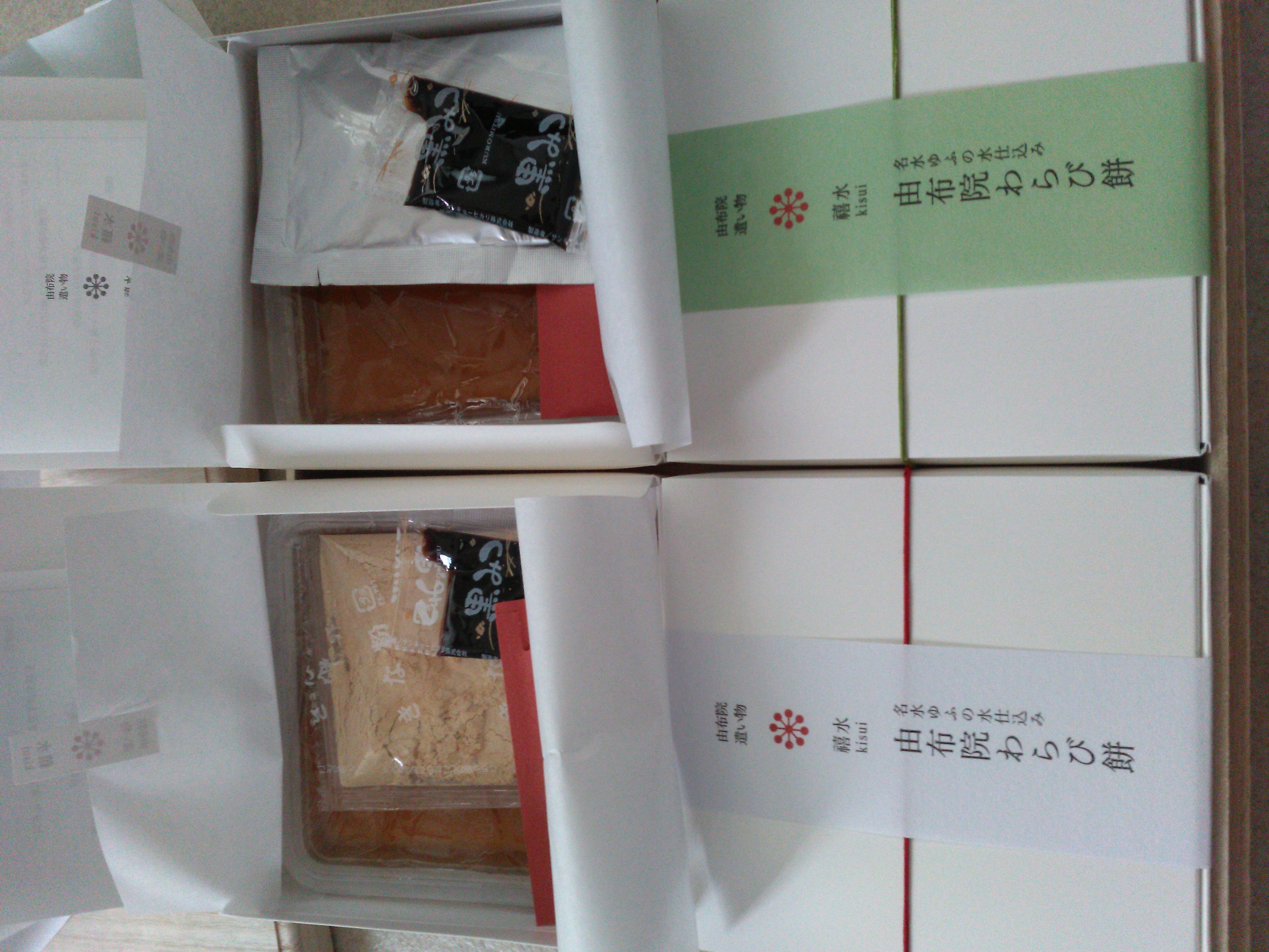 由布院の地下240メートルより湧き出る由布の天然水仕込みのわらび餅です。