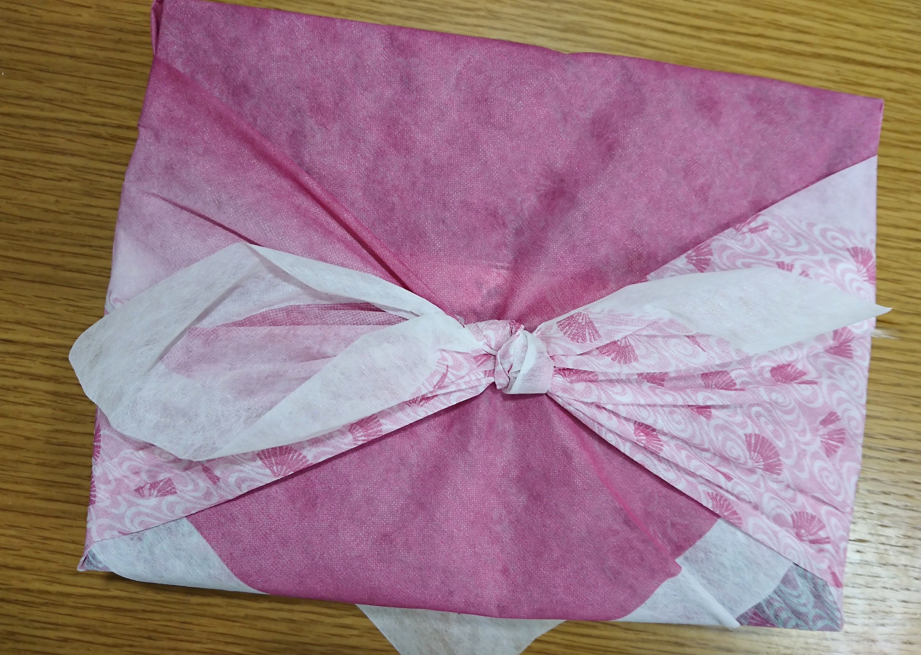 まず届くとピンクの風呂敷に包まれていて高級感が期待をそそります。