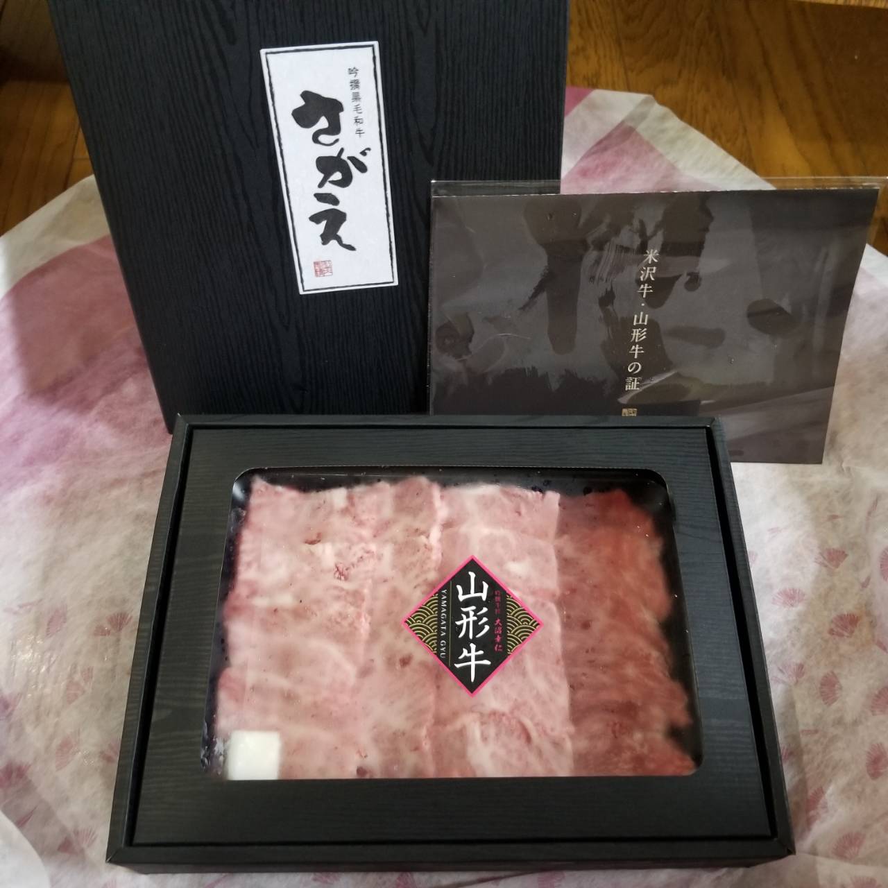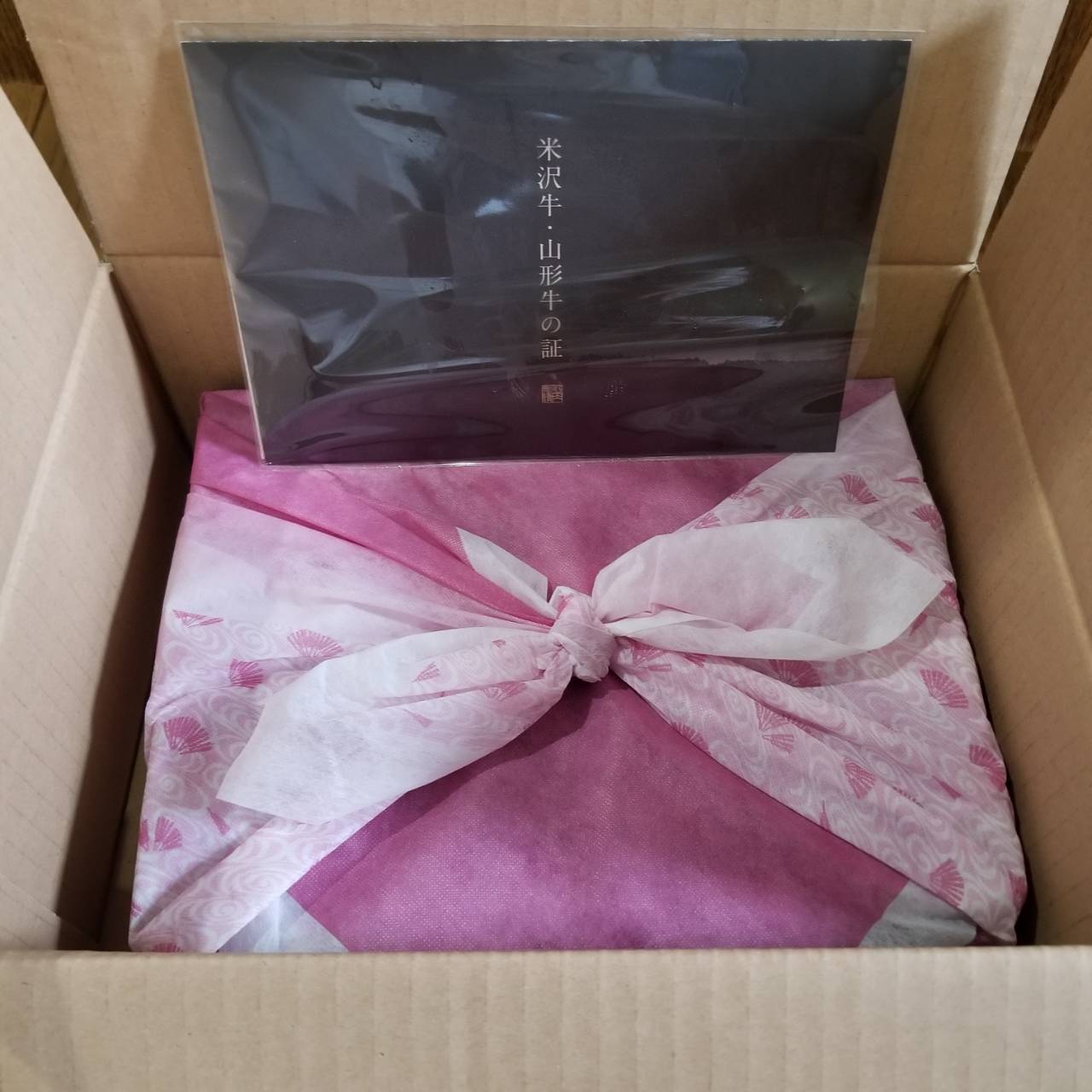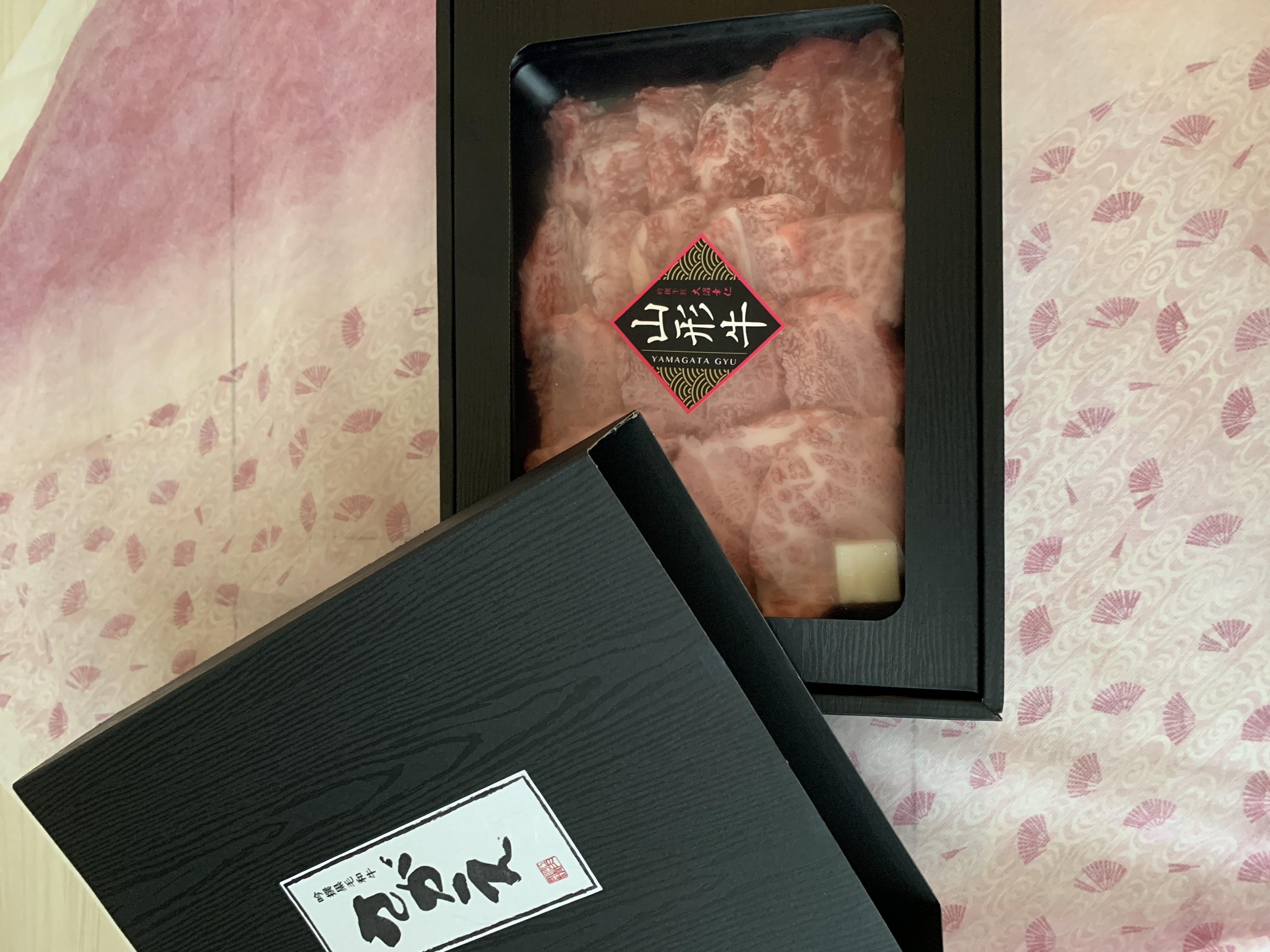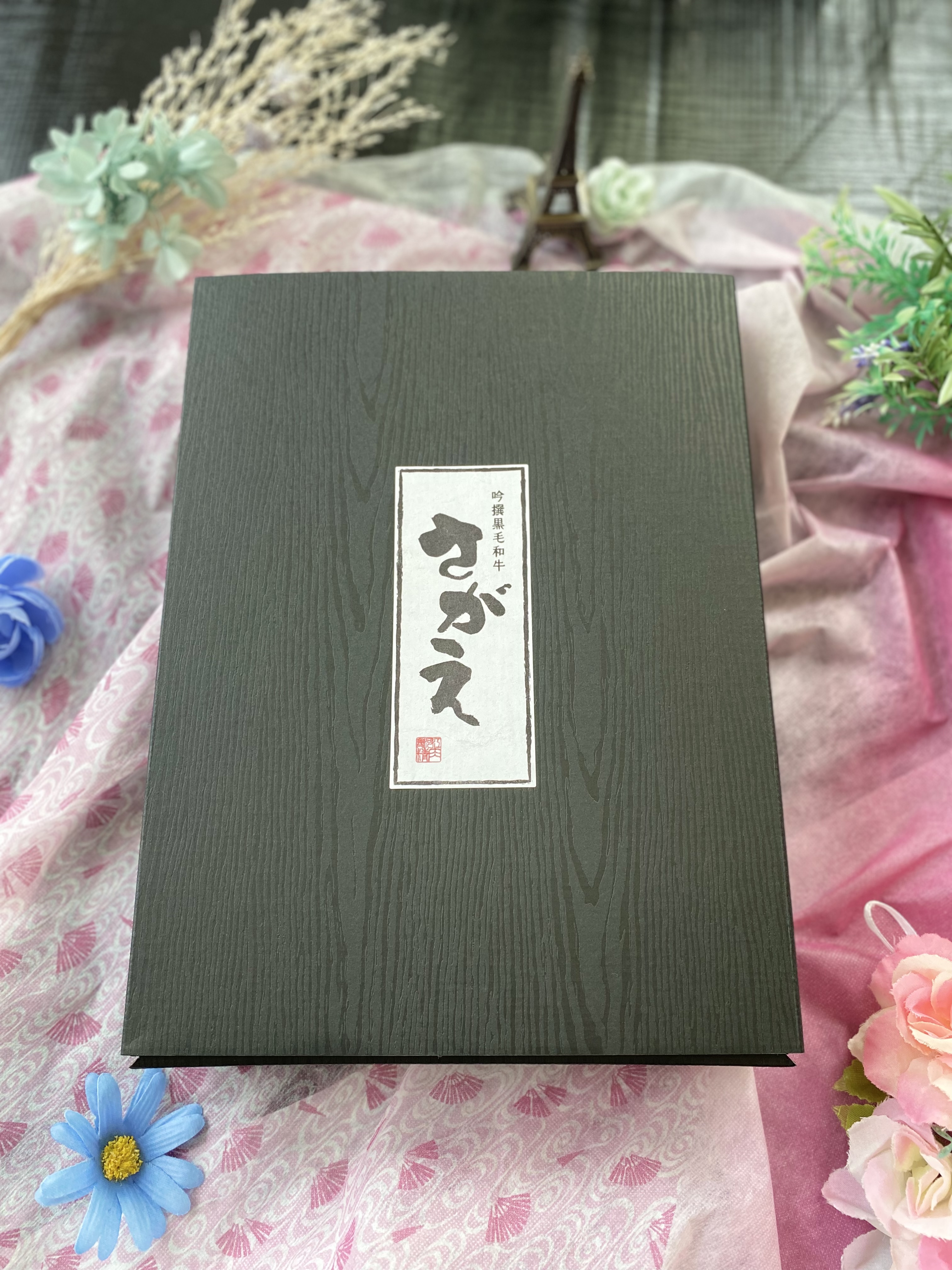 お肉は、高級感あふれる黒化粧箱に、風呂敷で丁寧に包み込んでお届けいたします。