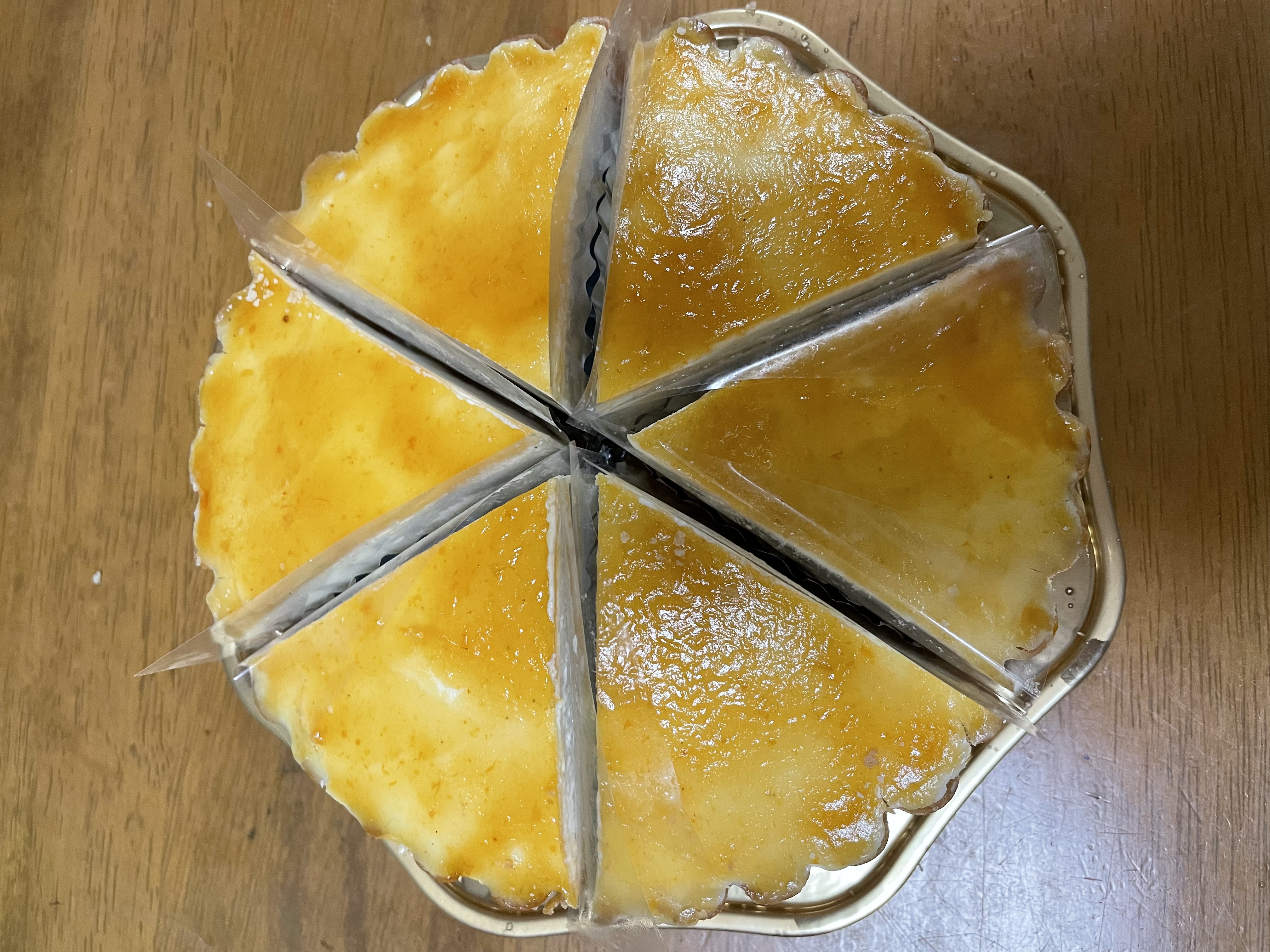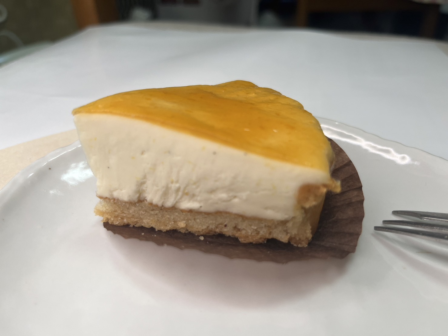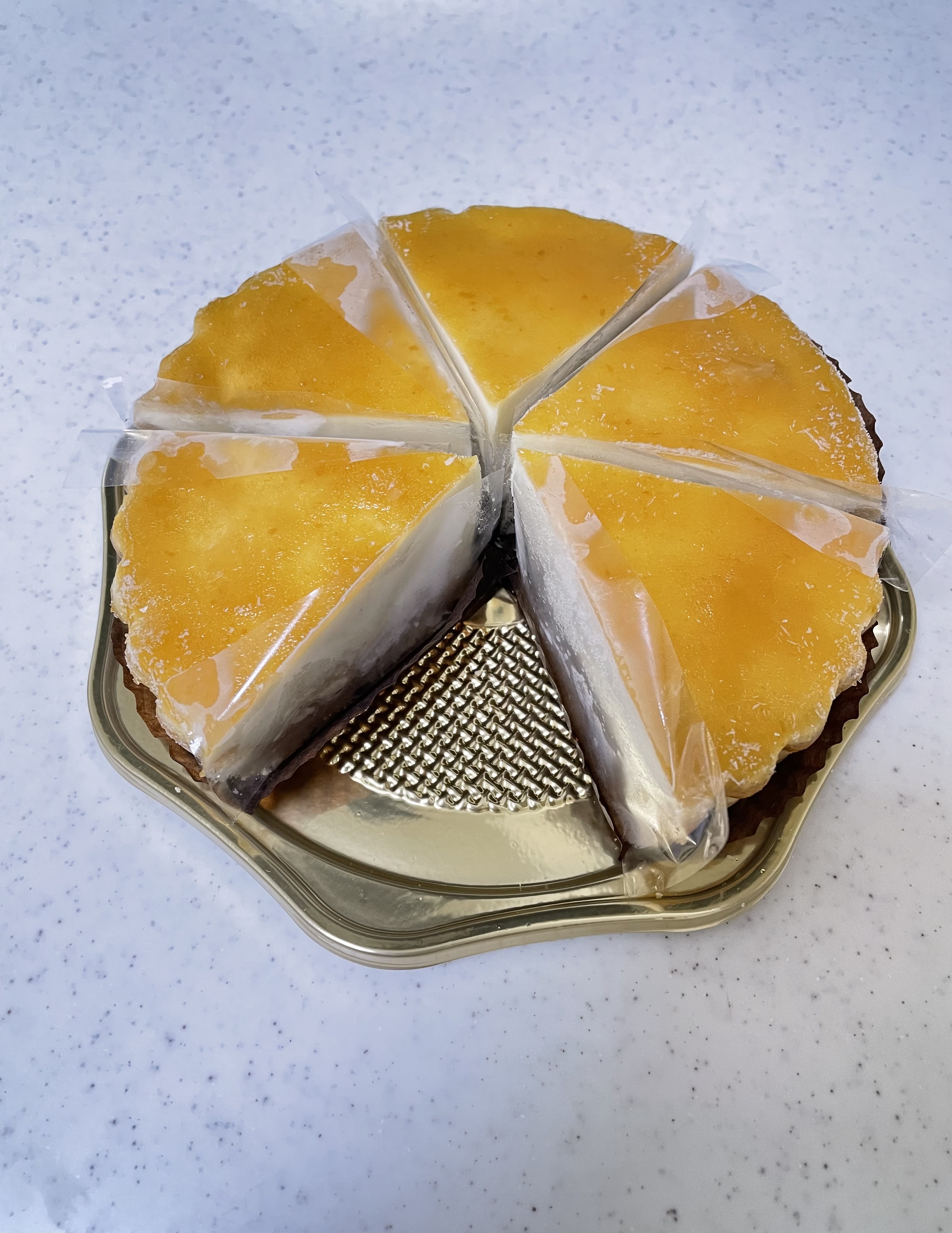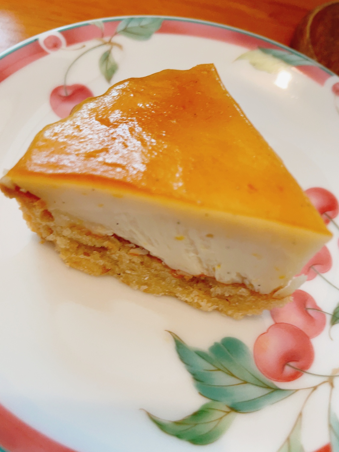 表面にアプリコットジャムがぬられているので見た目もかわいいチーズケーキ!