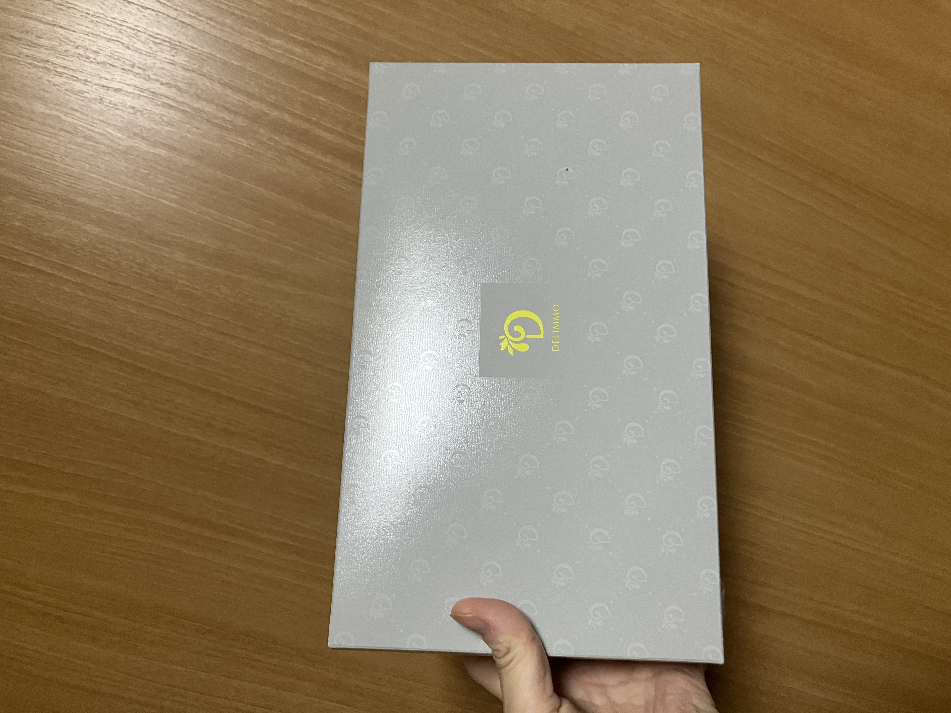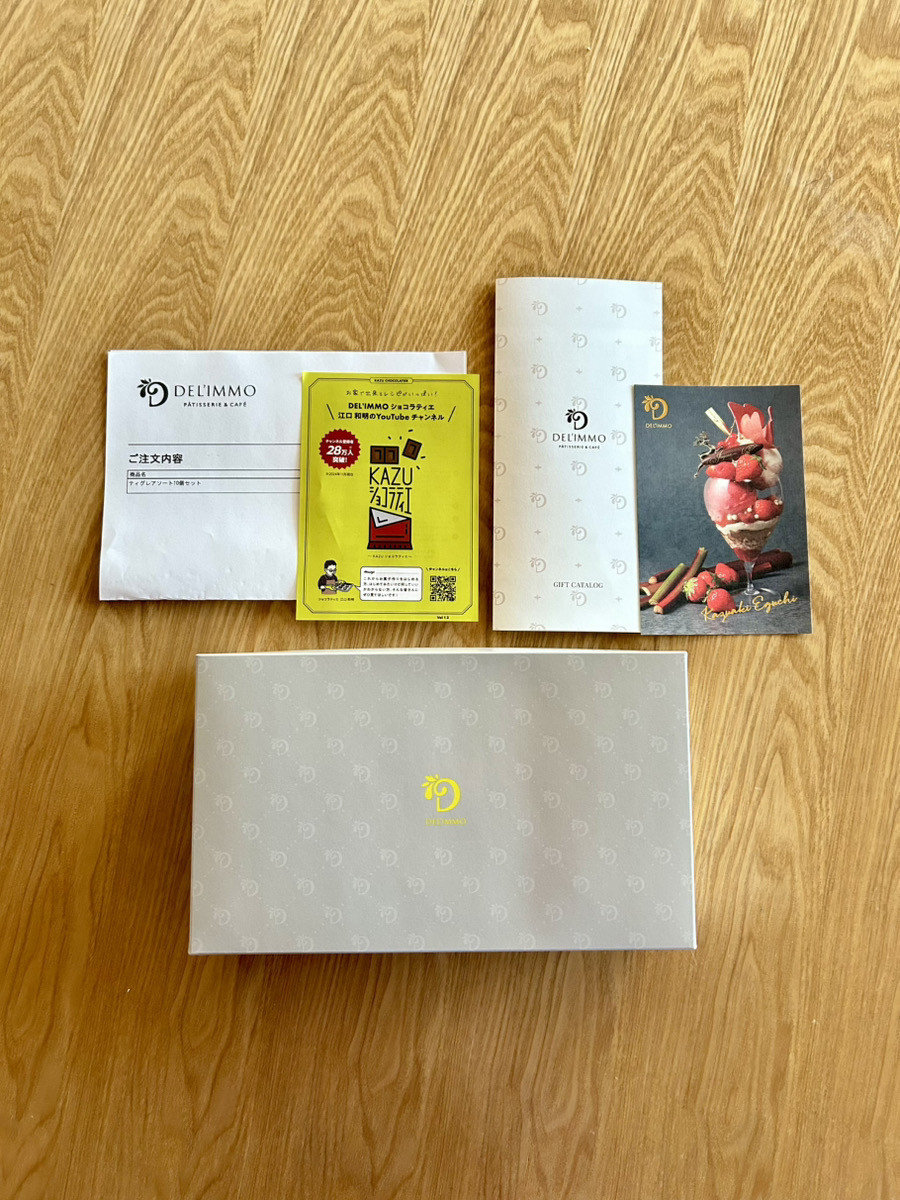 デリーモカラーのグレーとグリーンを基調にした、シックでシンプルなお包みでお届けします。