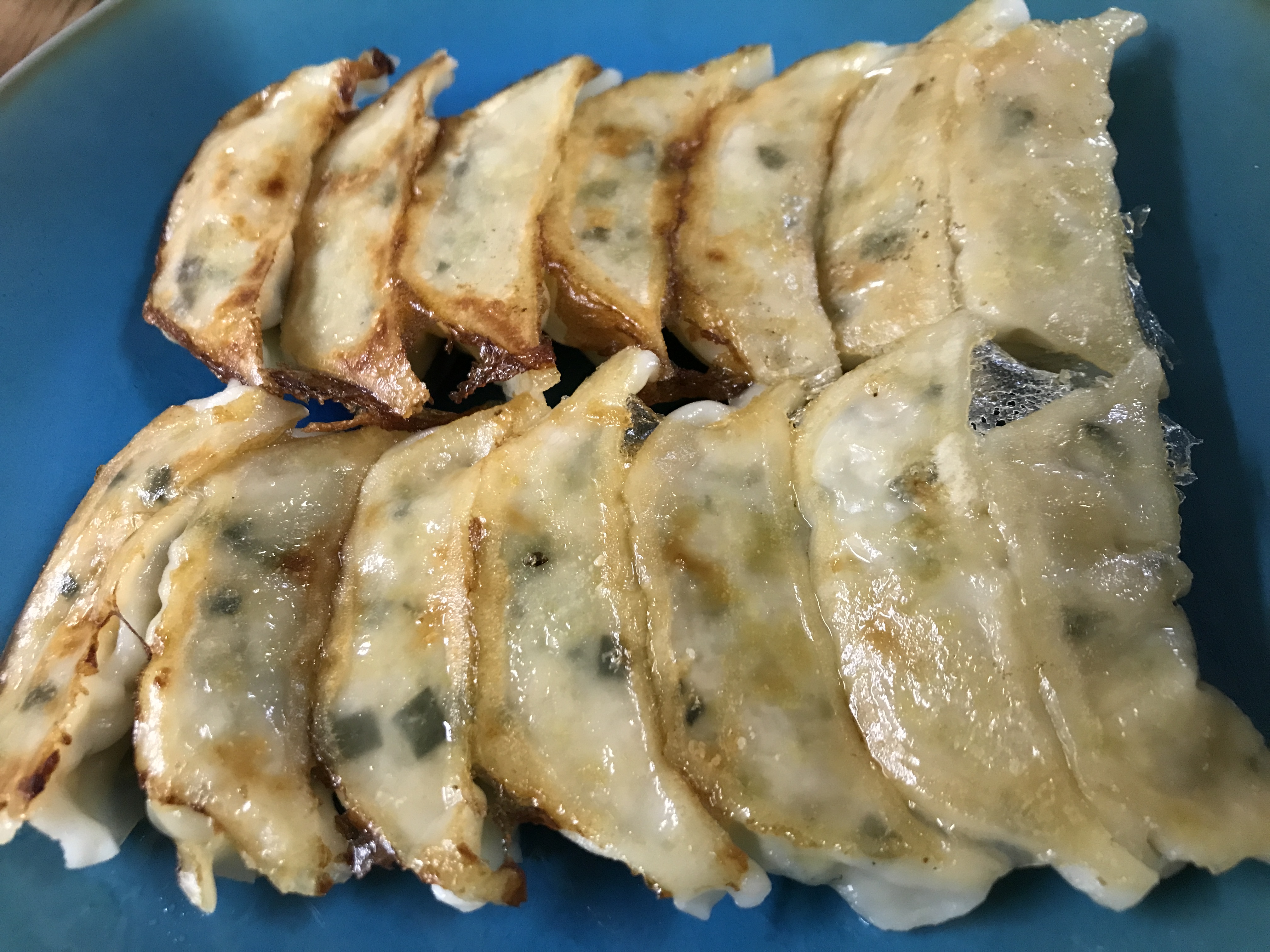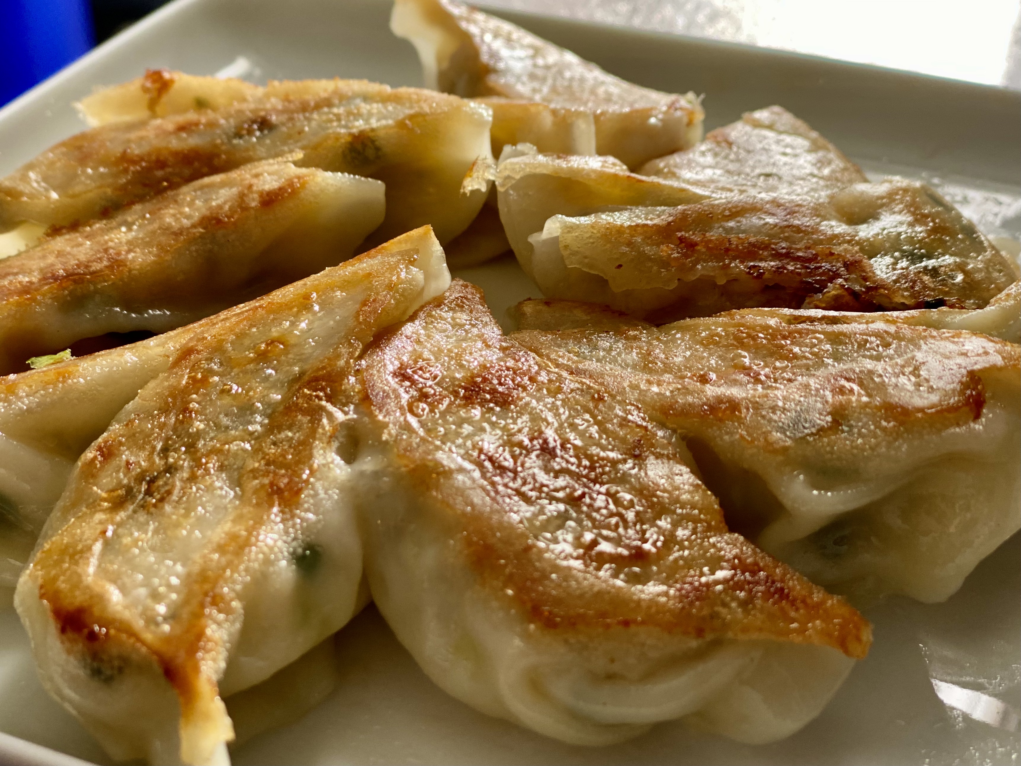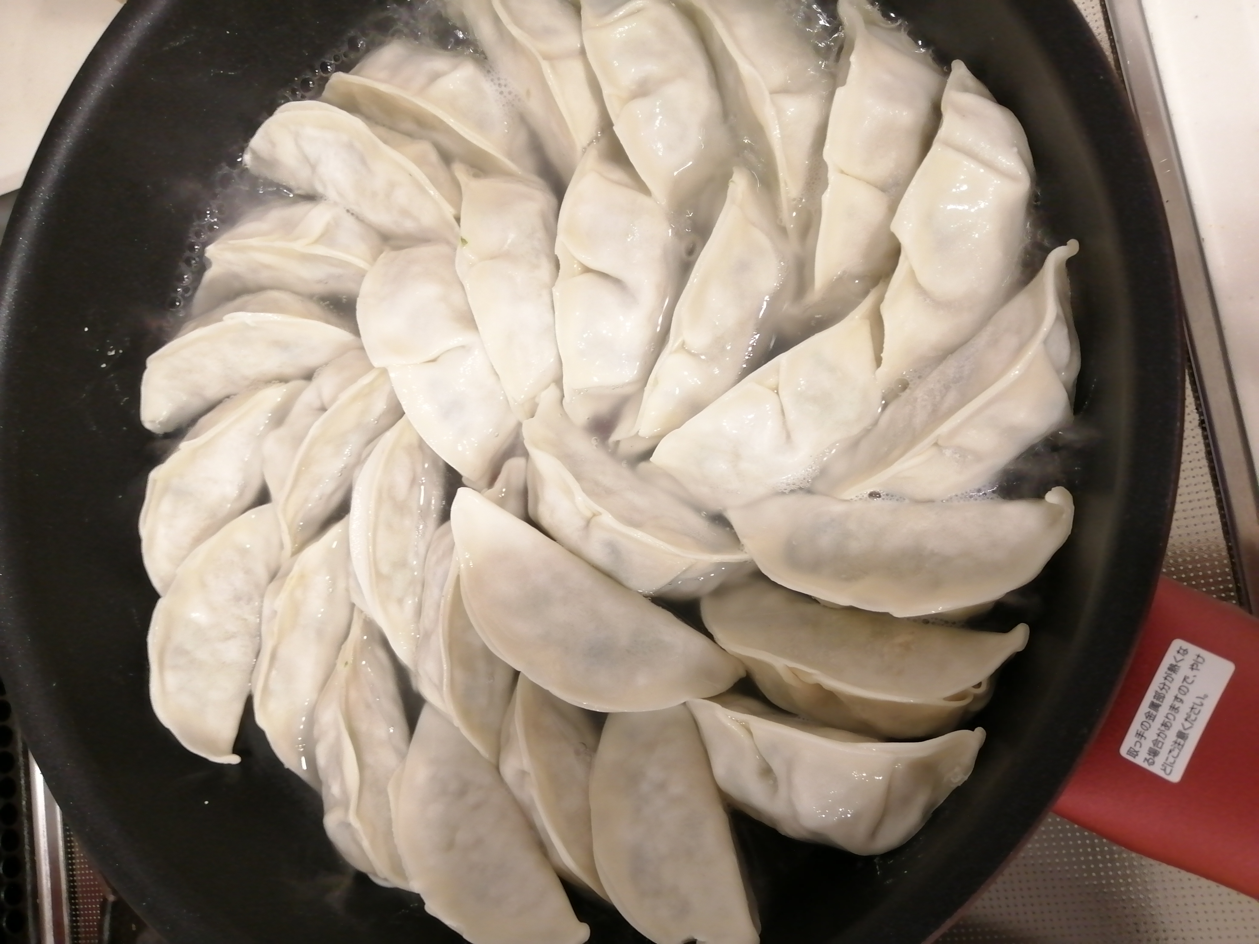 焼き餃子は適量の水で蒸し焼きにした後、油を足して焼き目をつけて完成!