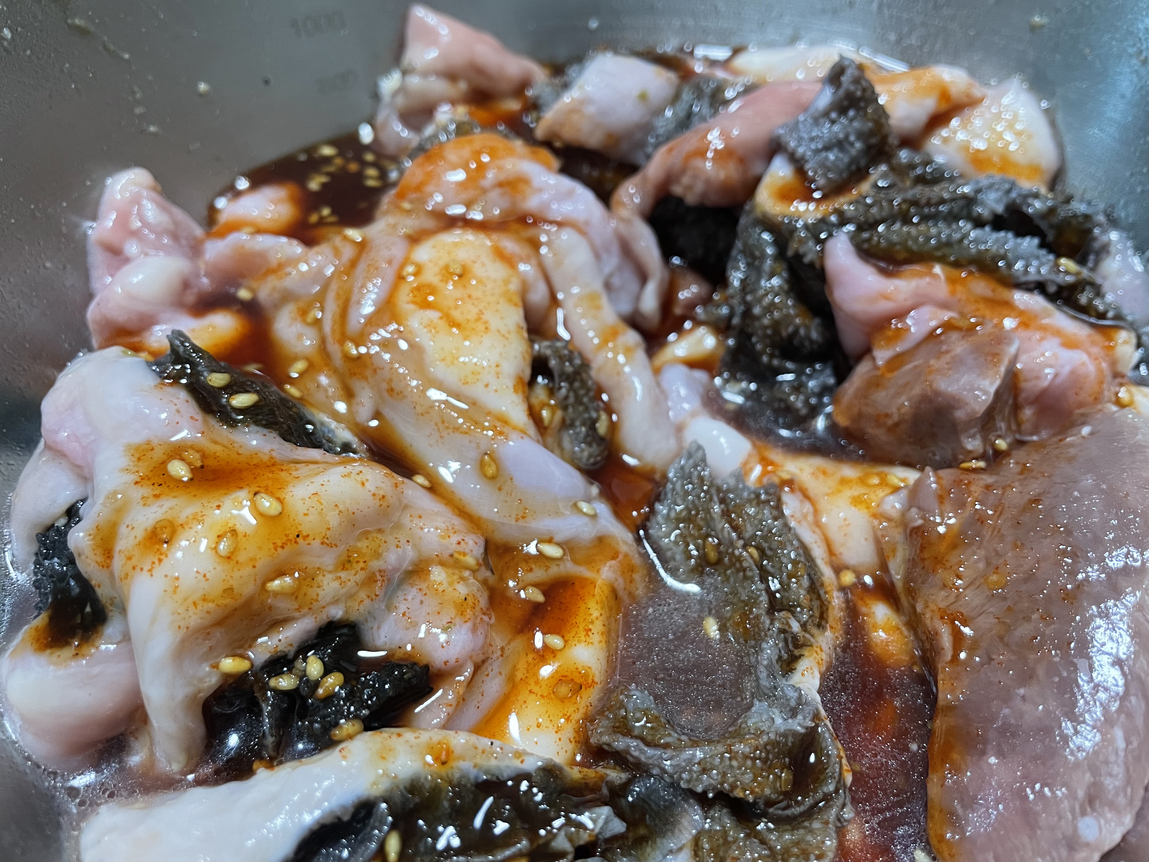 事前にごま油とタレに漬け込み、しばらく下味をつけておいたものを部位ごとに焼いていきます。