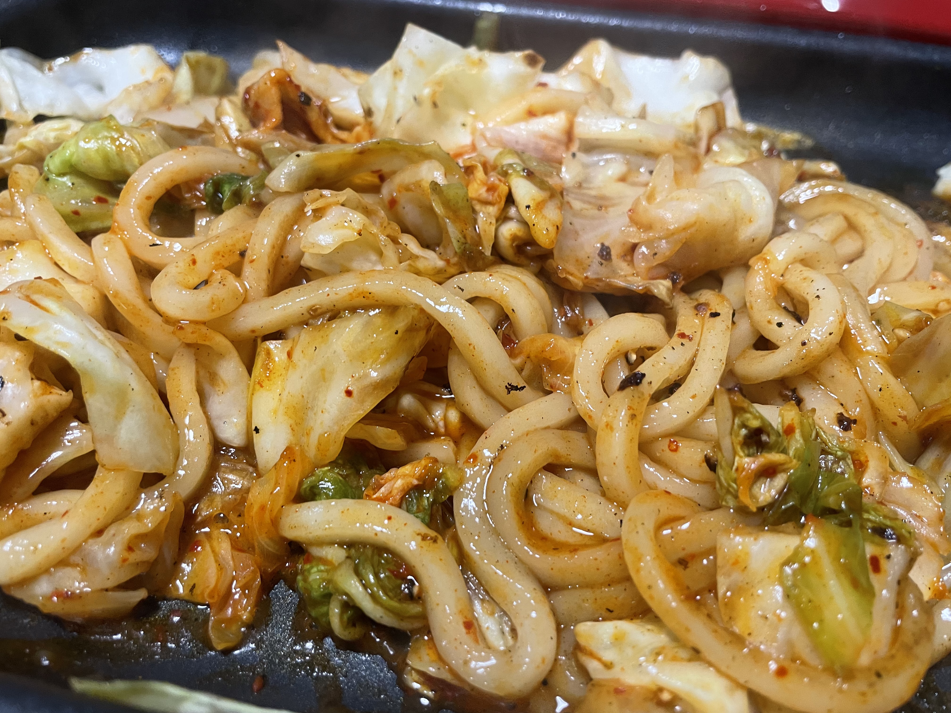 最後は、残しておいたキムチとホルモンにキャベツとうどんを加え、タレを回しかけて、焼きうどんにしていただきました。甘辛ダレとホルモンのうまみが、うどんに絡み、最高に美味しかったです。これまたビールが進んでしまいます。〆は焼きうどんがおすすめです!