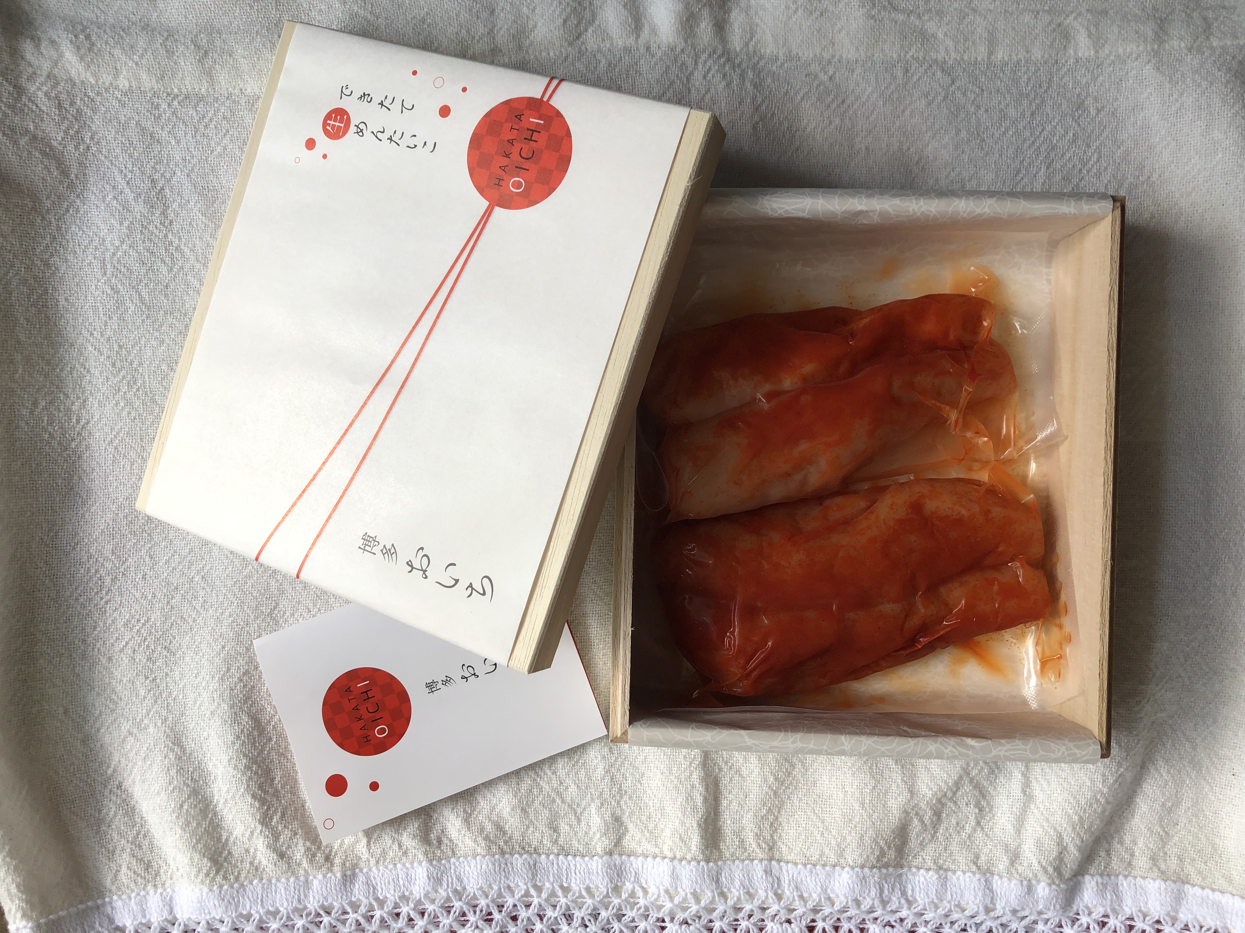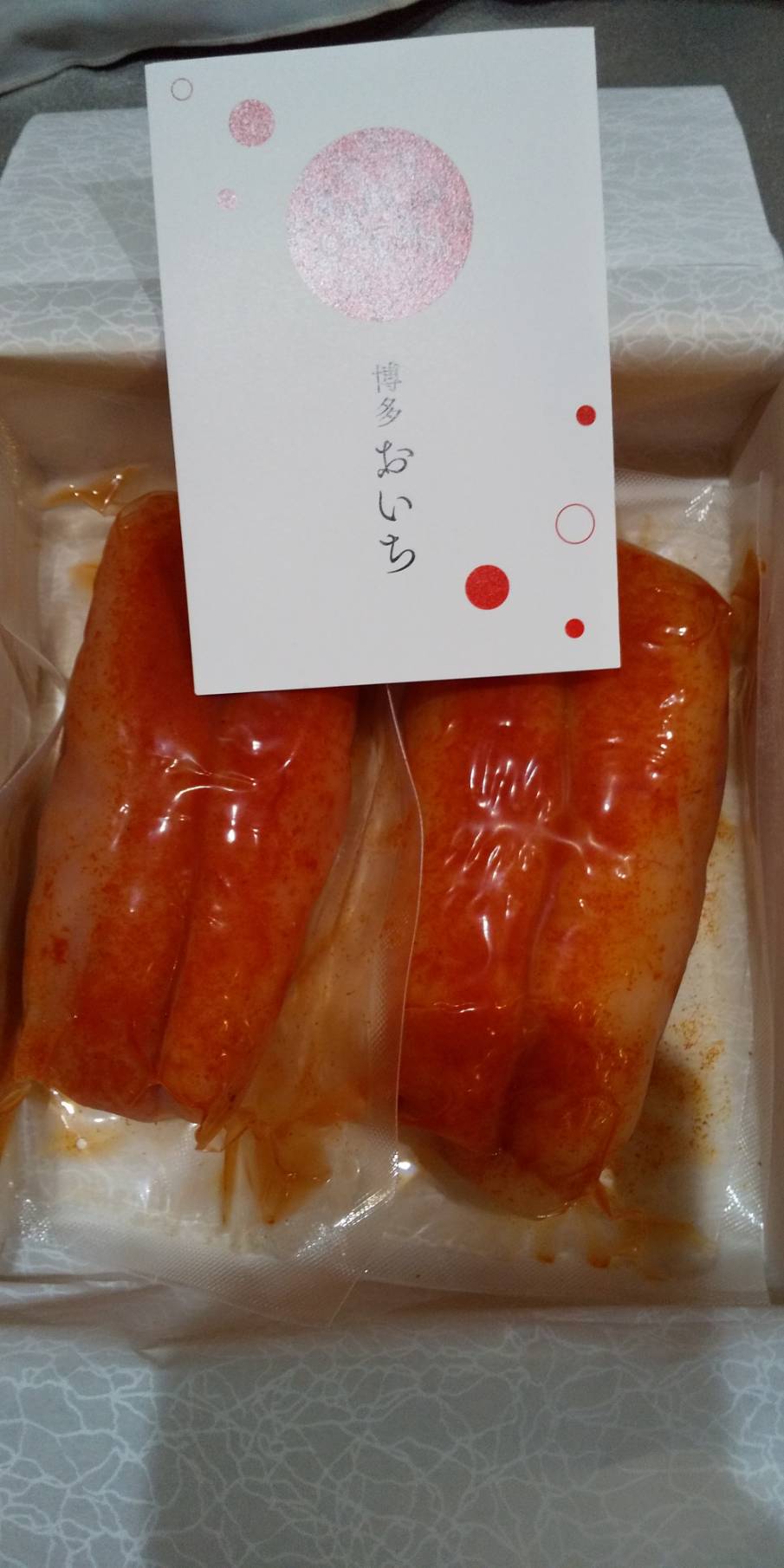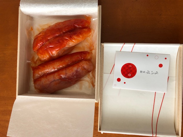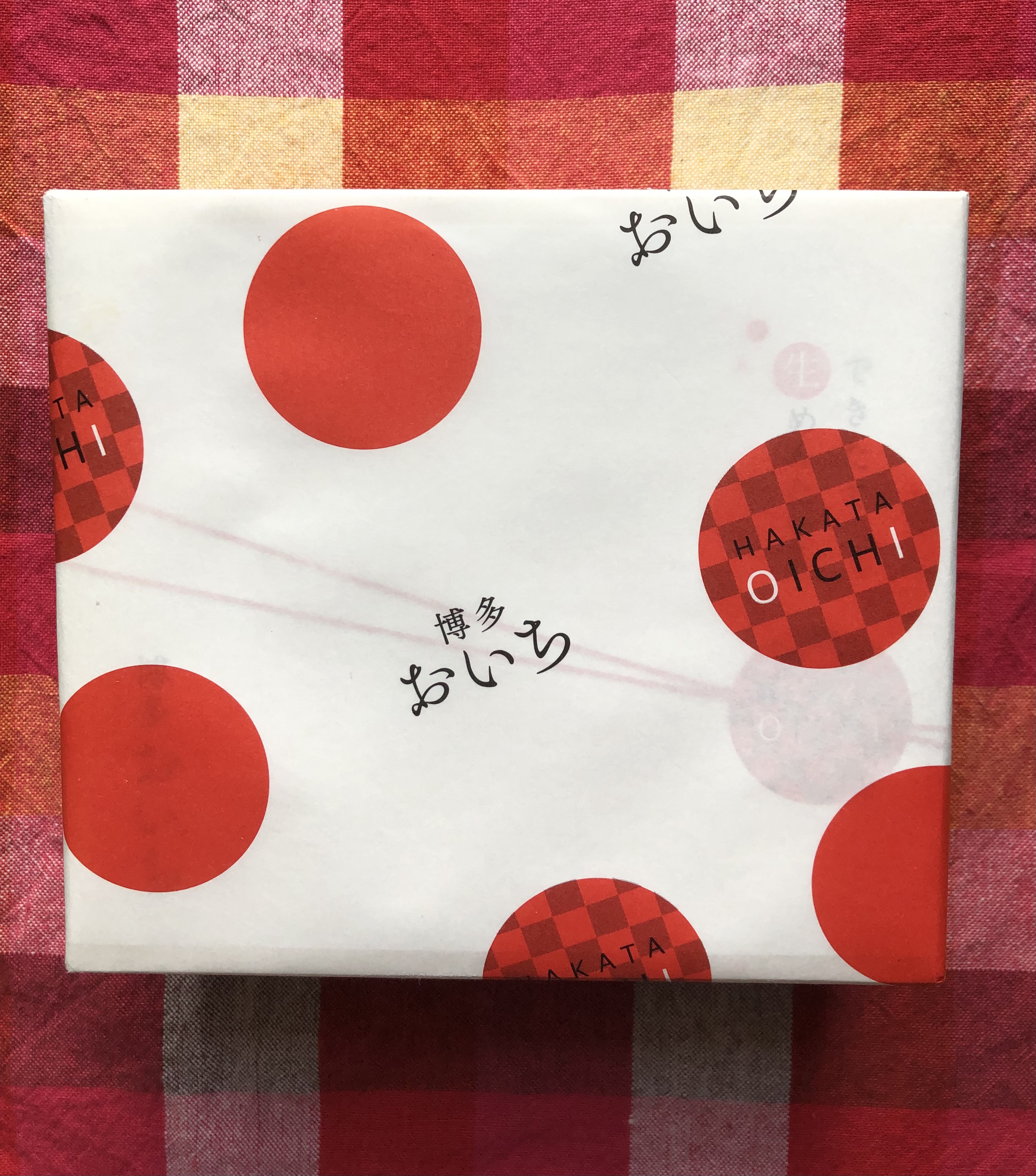 明太子の粒を連想させる赤い水玉模様の包装紙を開けると、