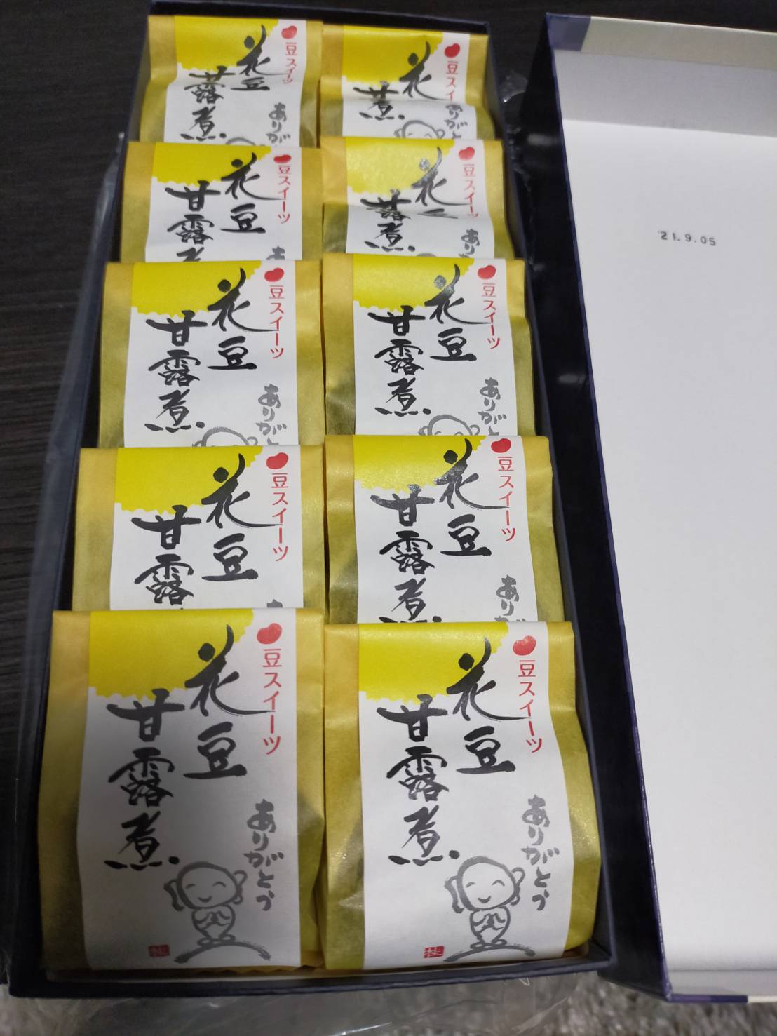味は甘すぎず、でもしっとりしていて番茶にはよく合いました。豆の大きさも500円玉くらいの大きさで食べ応えがあります。みんな笑顔になって、いろいろな話に花が咲きました。残りは仏壇に備えてまた後で食べるそうです。みんなが揃うときに、同じお菓子を食べられる幸せを感じた1日でした。年配の方に特にオススメです。